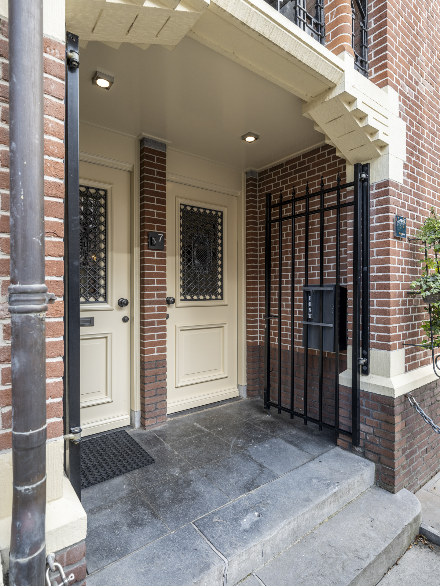 Period elements such as an original hardstone staircase, marble floors, intricate plasterwork, and leaded glass appear throughout. The flow of the home is anchored by a dramatic central hallway, with distinct living and working rooms branching off. Carefully updated, the villa marries heritage with modern comfort: high-grade insulation, HR++ double glazing, 23 solar panels, and three heating systems.