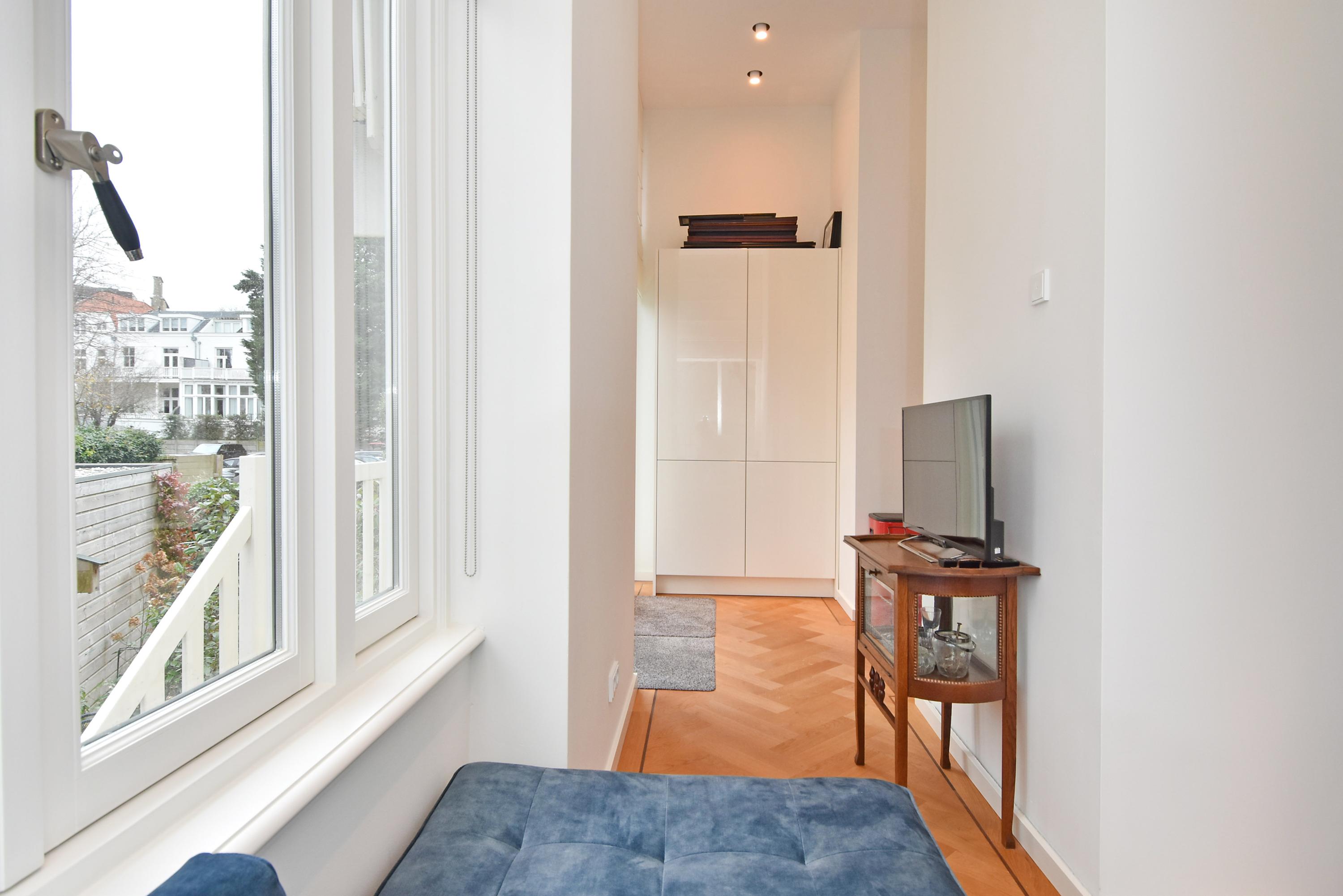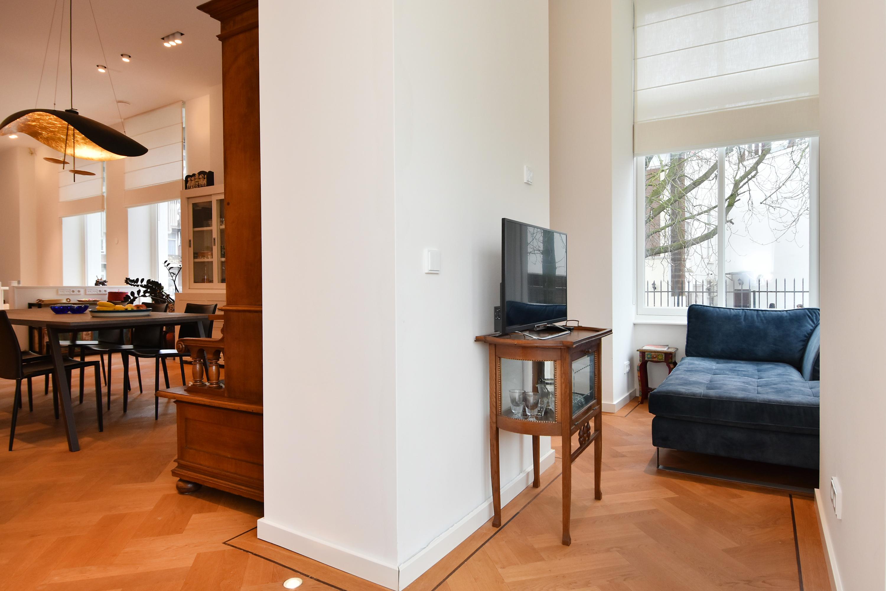 Het appartement is 181m2 groot. De woonverdieping is boven straatniveau wat meer privacy geeft. De slaapkamers zijn gelegen in het souterrain: 3 slaapkamers, een kledingkamer, 2 ruime badkamers en een berging voor een wasmachine en droger. Naast het gebouw zijn 2 privé parkeerplaatsen met een laadpaal. In de achtertuin is een eigen berging en een achteringang. Het huis is volledig voorzien van domotica waarmee verwarming en licht bediend kunnen worden. Daarnaast zijn er, met behulp van een design lichtplan, spots aangebracht die zorgen voor een aangename verlichting. Het appartement is luxe afgewerkt met diverse inbouwkasten.