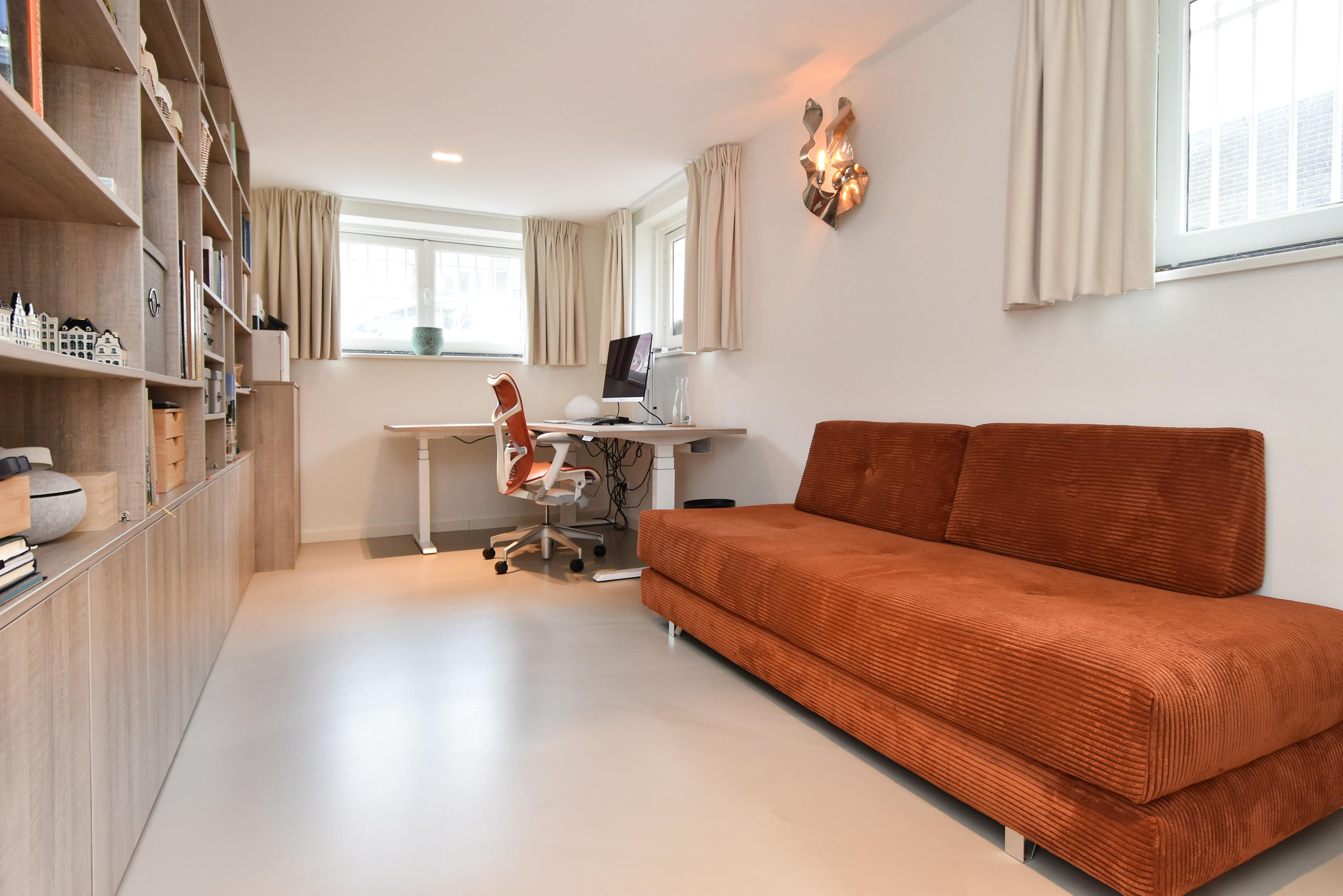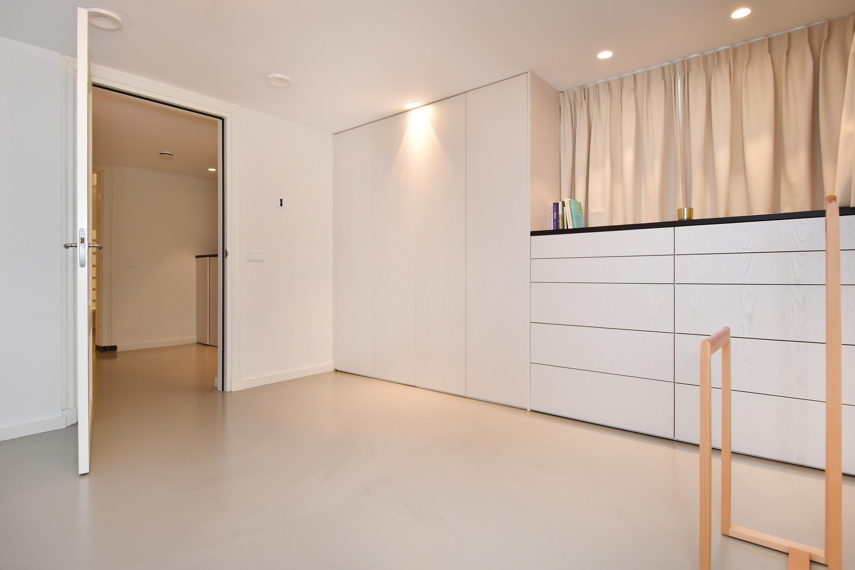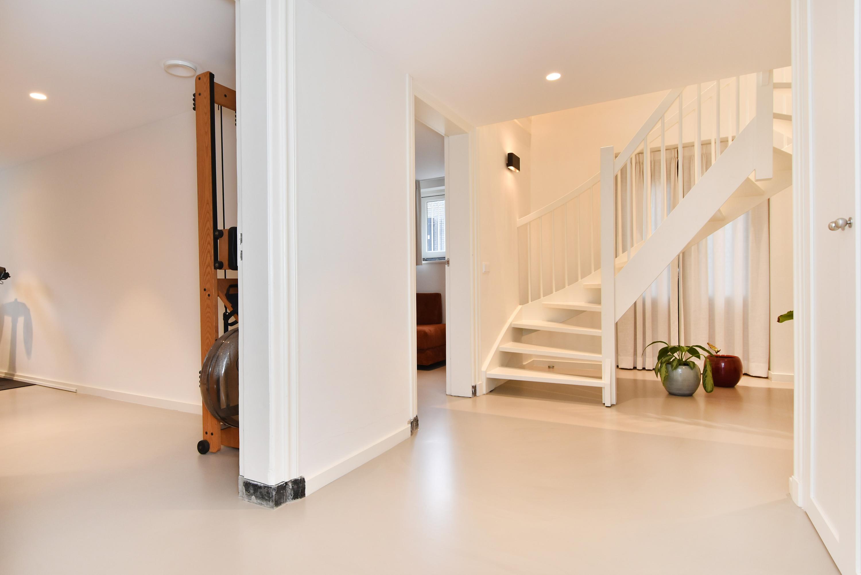 Via de woonkamer komt men via een trap in het centrale gedeelte van het souterrain. Daar zijn o.a. een ingebouwde kast met aansluiting voor wasmachine/droger en een separaat modern toilet met fonteintje. Het souterrain beschikt over 2 ruime slaapkamers aan de voorzijde die beide voorzien zijn door fraaie luiken en originele deuren. De tussengelegen badkamer is voorzien van een ruime inloopdouche met regendouche, wastafel met ladekast, design handdoekradiator en vloerverwarming. Aan de achterzijde is een kledingkamer met ingebouwde kasten en toegang tot 2e badkamer voorzien van een luxe vrijstaand ligbad, een ruime inloopdouche met regendouche, een dubbele wastafel met ladekasten en vloerverwarming. Via de kledingkamer komt men in de hoofdslaapkamer aan de achterzijde van het appartement die voorzien is van op maat gemaakte inbouwkasten. Het gehele souterrain is voorzien van een gietvloer met vloerverwarming.