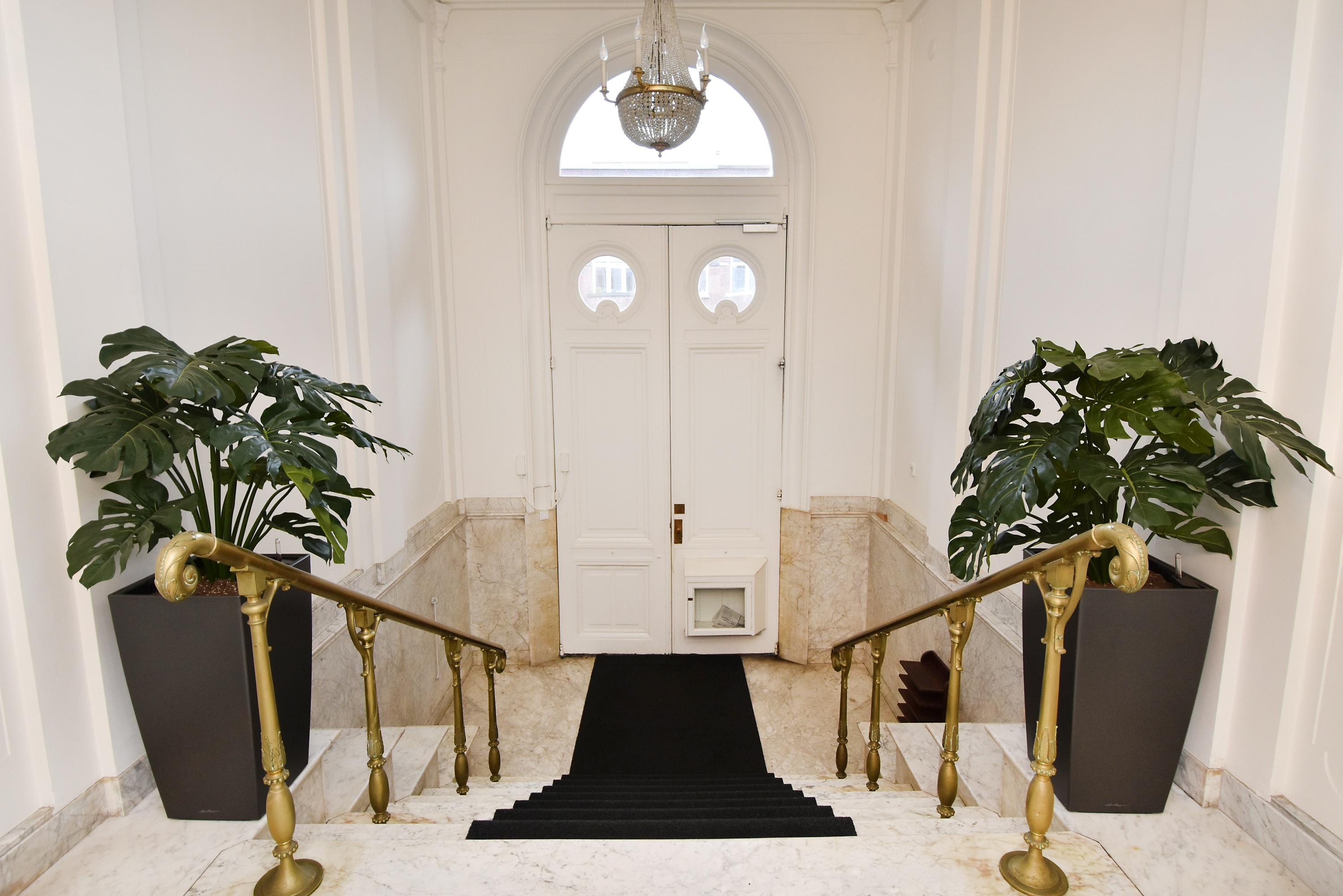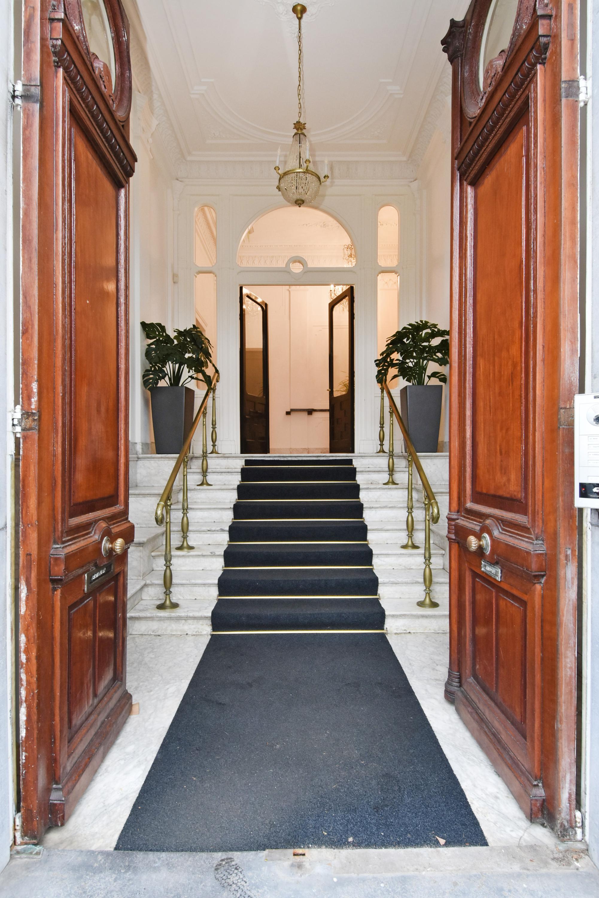 Via een fraaie dubbele entreedeur komt u in de prachtige entree van het kleinschalige appartementencomplex. Deze entree ademt luxe en grandeur uit door de fraaie marmeren trap en lambrisering, de fraaie kroonluchter en het ornamentenplafond. Met een trap komt u op de 1e woonlaag waar de entree van het appartement is.