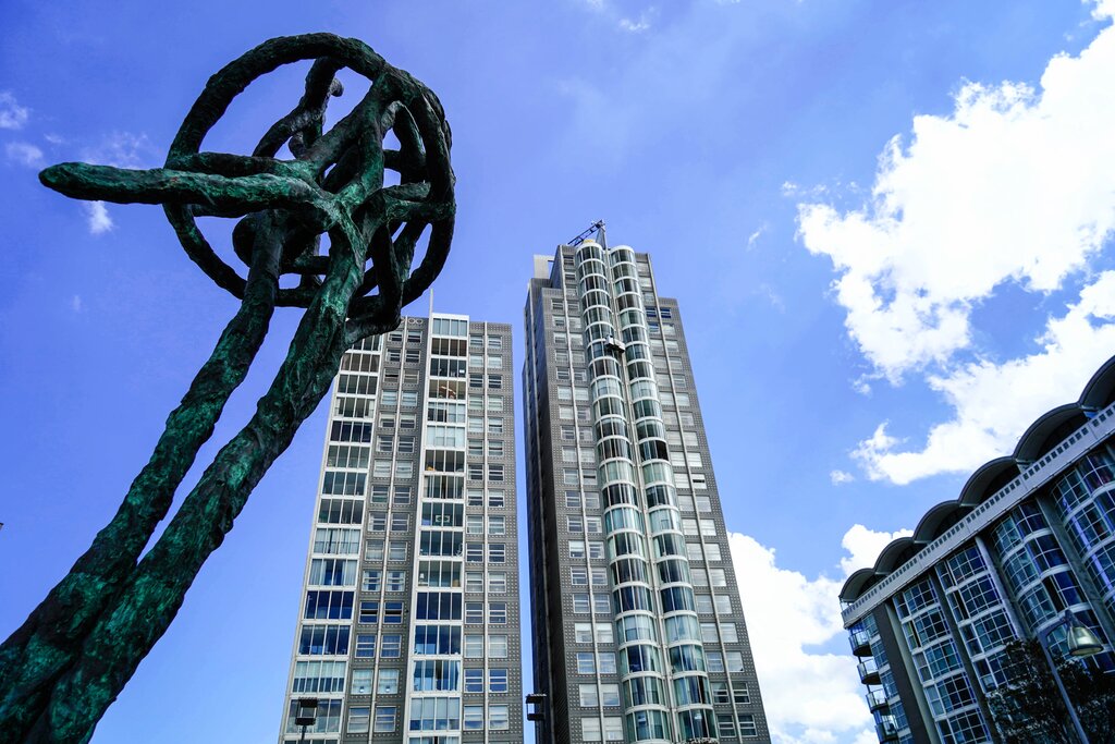 Op de begane grond is aan de voorzijde van het complex een representatieve hoofdentree met videobewaking, in de centrale hal bevinden zich de brievenbussen en het bellentableau, u kunt met twee liften naar de 10e verdieping, waar alleen dit appartement zich bevindt.
