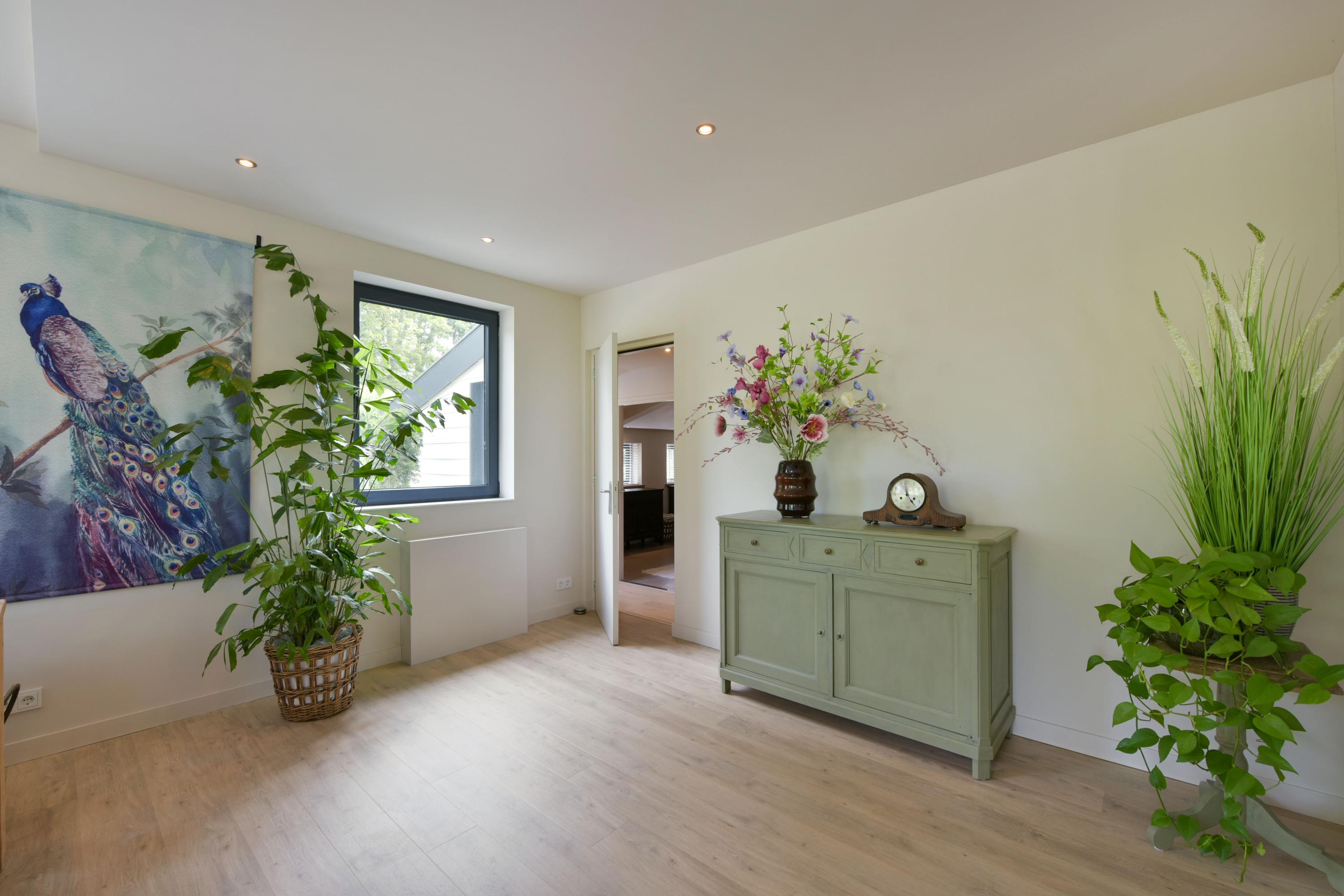 Hier bevindt zich een zeer royale multifunctionele ruimte. Deze ruimte is volledig geïsoleerd en verwarmd en al voorzien van voorbereidingen voor het realiseren van een extra slaapkamer en/of een badkamer. De mogelijkheden zijn eindeloos: denk aan een gastenverblijf, thuiswerkruimte, atelier of hobbykamer. De ingebouwde spotverlichting en mechanische ventilatie zorgen voor comfort en sfeer en via dubbele openslaande deuren heb je direct toegang tot het achterterras.