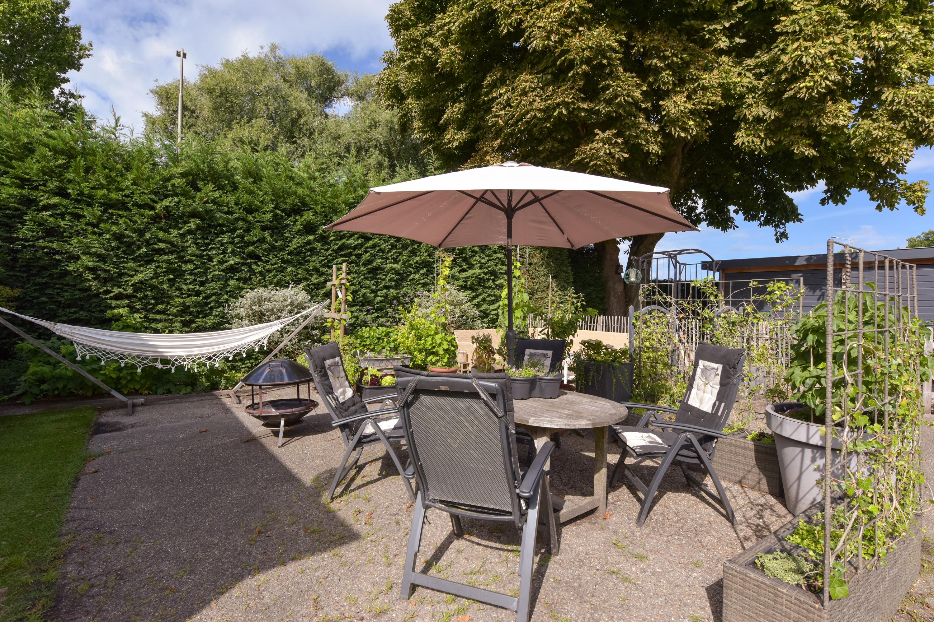 Of je nu houdt van tuinieren, buiten koken, relaxen in de schaduw of juist van een zonovergoten terras — deze tuin biedt het allemaal. En door de ligging rondom de woning, kun je de hele dag meebewegen met de zon of juist de schaduw opzoeken. Een heerlijke, doordachte buitenruimte die perfect aansluit bij het karakter en de kwaliteit van de woning.