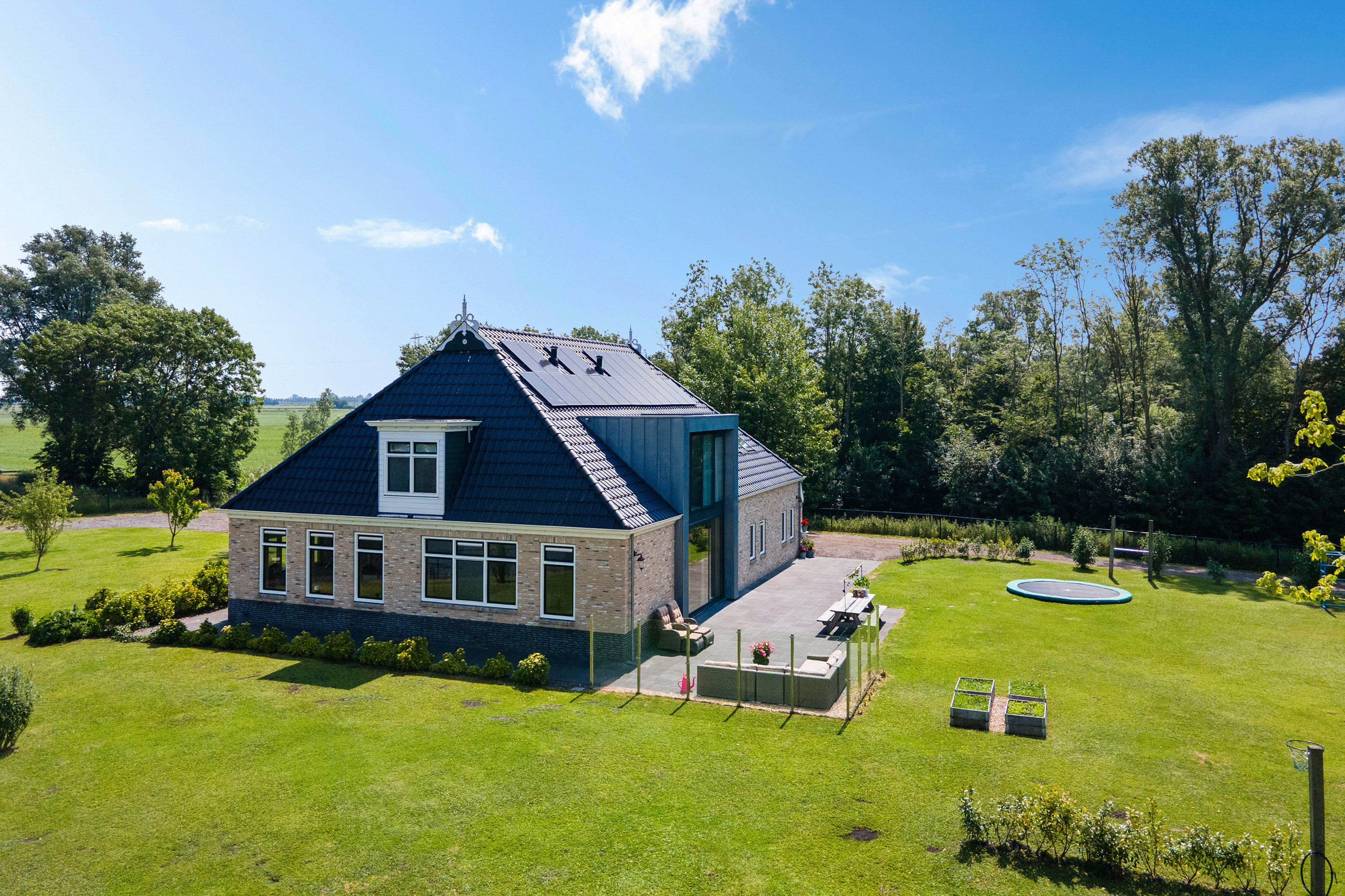 Deze stijlvolle en duurzame nieuwbouw is gebouwd in de sfeer van een klassieke Friese boerderij, maar met een eigentijdse twist, zichtbaar in het zinken risaliet bij het zonneterras. De woning is volledig geïsoleerd, onderhoudsarm (kunststof kozijnen), voorzien van een aardwarmtepomp met koelmodule, WTW-installatie, 38 zonnepanelen én energielabel A – alles volgens de laatste bouwnormen. Binnen is het royaal, licht en comfortabel. Denk: een riante living met woonkeuken van maar liefst 107 m², vijf slaapkamers met vier luxe en-suite badkamers, een ruime werkkamer, een bijkeuken en een imposante, volledig geïsoleerde inpandige deel van 75 m² met dubbele staldeuren.
