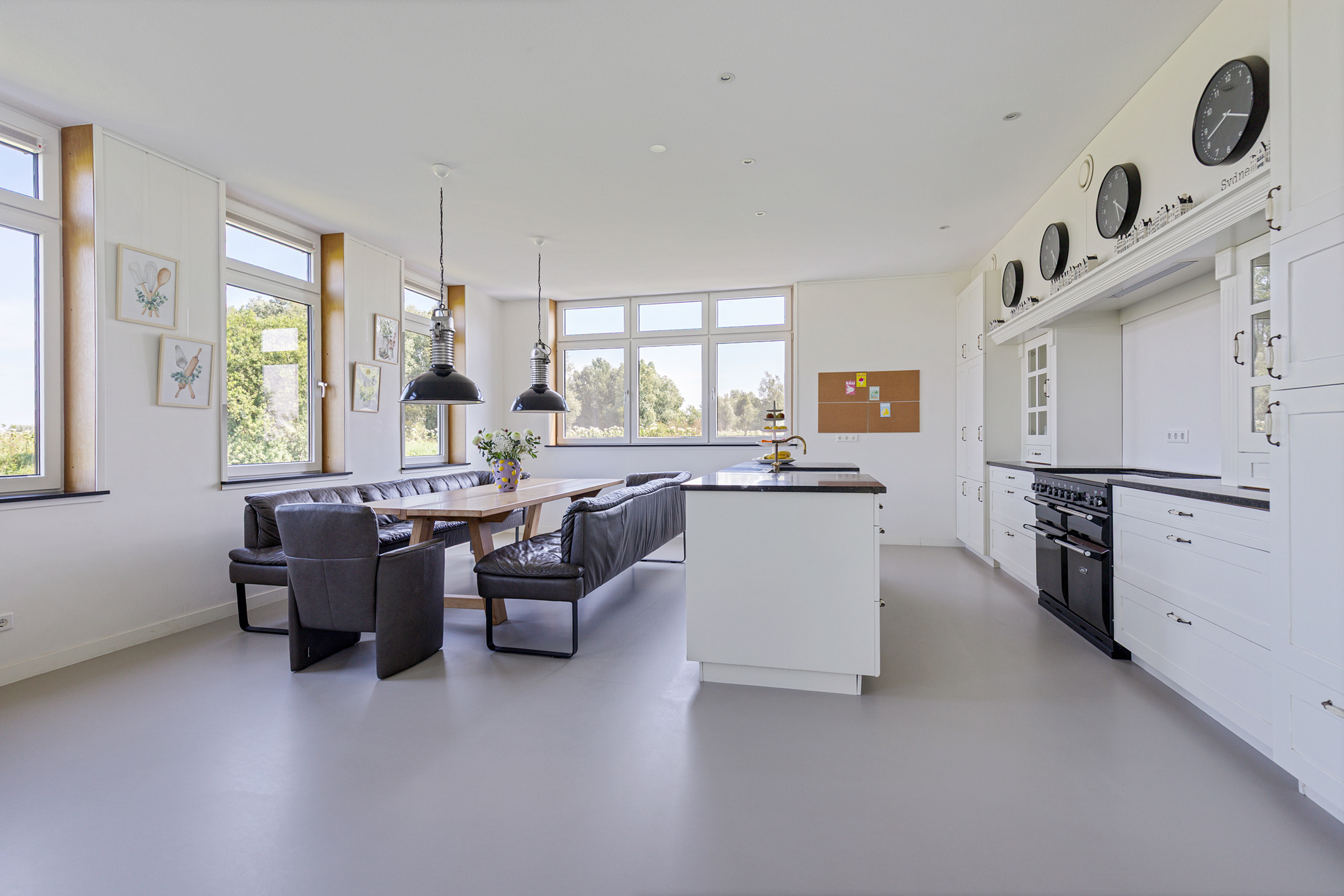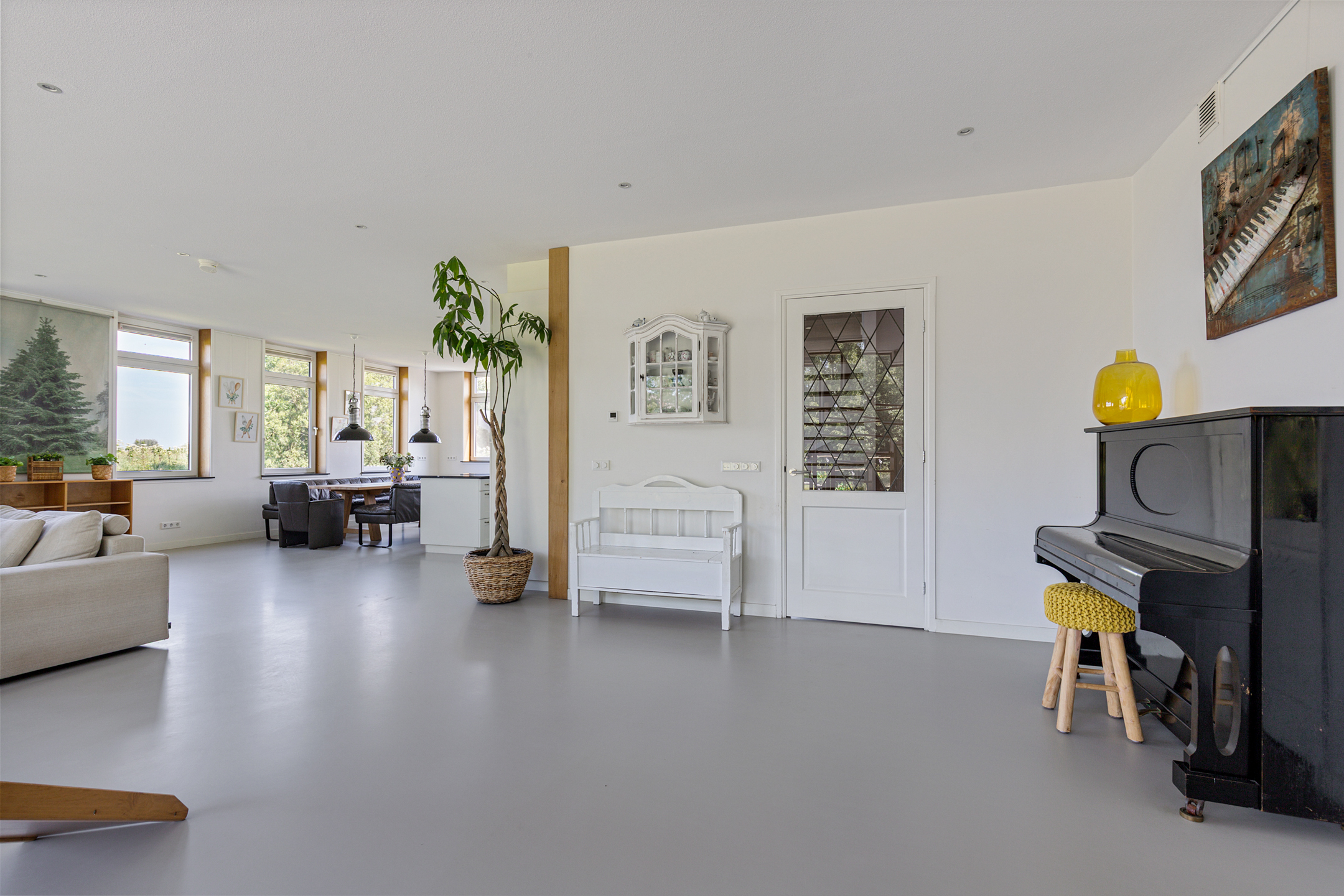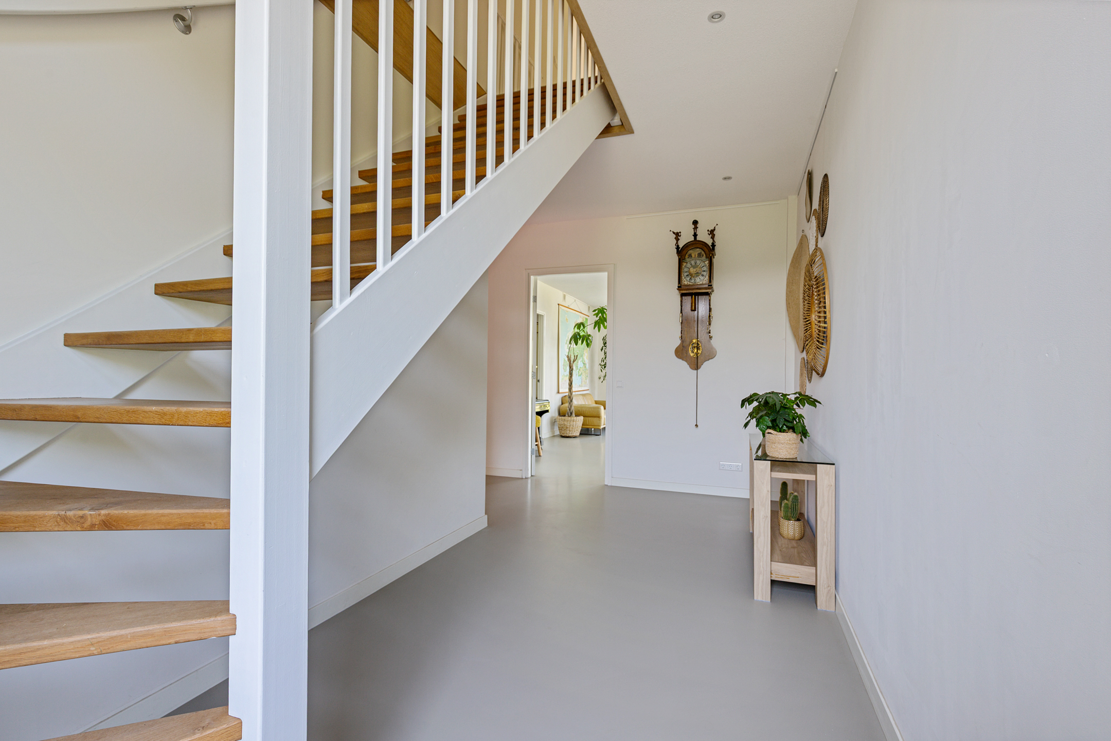 De gehele woning is afgewerkt met een moderne gietvloer inclusief vloerverwarming.