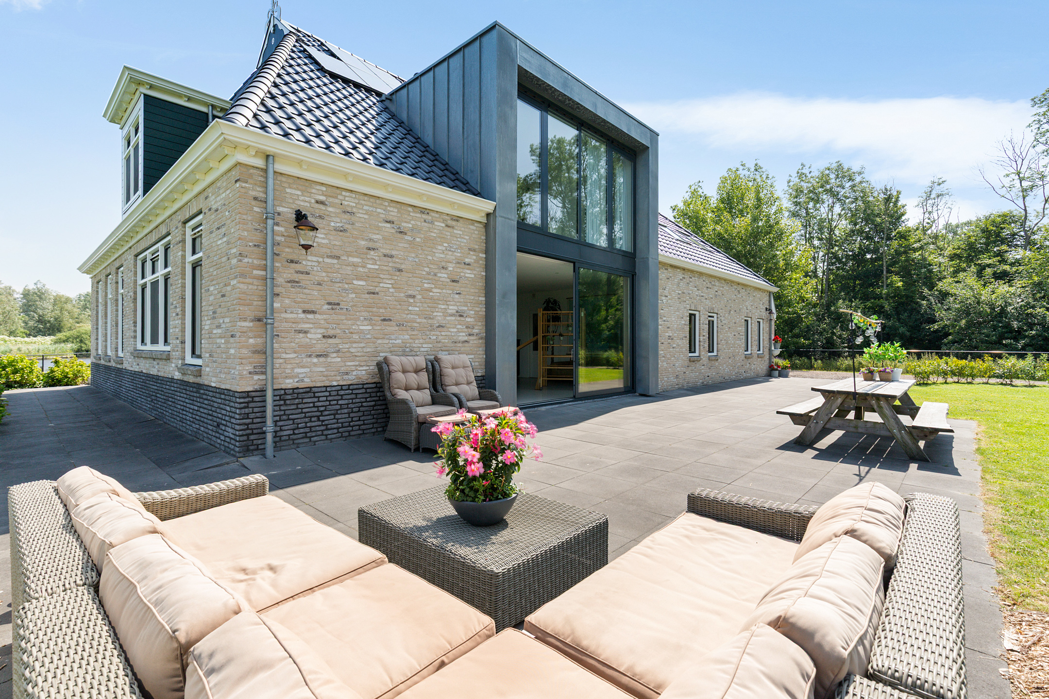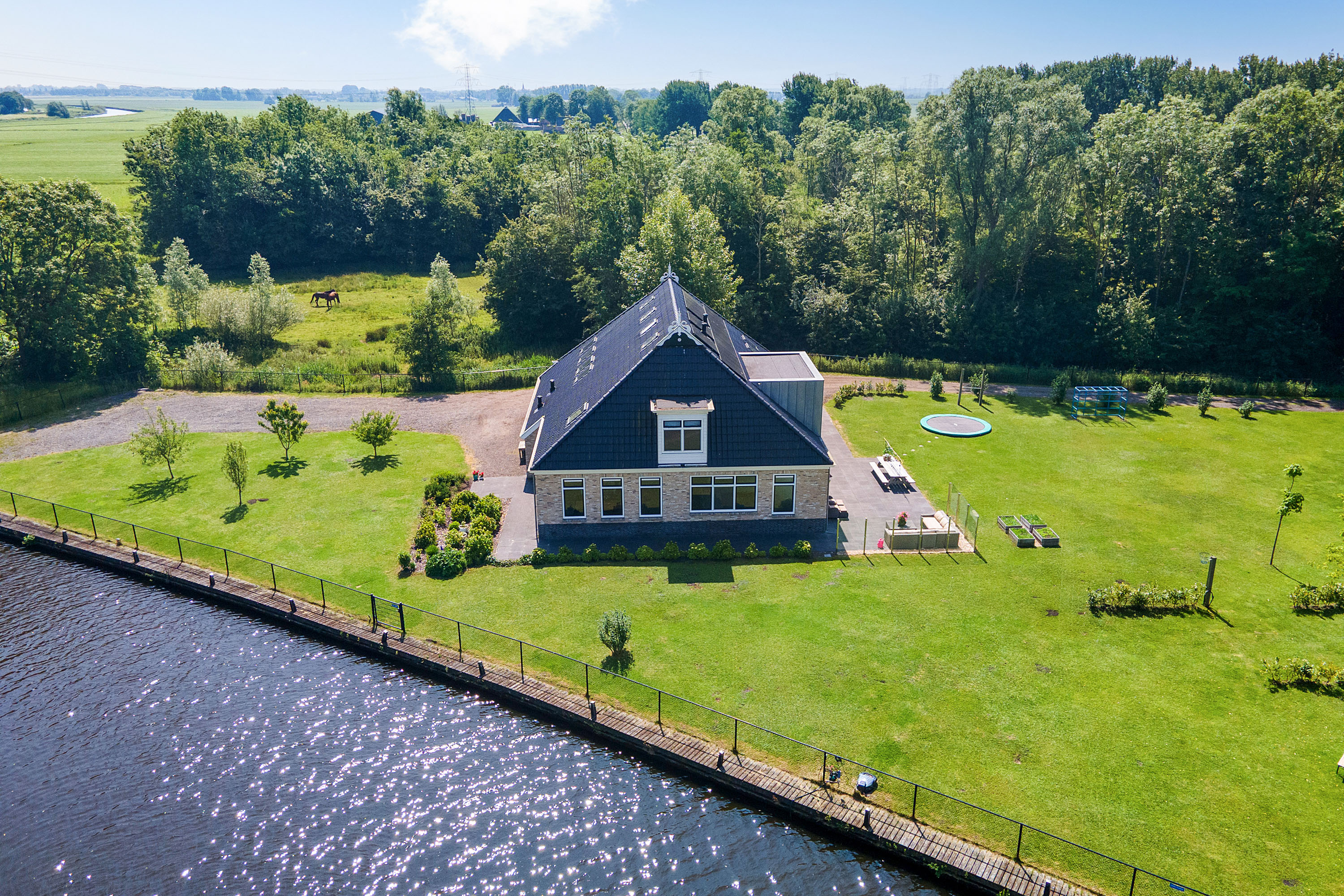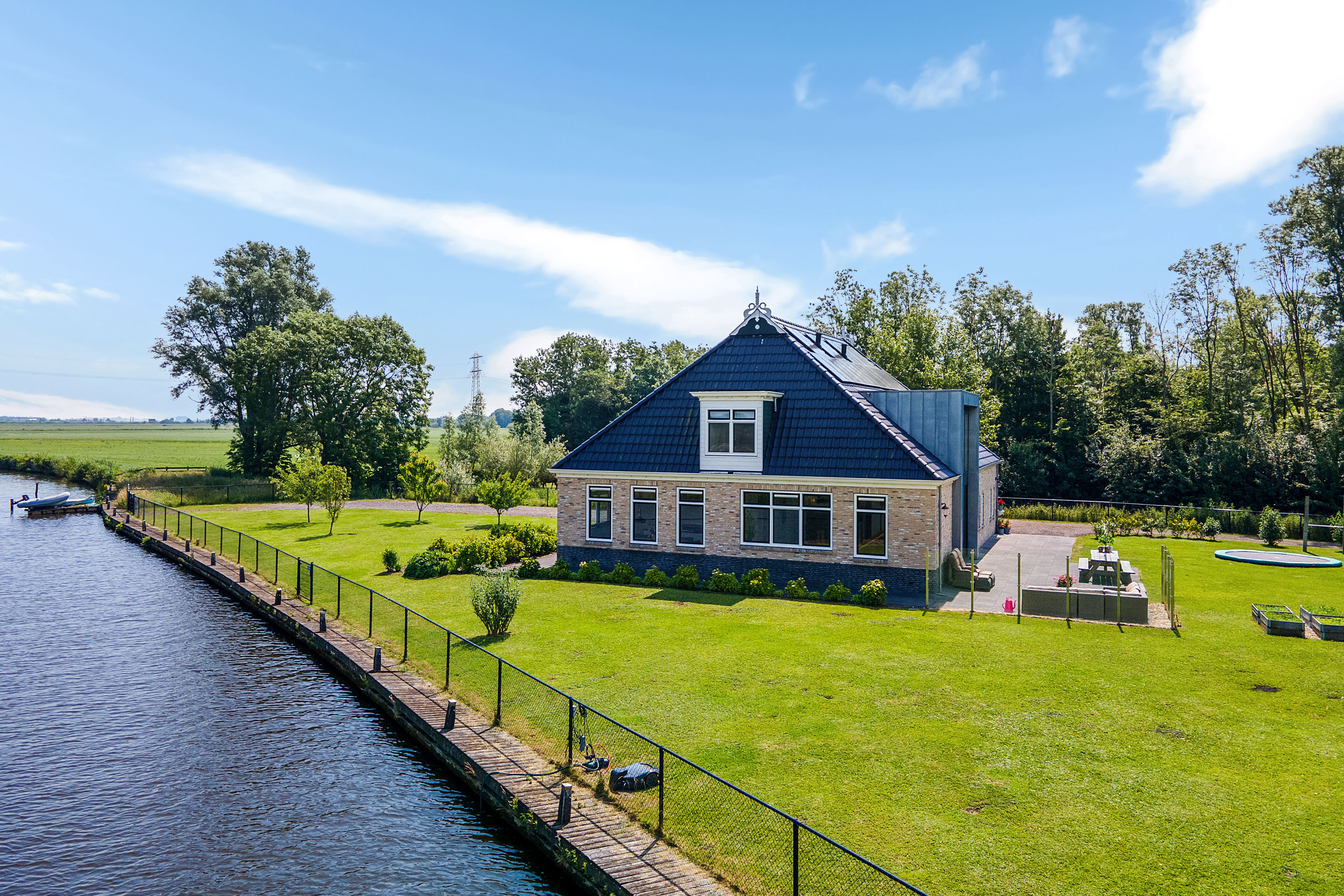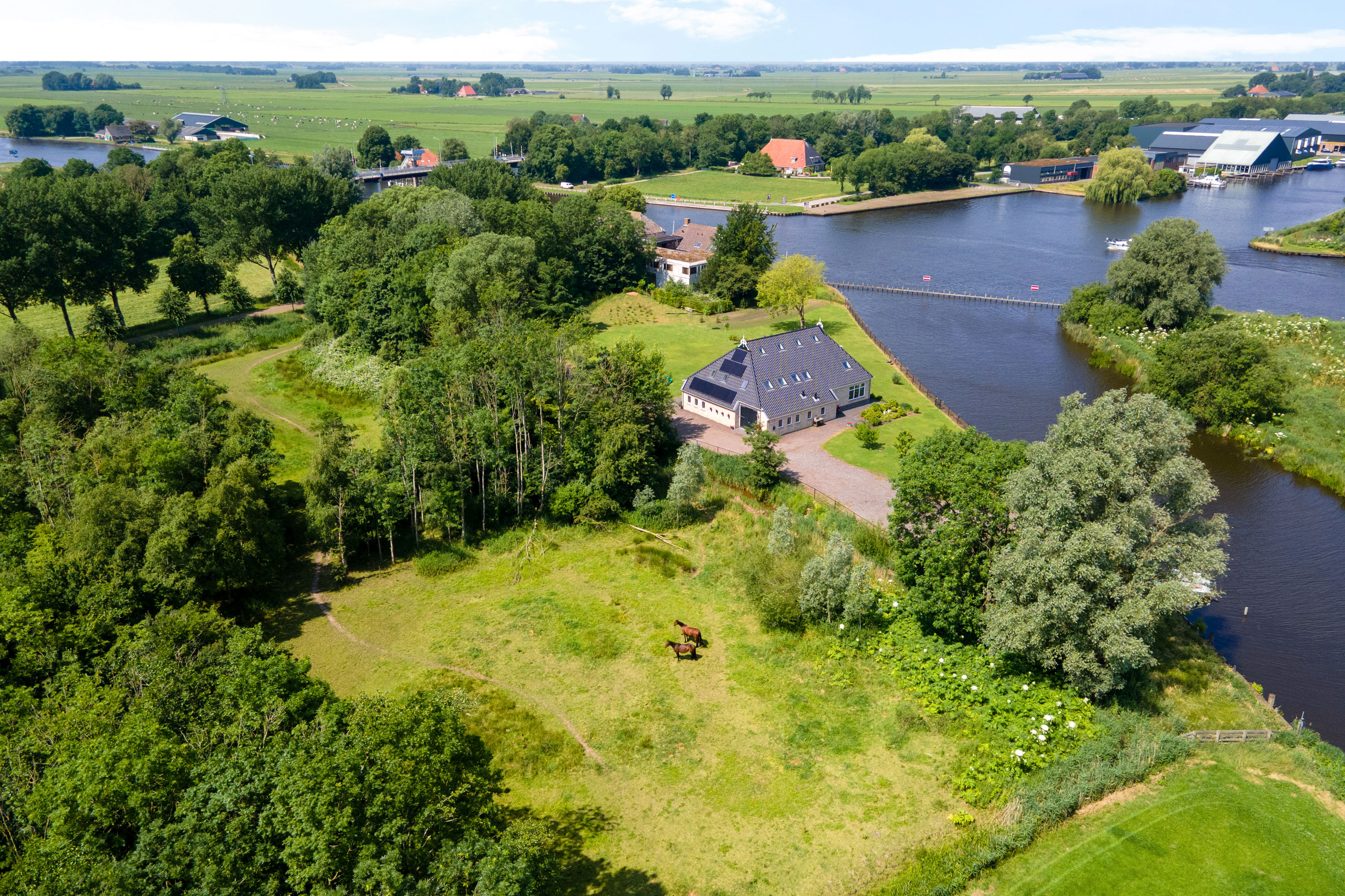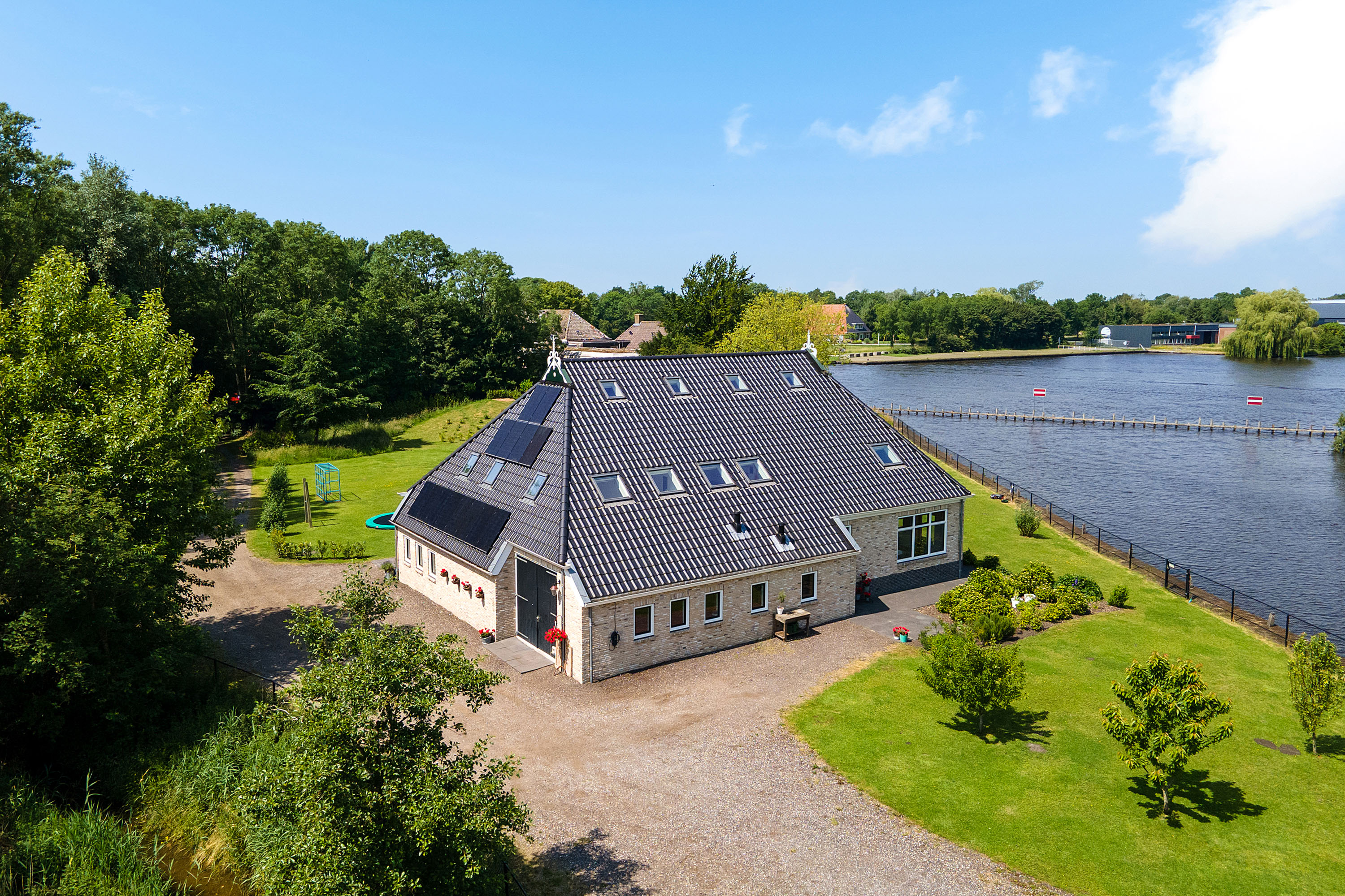 Verscholen aan het einde van een schilderachtig groen laantje, waar de bomen wijken voor het water van de Nije Wetering – de vaarverbinding tussen het Pikmeer bij Grou en het Sneekermeer bij Terherne – ligt deze unieke, in 2019 gebouwde woonboerderij. Met een woonoppervlakte van ruim 400 m² op een perceel van ruim 4500 m² aan een 100m lange kade, is dit een droomplek voor wie groots, vrij en met directe toegang tot het Friese merengebied wil wonen.