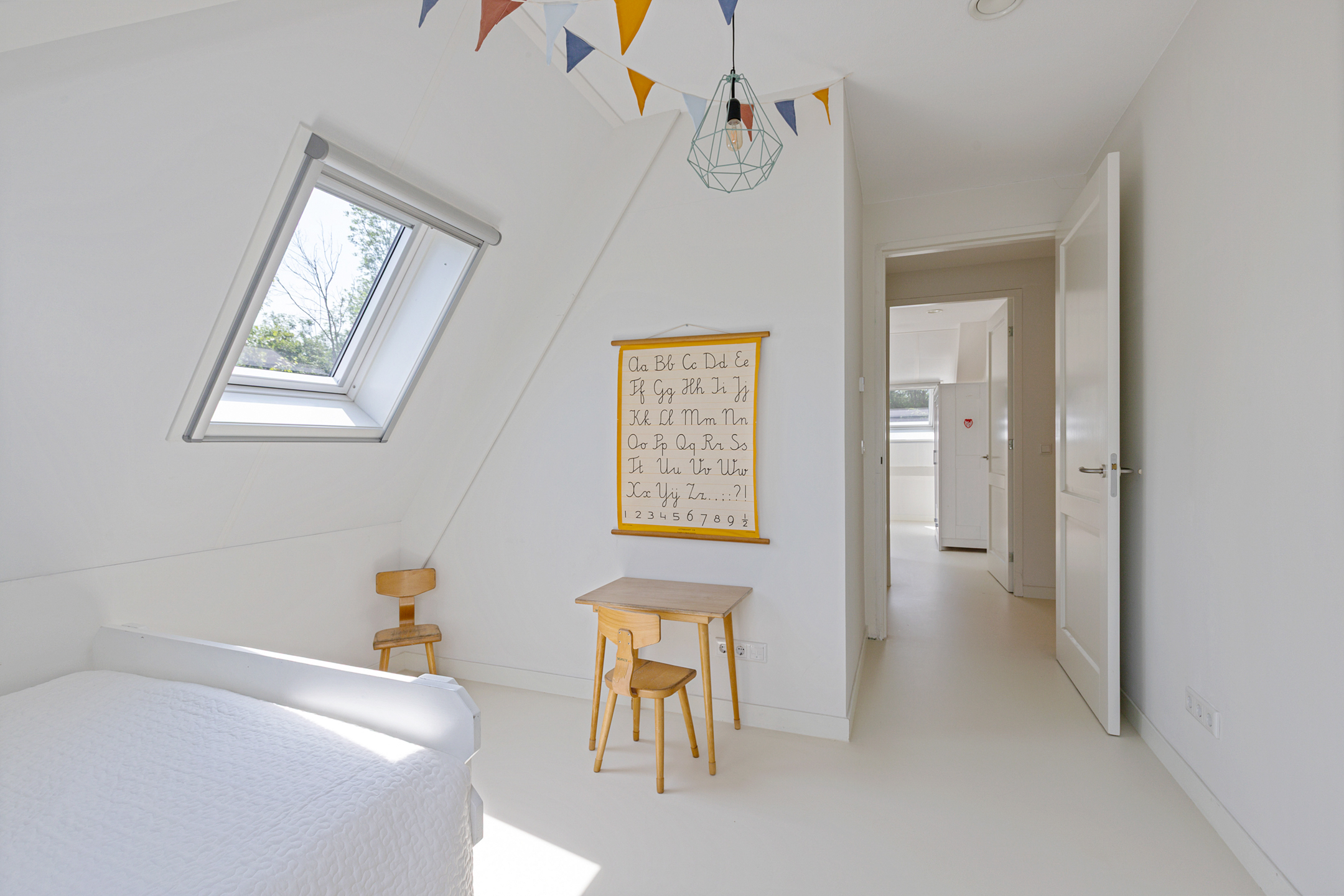 Via een vaste trap bereikt u de volledig geïsoleerde zolderverdieping met stahoogte over de volle lengte van de woning. Stoere stalen spanten en rustieke houten balken geven deze ruimte karakter. Met drie Velux dakramen is het hier licht en ruim. Ideaal als bergruimte of voor het creëren van extra woon- of werkvertrekken.