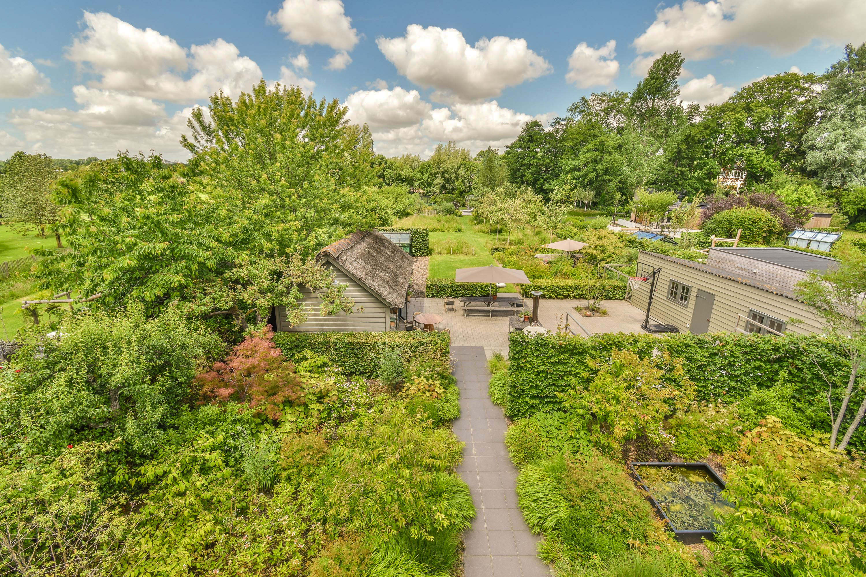 - Bijgebouwen: tuinkamer met keuken van 26 m²