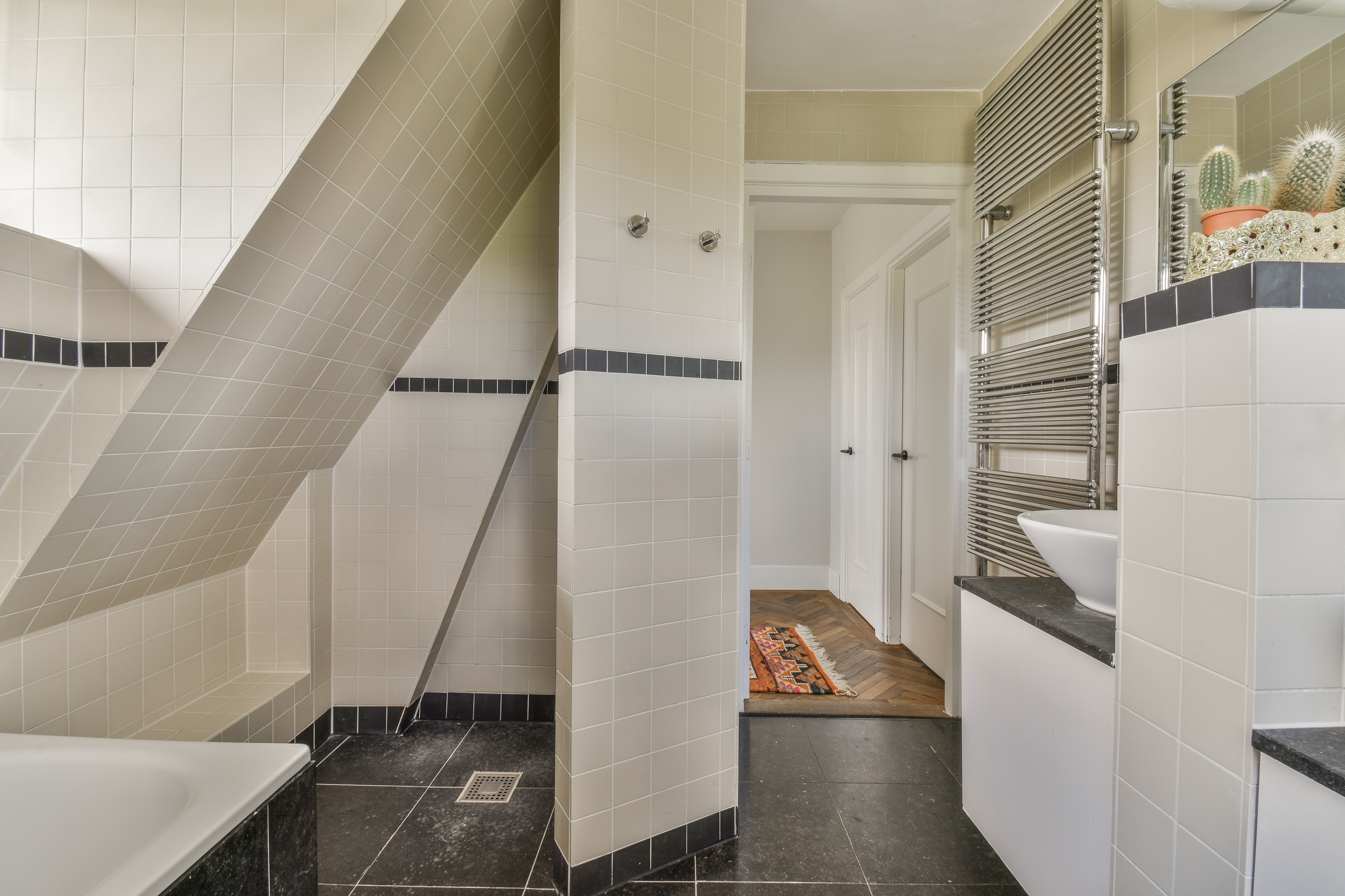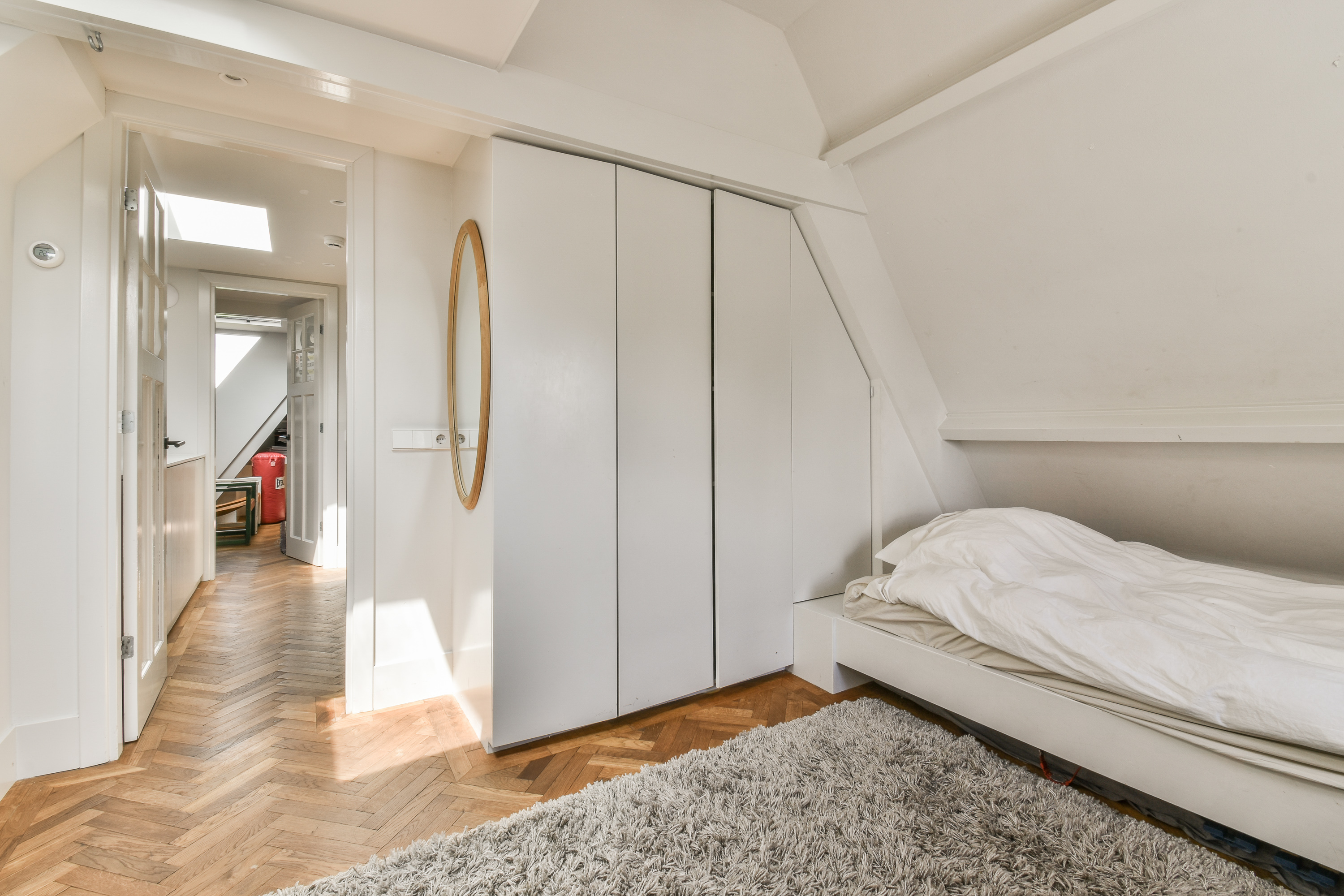 De kapverdieping biedt nog eens twee goed bemeten slaapkamers, gesitueerd aan de voor- en achterzijde van de woning. Centraal op deze verdieping bevindt zich een derde badkamer, voorzien van een douche, wastafel en toilet. Een ideale verdieping voor kinderen, logees of als extra werk- of hobbyruimte.