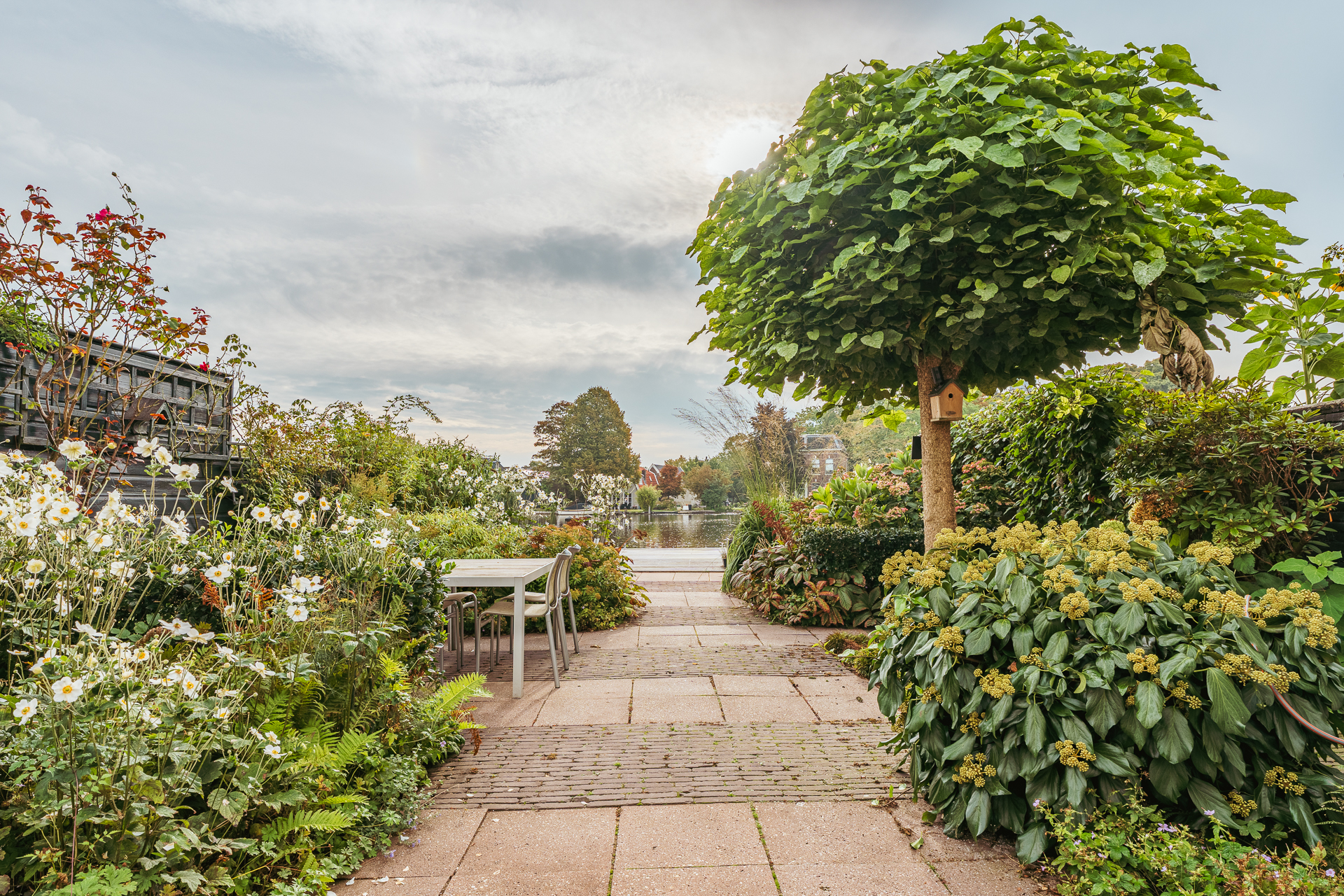 De achtertuin is fraai aangelegd met veel groen en beschikt over een steiger aan de Amstel. Hier kunt u in alle rust genieten van de unieke ligging en het vrije uitzicht over het water. De tuin is tevens bereikbaar via een privé zij-ingang naast de woning.