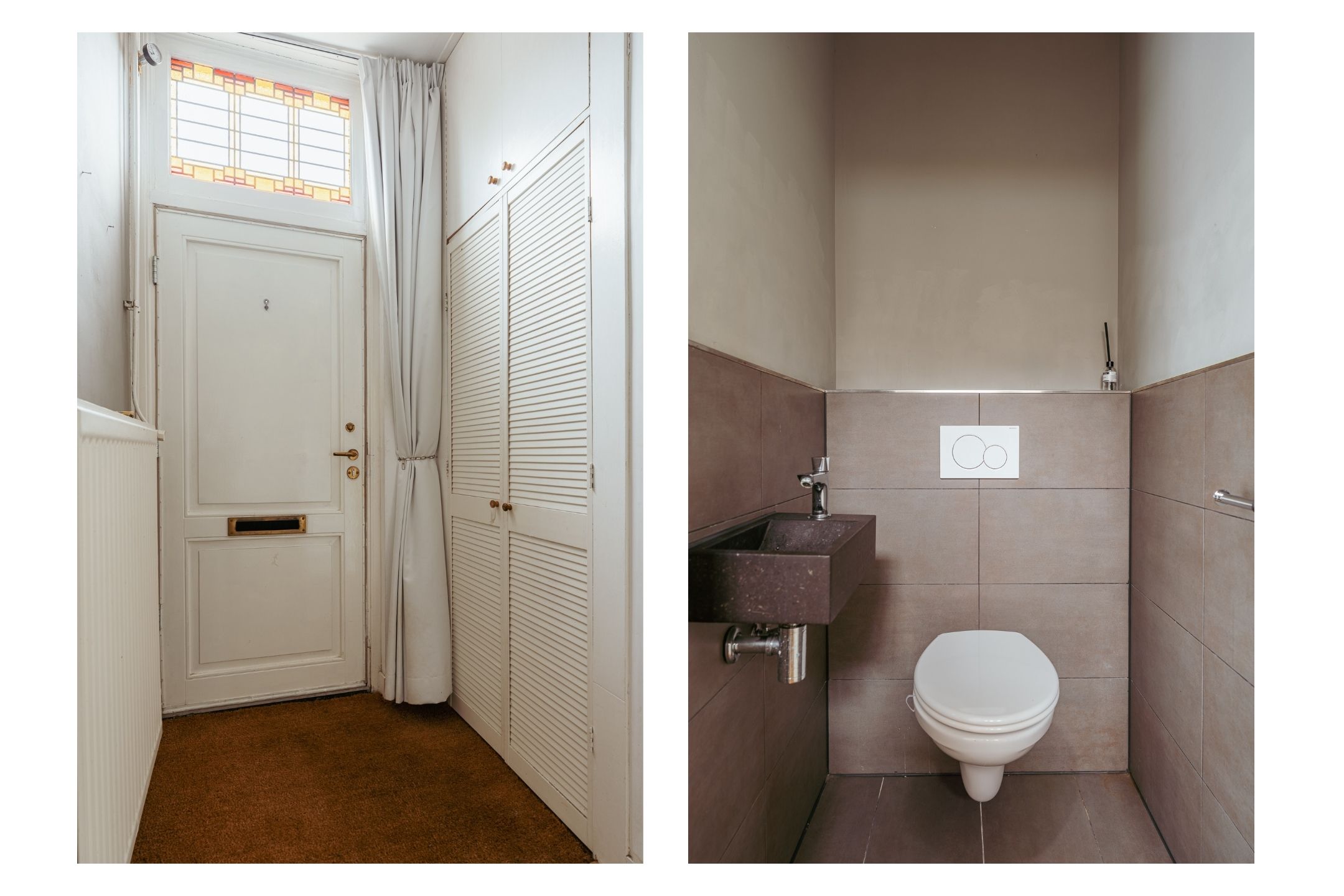 Via de entree aan de autoluwe straatzijde betreedt u de woning in de hal, voorzien van een garderoberuimte en separaat toilet met fontein. Vanuit de hal bereikt u de kamer aan de voorzijde van de woning, die dankzij de hoge ramen veel lichtinval heeft en ideaal kan dienen als kantoor of praktijkruimte. Deze ruimte beschikt tevens over een eigen (tweede) entree.