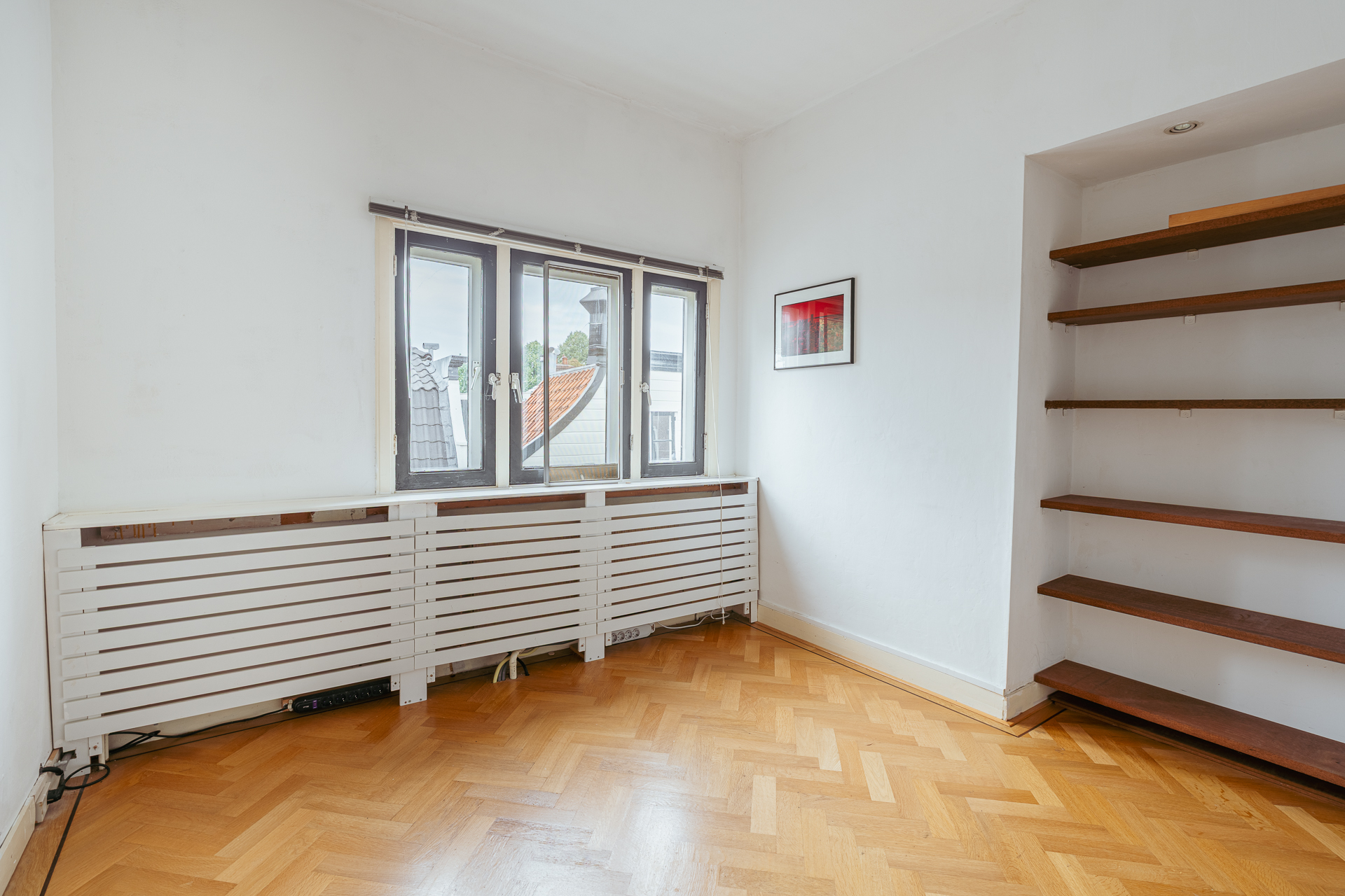 Aan de voorzijde bevinden zich twee goed bemeten slaapkamers, waarvan één momenteel in gebruik is als garderobe-/inloopkast. Dankzij de vaste kasten en praktische indeling zijn deze kamers veelzijdig te gebruiken, bijvoorbeeld als logeer- of werkkamer.
