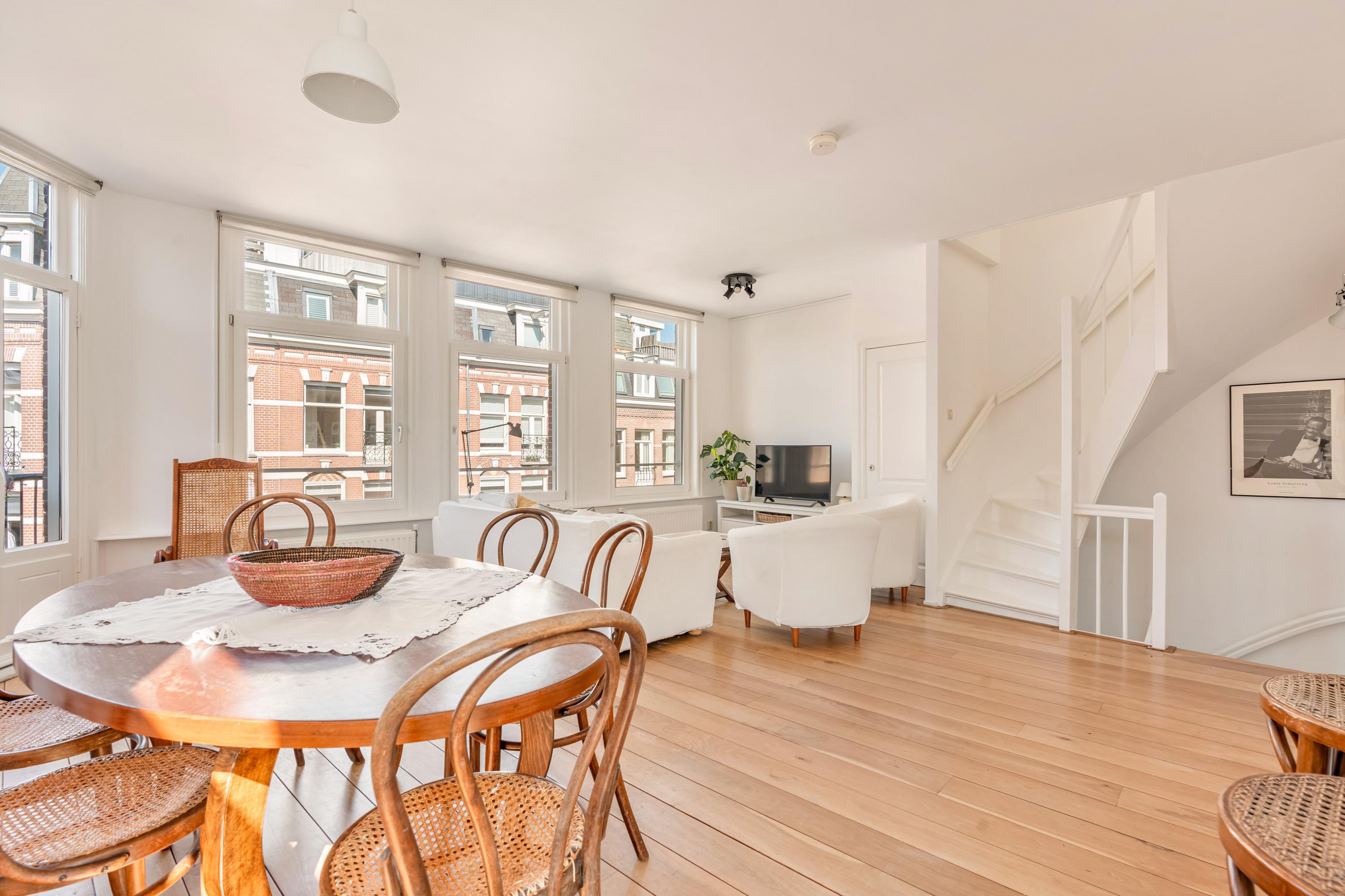 Midden in het populaire Amsterdam Oud-Zuid bieden wij dit sfeervolle en ideaal ingedeelde hoekappartement circa 89m² aan. Het appartement is gelegen op de derde en vierde verdieping en beschikt over een lichte, sfeerrijke woonkamer met moderne open keuken, een Frans balkon, twee ruime slaapkamers en een badkamer met ligbad en een groot dakterras van circa 12m². Dit alles ligt op EIGEN GROND! Met talloze winkels, restaurants en cafés op loopafstand, bevindt u zich midden in één van de meest dynamische en geliefde buurten van Amsterdam!