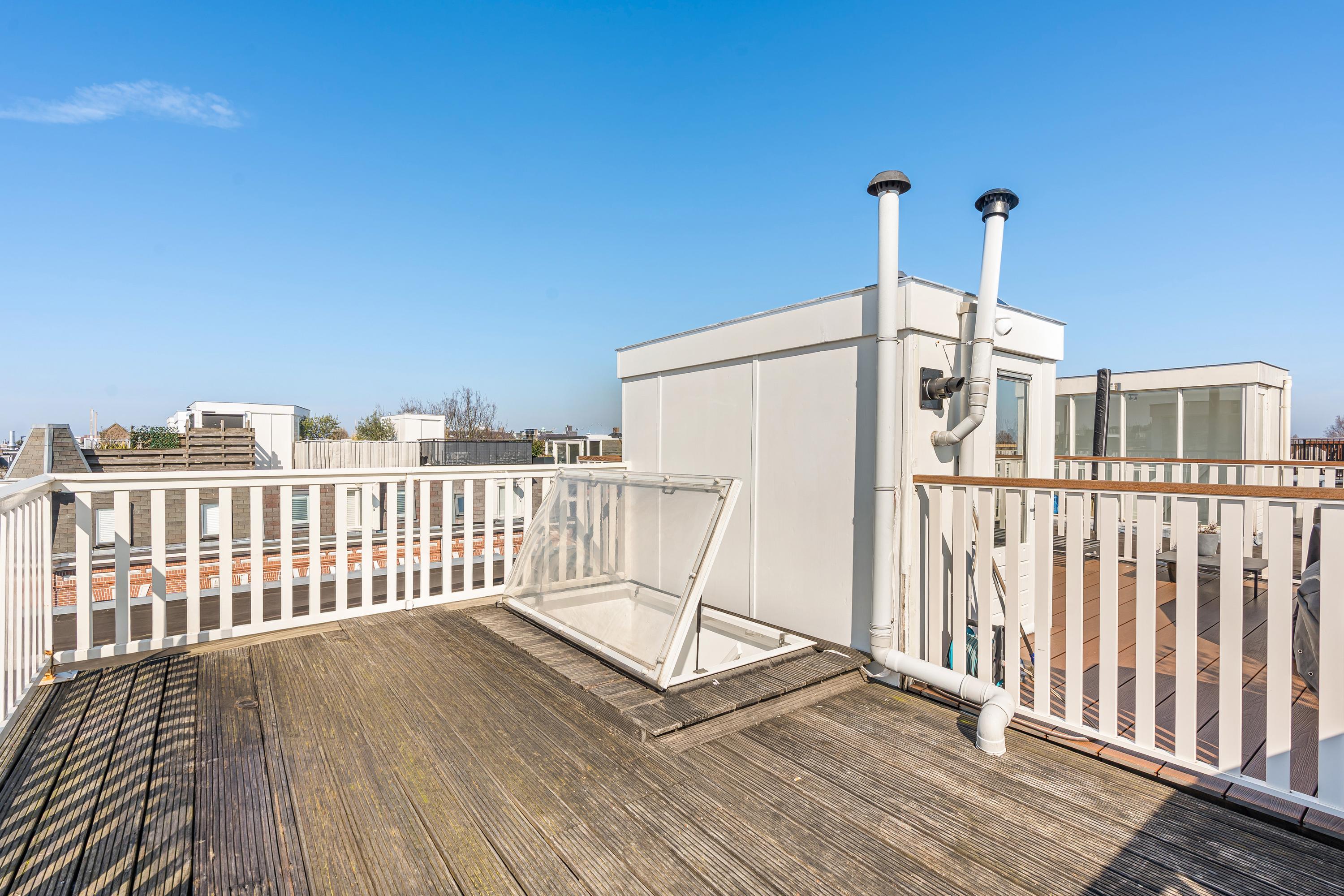 Via de trap bereikt u de eyecatcher van de woning: het dakterras. Hier geniet u van een mooi, vrij uitzicht en een heerlijke plek om in alle rust van de zon te genieten.