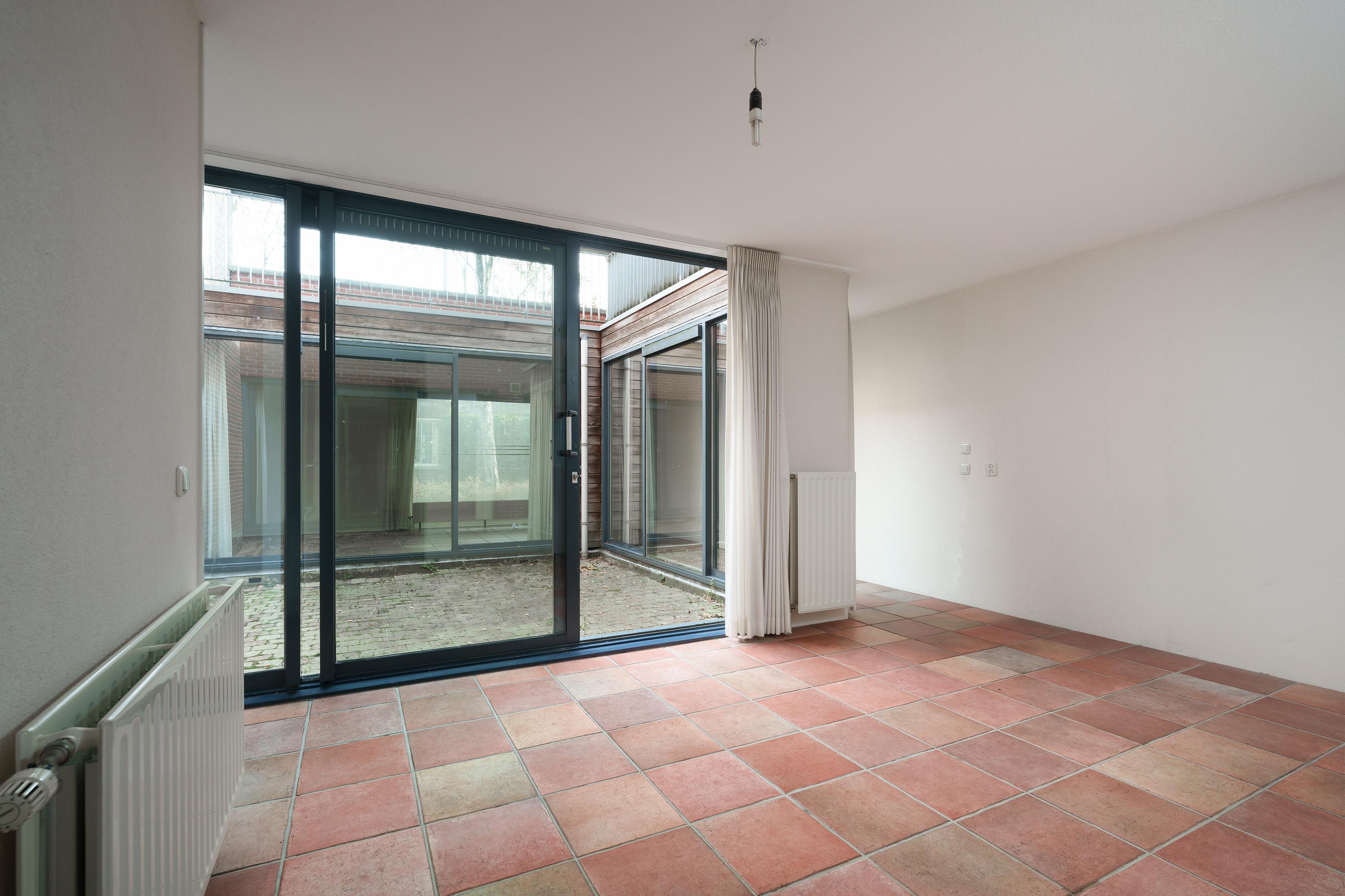 Rondom de patio bevinden zich verder twee ruime kamers die in open verbinding met elkaar staan. De kamer aan de achterzijde beschikt over een eigen entree! Ideaal voor als je atelier, praktijk of kantoor aan huis wenst, maar geen bezoekers ‘door’ je huis wil.
