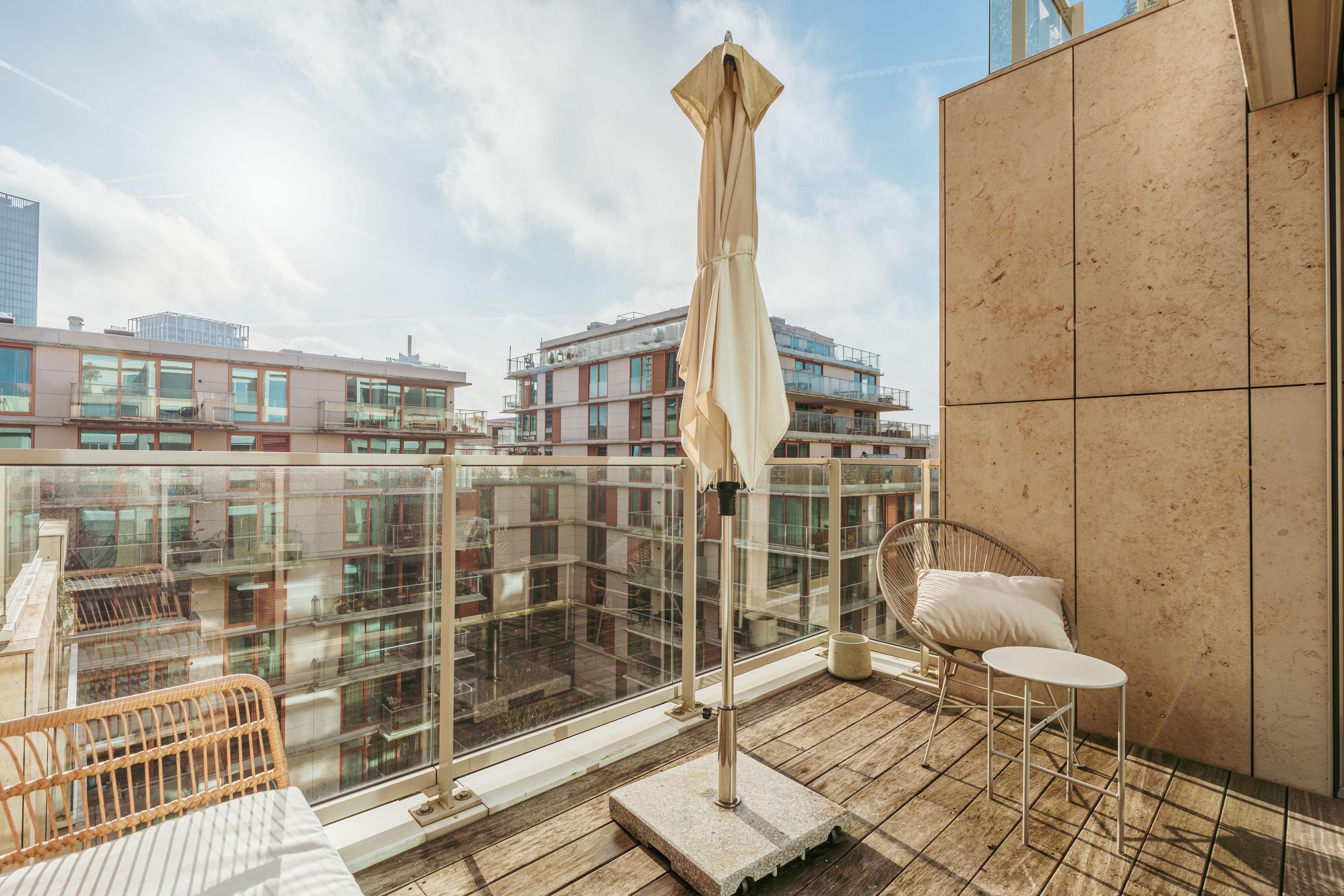 Via de verzorgde entree van de het complex, bereik je via de lift of trap de vijfde verdieping. Hal met separaat toilet en fontein en een ruime berging met de warmtepomp en de benodigde aansluiting voor wasmachine en droger. Vanaf hier heeft u toegang tot alle vertrekken. De riante hoofdslaapkamer is aan de voorzijde gesitueerd. Imposante raampartijen zorgen voor bijzonder veel licht. Aangrenzend bevindt zich de royale living. Een grote schuifpui verschaft de toegang tot het zuidelijk georiënteerde terras. De woonkeuken is voorzien van alle denkbare inbouwapparatuur waaronder een inductiekookplaat, vaatwasser, koel-/vriescombinatie en combi-oven. Er is meer dan genoeg opbergruimte.