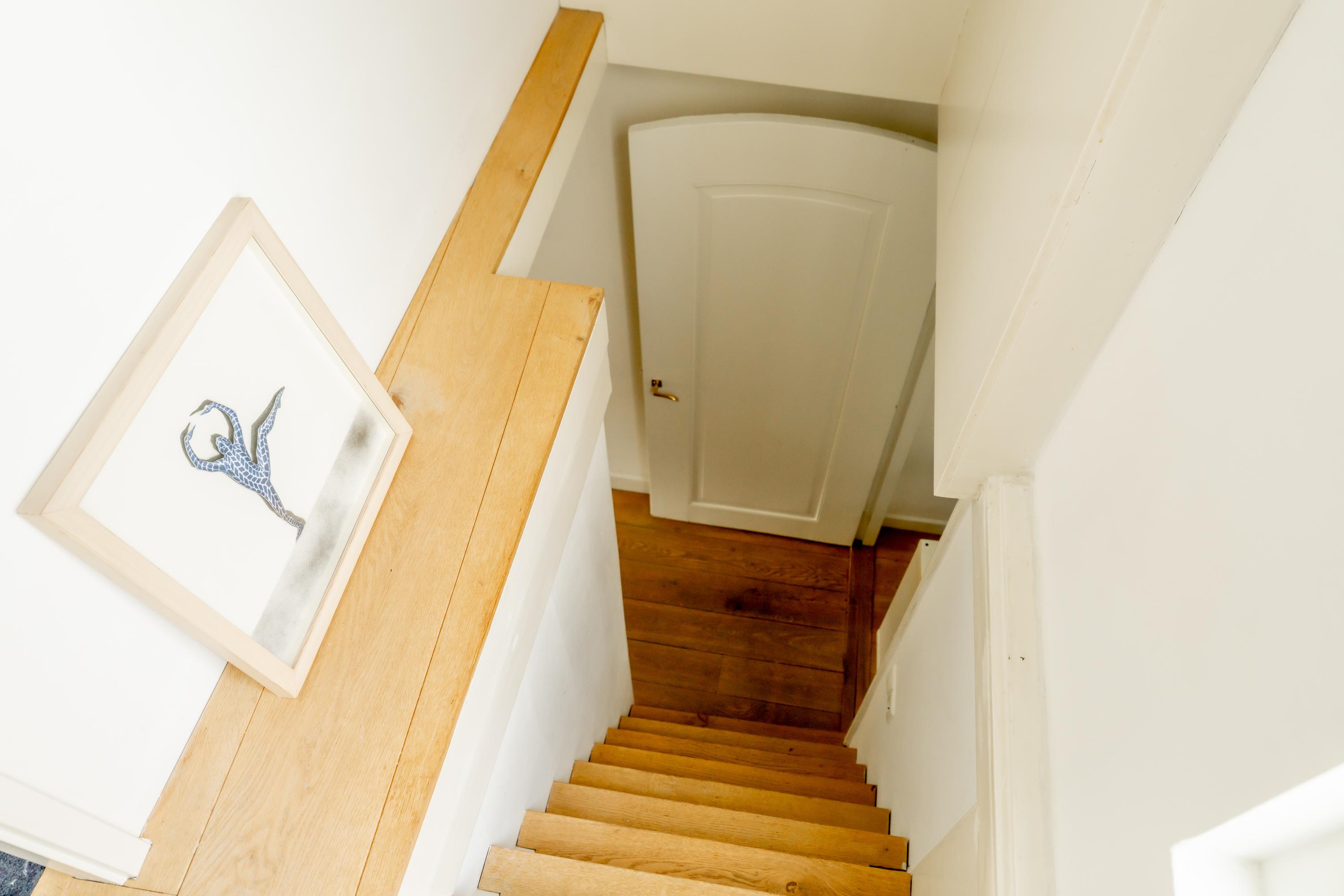 Een ruime slaapkamer aan de voorzijde, een karaktervolle vide als extra kamer, en dan het hoogtepunt: het dakterras. Intiem, beschut, en met uitzicht op de historische daken en de kerk — een zeldzame luxe in het centrum.