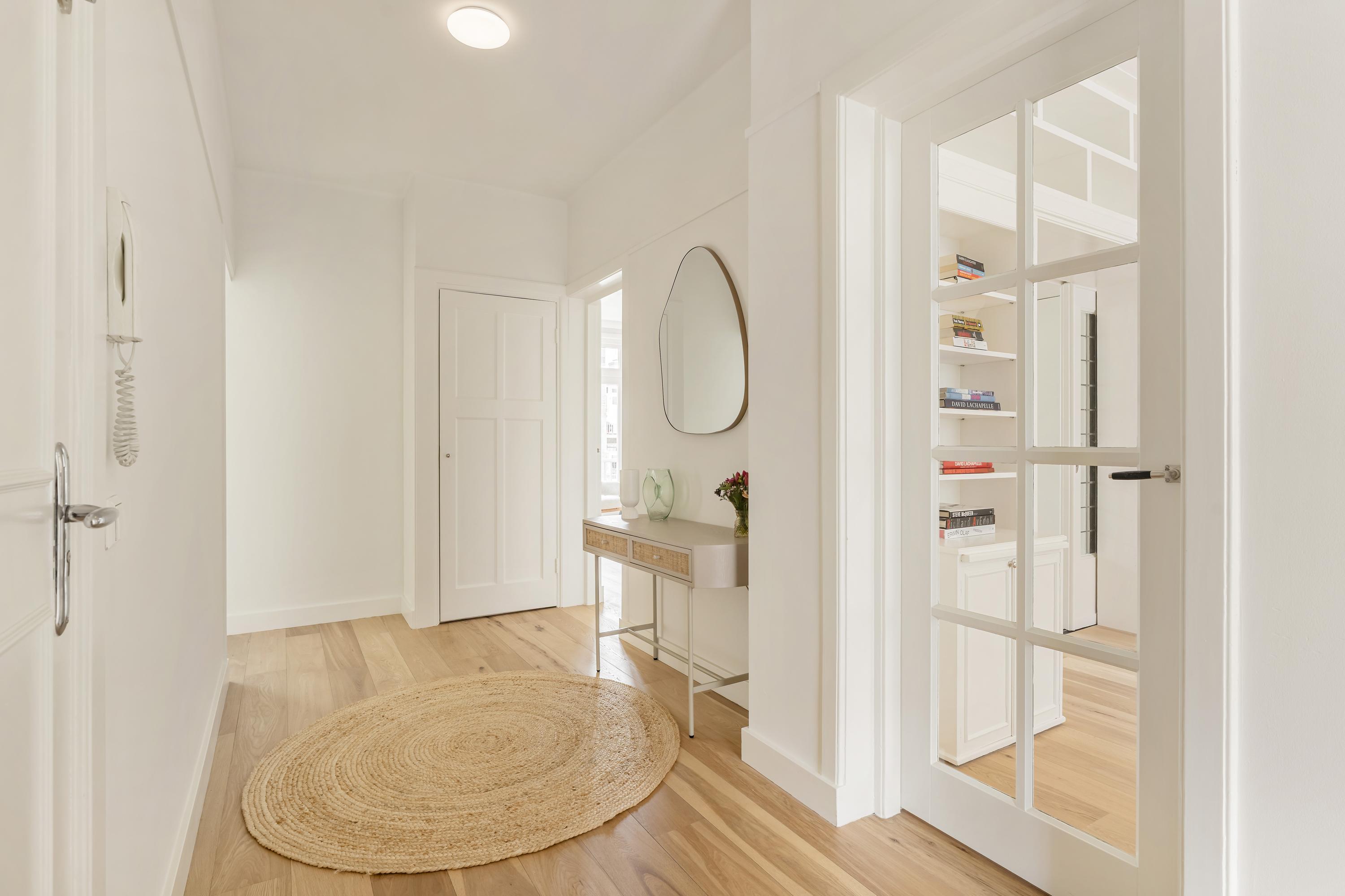 Entree van de woning bevindt zich op de tweede verdieping. U stapt binnen in de ruime hal van waaruit u toegang heeft tot alle vertrekken.
