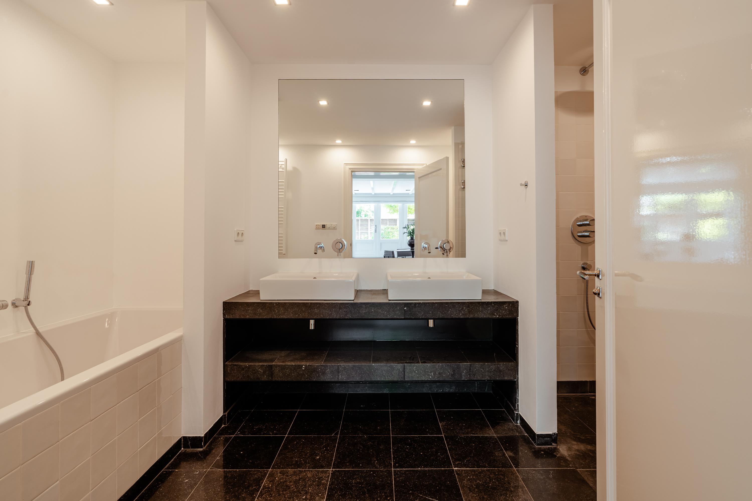 De bel-etage beschikt over drie comfortabele slaapkamers en twee stijlvolle badkamers, beide voorzien van vloerverwarming. De master bedroom is uitgerust met een op maat gemaakte kastenwand en een luxe en-suite badkamer met ligbad, dubbele wastafel met meubel, inloopdouche en toilet. De tweede badkamer is eveneens modern uitgevoerd en beschikt over een wastafel met meubel en een inloopdouche. Tevens bevindt zich op deze verdieping nog een apart toilet. De aanwezigheid van een tweede entree op dit niveau benadrukt het praktische én exclusieve karakter van de woning.