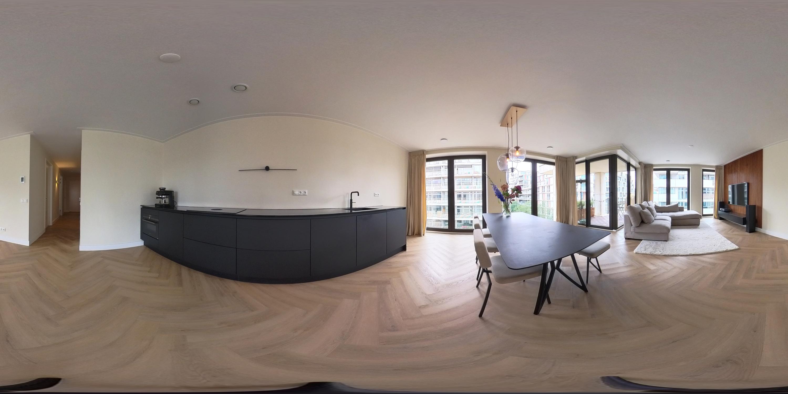 De keuken is uitgevoerd in matzwart design en voorzien van alle denkbare inbouwapparatuur, waaronder een inductiekookplaat, combi-oven, vaatwasser en een Quooker. Er is meer dan genoeg opbergruimte. Vanuit de woonkamer is er toegang tot het ruime balkon op het zuidwesten, waar u geniet van de middag/avond zon en een prachtig uitzicht op het groene plein.