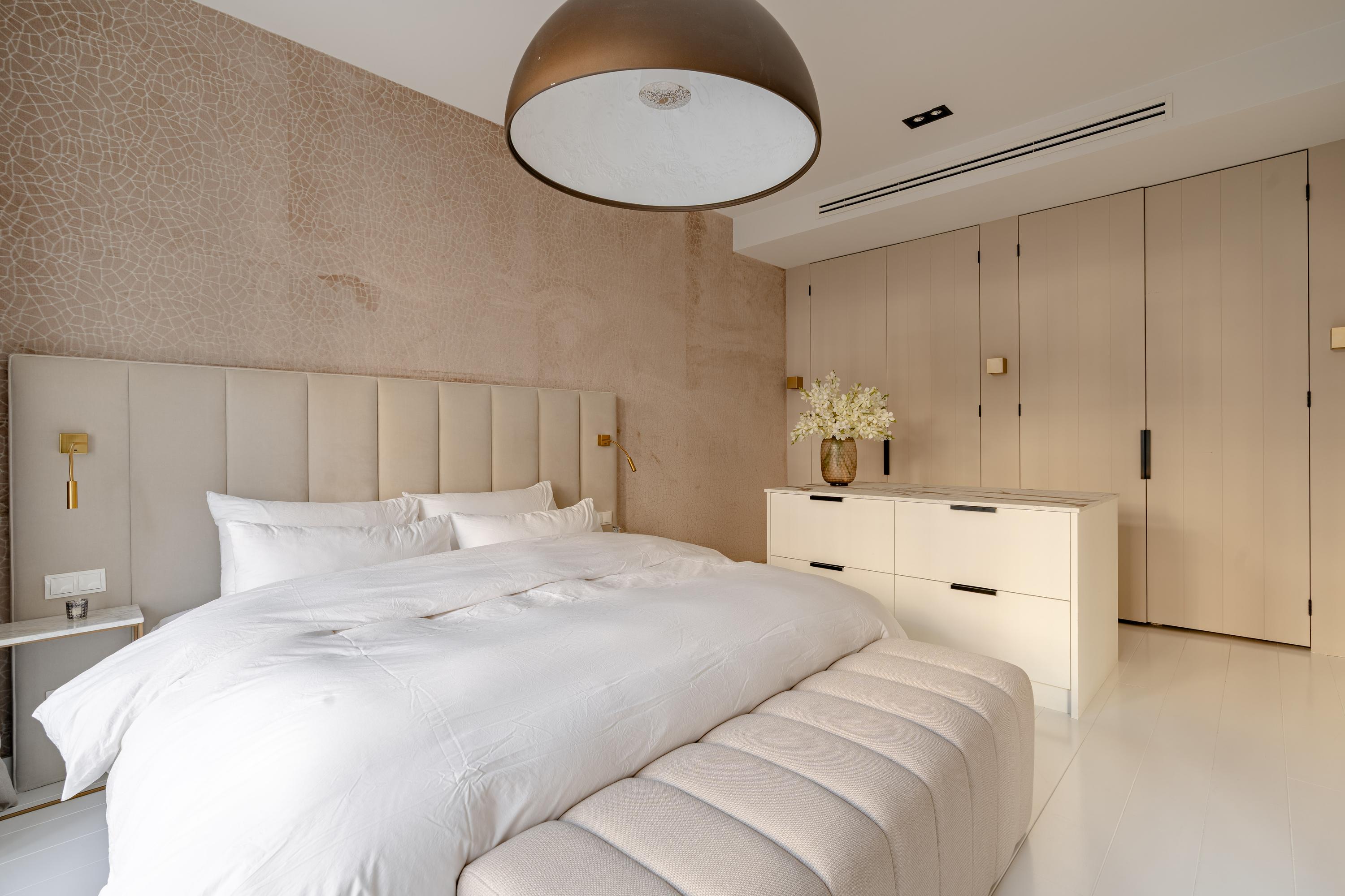 De tweede verdieping biedt wederom een ruime overloop, twee grote slaapkamers en badkamer. Beide kamers zijn voorzien van airconditioning en inbouwkasten, waardoor er volop opbergruimte is. De slaapkamer aan de achterzijde beschikt daarnaast over openslaande deuren naar het tweede balkon. De badkamer op deze verdieping is wederom stijlvol afgewerkt en voorzien van een inloopdouche, wastafel met meubel en toilet.