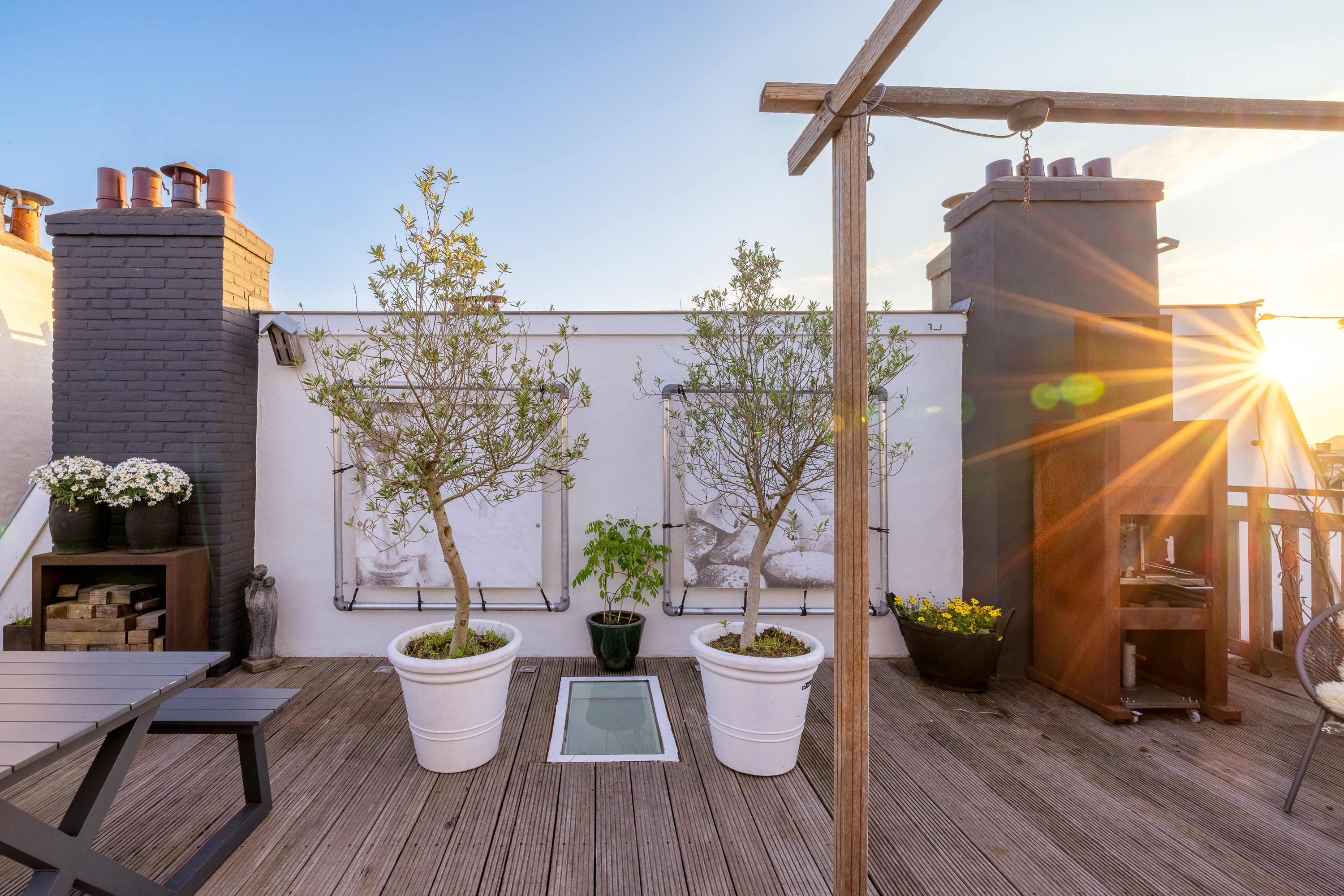 - Uniek dakterras (ca. 50m²) met vrij uitzicht en veel privacy.