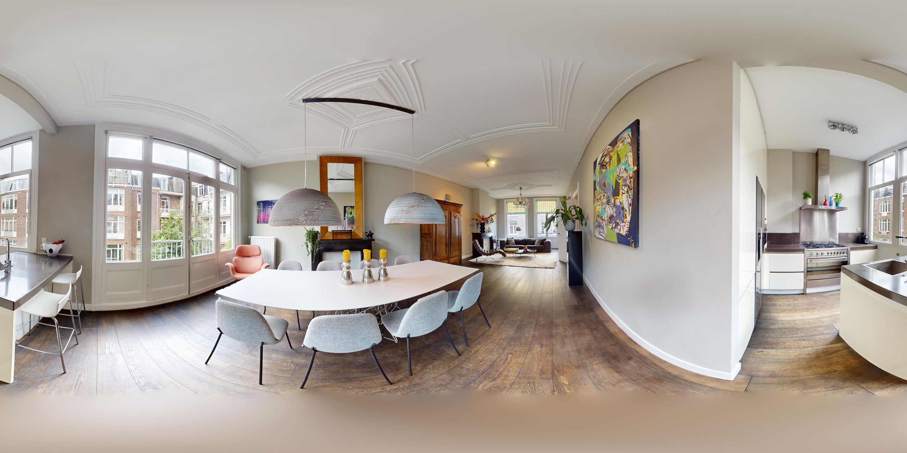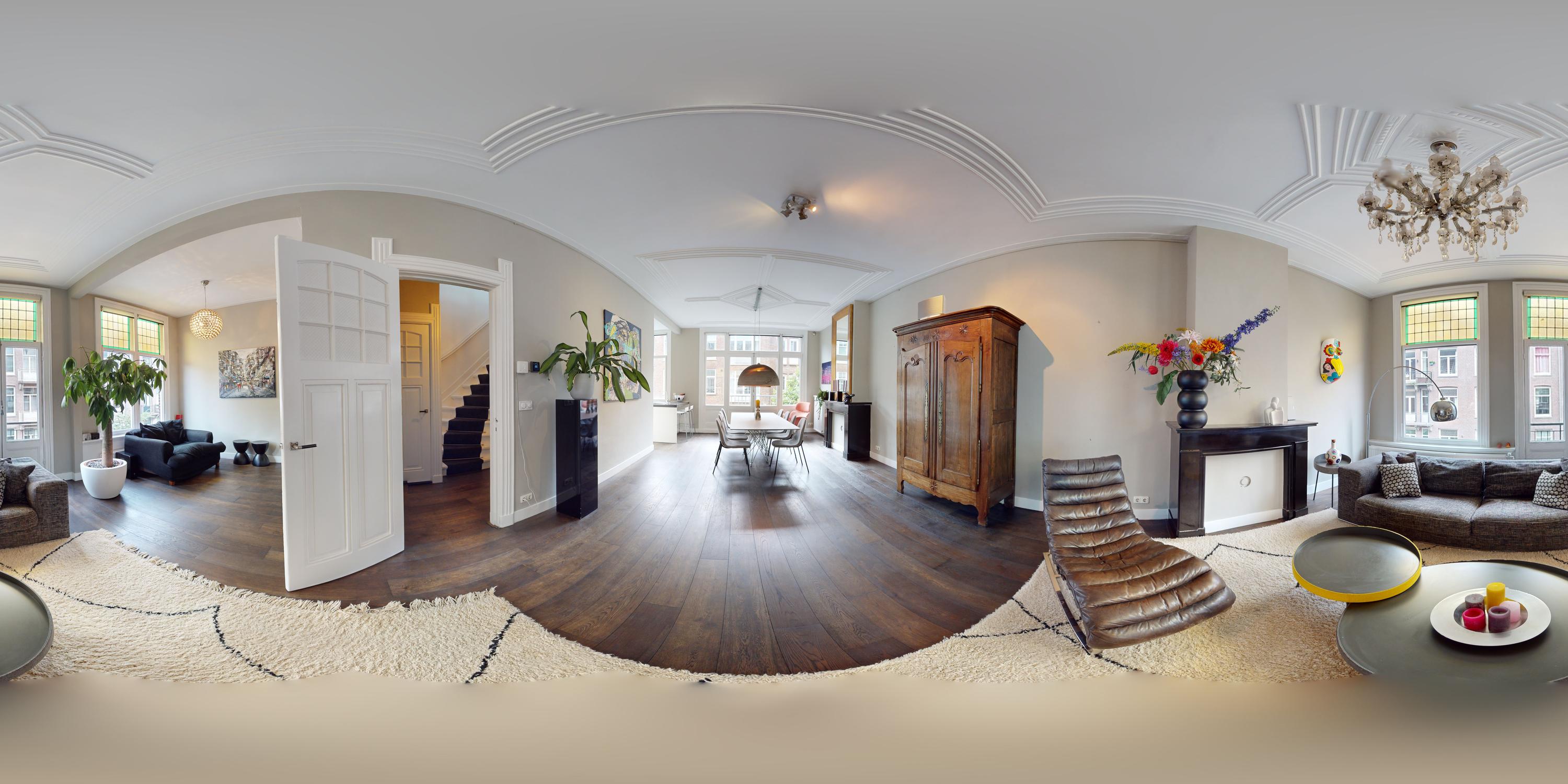 Op de overloop vindt u een apart toilet met fontein. Vanuit de overloop heeft u toegang tot de ruime doorzonwoonkamer. Aan de voorzijde van de woonkamer is er voldoende ruimte voor zowel een formele zithoek als een gezellige tv-hoek. Tevens is hier een fraai balkon met uitzicht op de Valeriusstraat en de Amstelveenseweg.