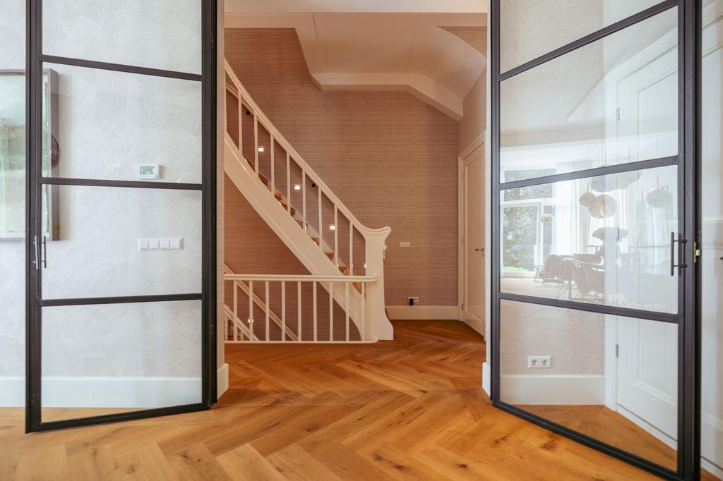 De gehele woning is voorzien van een prachtige houten vloer, in visgraat motief gelegd.