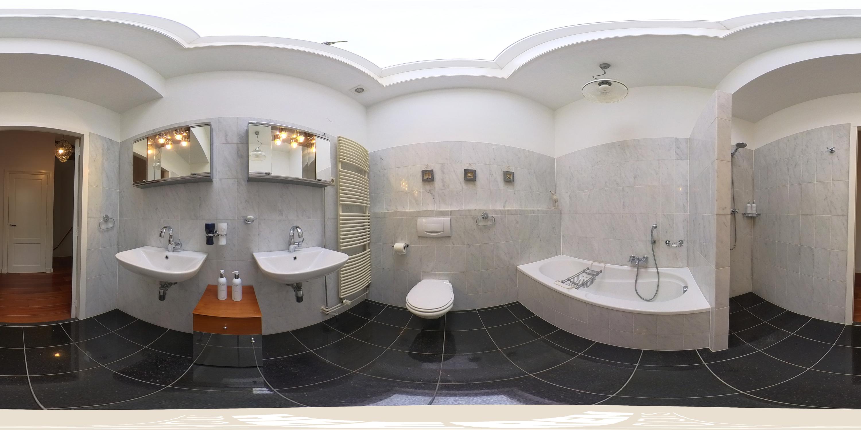 A separate toilet with a sink is accessible from the central hall, as well as the staircase leading to the fourth and top floor of this characteristic apartment.