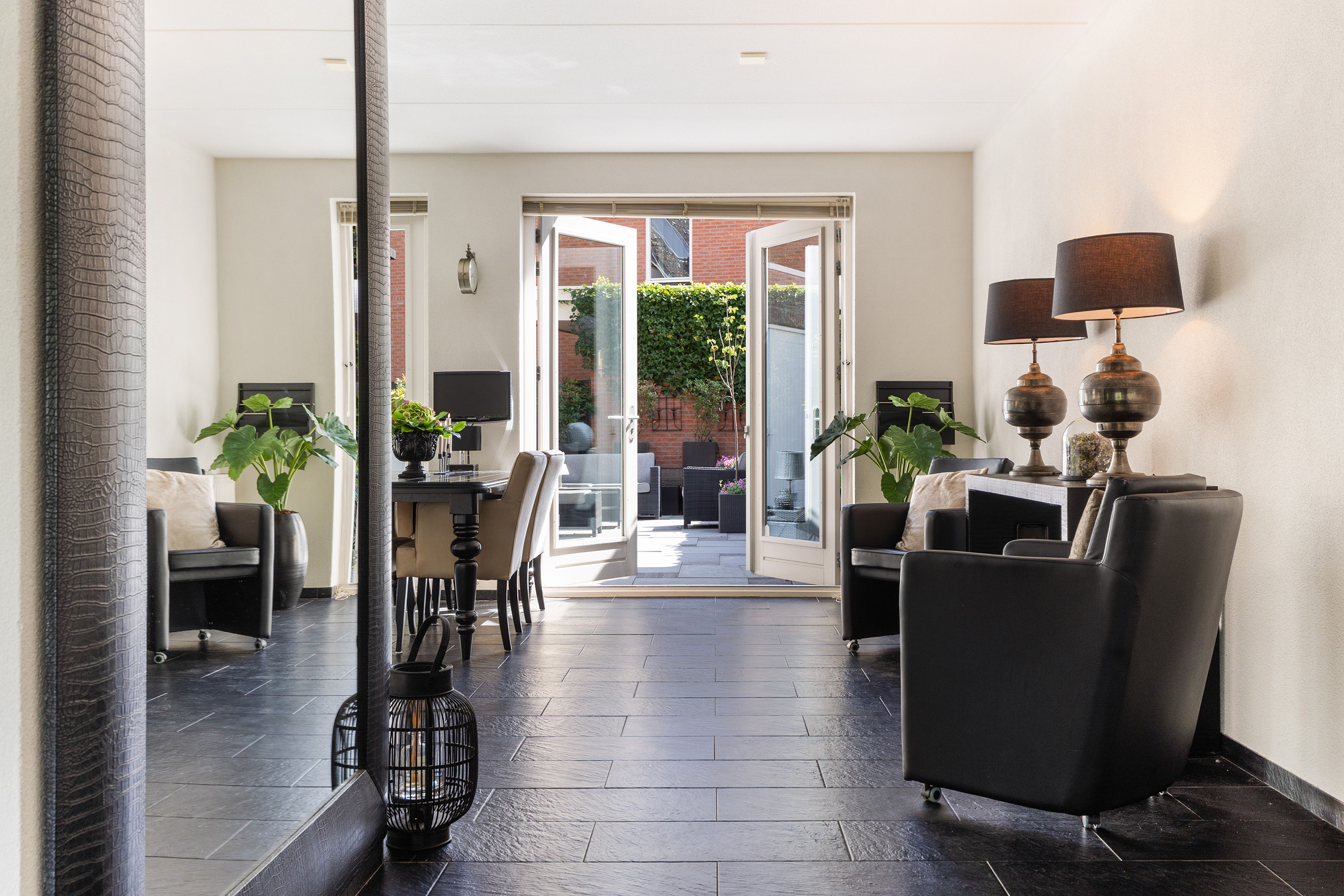 De lichte woonkamer met karakteristieke erker en stijlvolle gashaard vormt het hart van het huis. Dankzij de royale opzet en de vele raampartijen is dit een aangename plek om samen te zijn. Vanuit de woonkamer loopt u door naar de ruime woonkeuken (ca. 26 m²), waar plaats is voor een grote eettafel. De keuken is voorzien van diverse inbouwapparatuur en heeft openslaande deuren naar de tuin – ideaal om binnen en buiten naadloos met elkaar te verbinden.