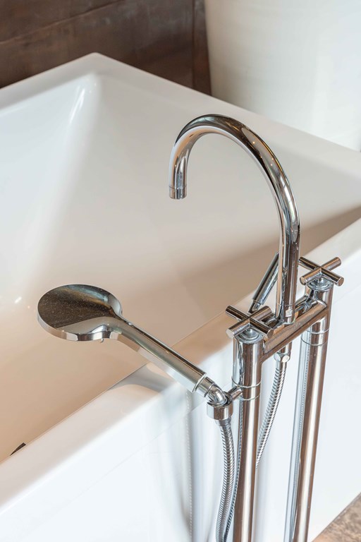 Slaapkamer 1 gelegen aan de voorzijde van de woning. Deze master suite, met doorkijkjes naar de tuin, is een oase van rust. Aansluitend heeft u toegang tot een kleedkamer en een complete badkamer met inloopdouche, een vrijstaand ligbad en 2 waskommen met meubel.