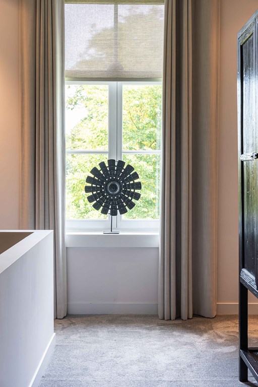 Evenals de leefruimtes beneden is de verdieping voorzien van hoge plafonds. Dit zorgt samen met de hoeveelheid daglichttoetreding voor een aangename woonbeleving op de verdieping.