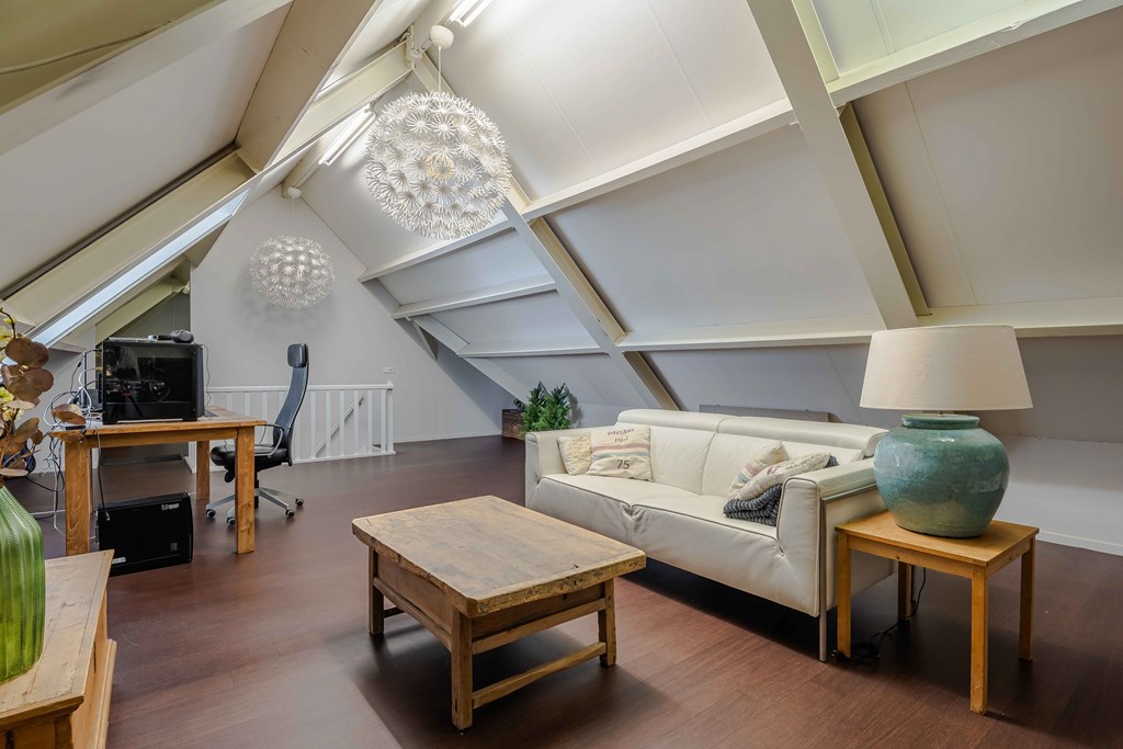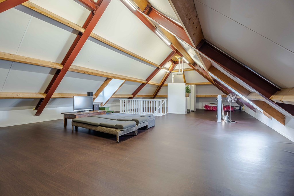 De zolderverdieping is in de huidige opzet één grote ruimte die multifunctioneel gebruikt kan worden. De zolder is voorzien van extra aansluitingen voor de wasmachine en de opstelplaats van de CV-Installatie. Het is mogelijk om hier extra slaapkamers te creëren, eventueel met een kleine badkamer.