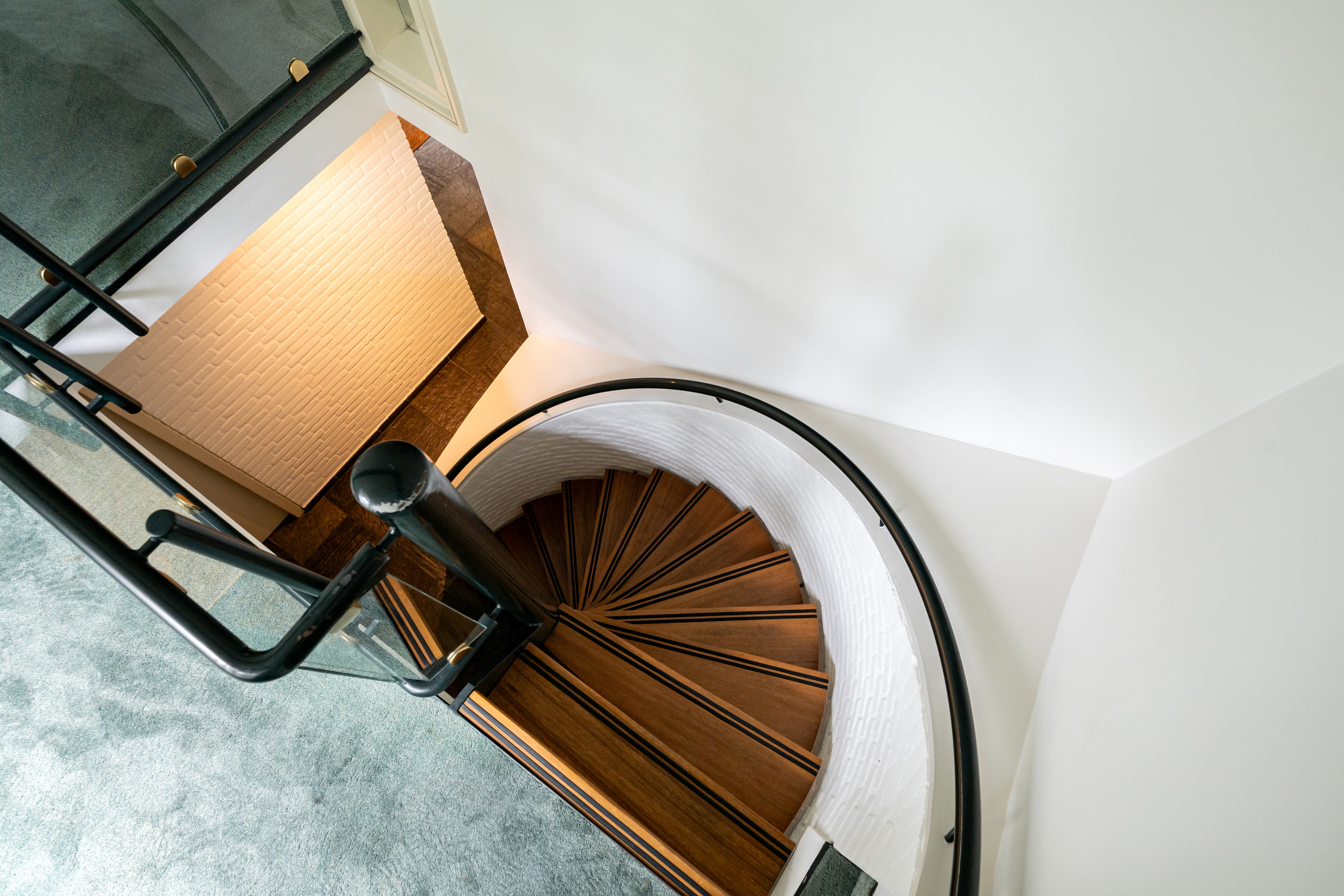 Het portaal verschaft toegang tot de trap, badkamer, pantry, vaste kast en de slaap-/werkkamer.