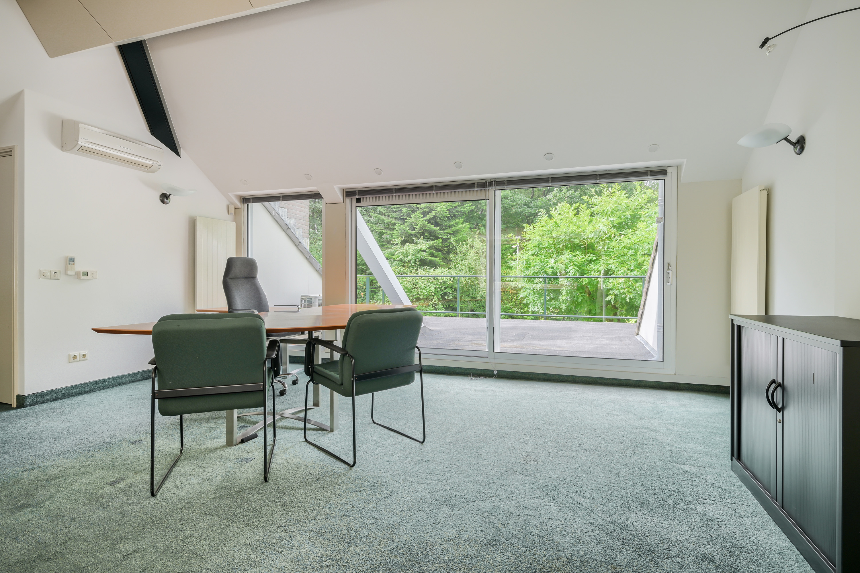 Prachtige woon- annex werkkamer met uitzicht op de tuin en terrassen. Deze lichte ruimte, voorzien van royale raampartijen, is gelegen aan de voorzijde van de woning. In een vaste kast bevindt zich de verdeelunit ten behoeve van de vloerverwarming.