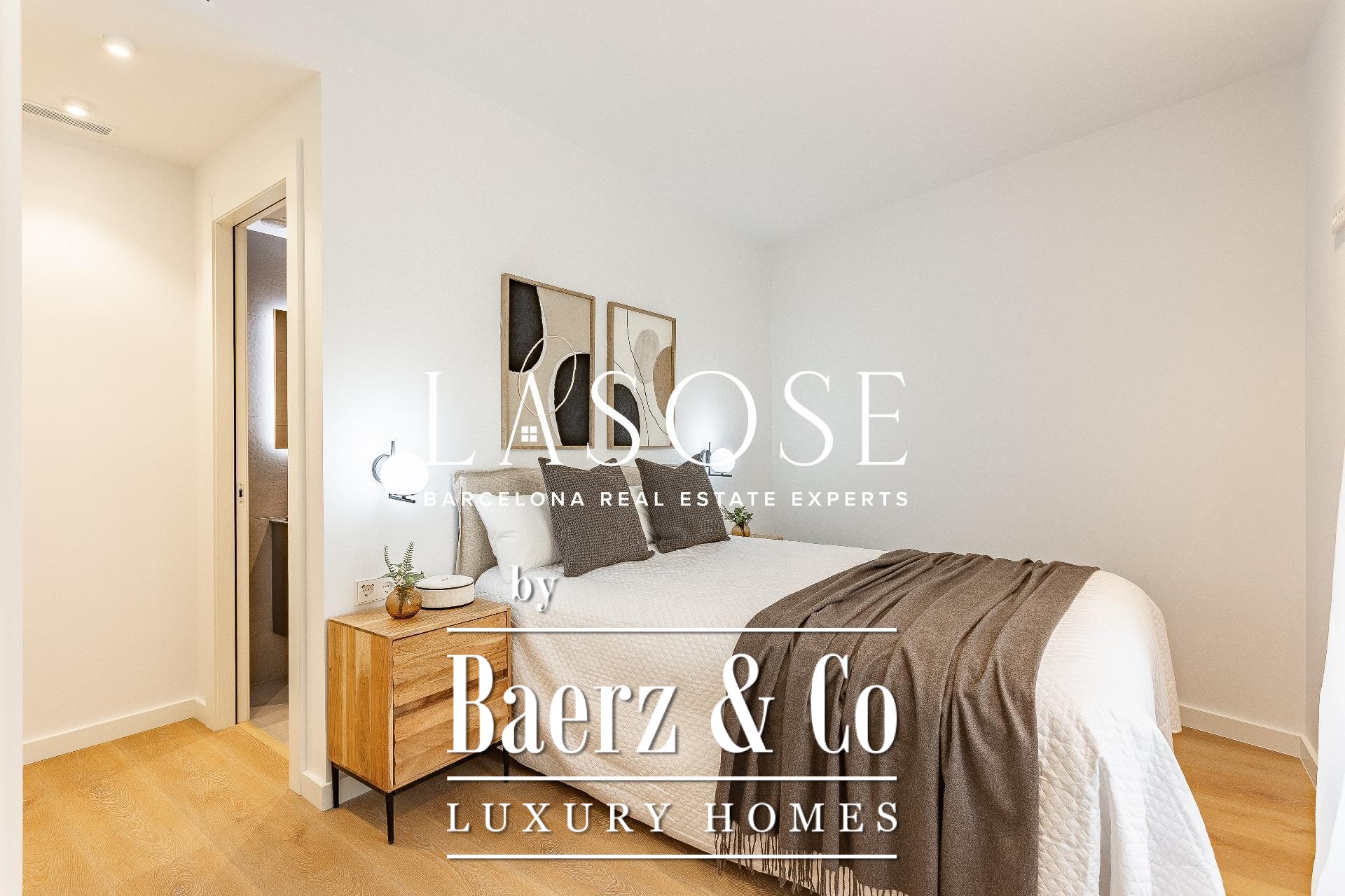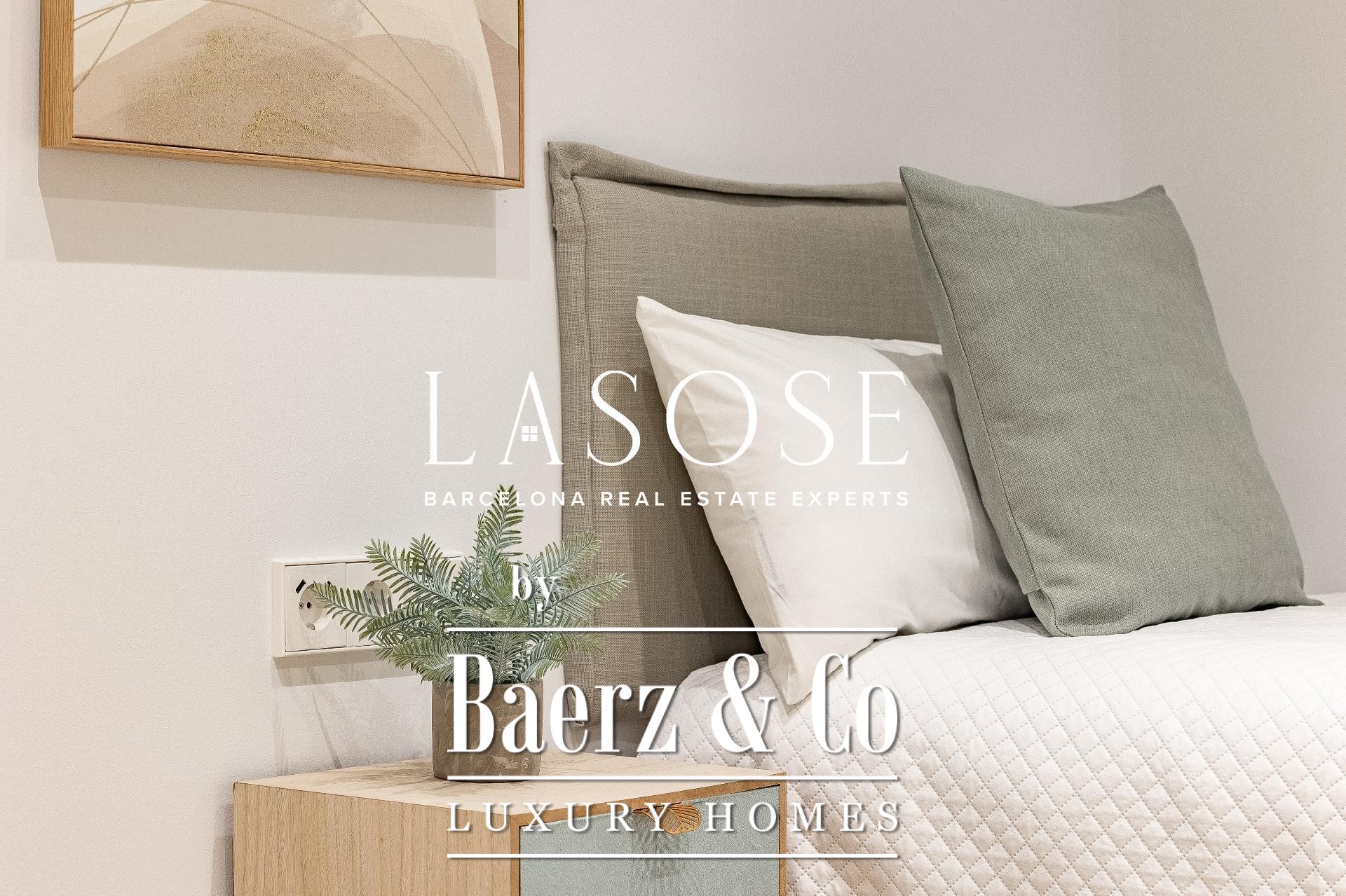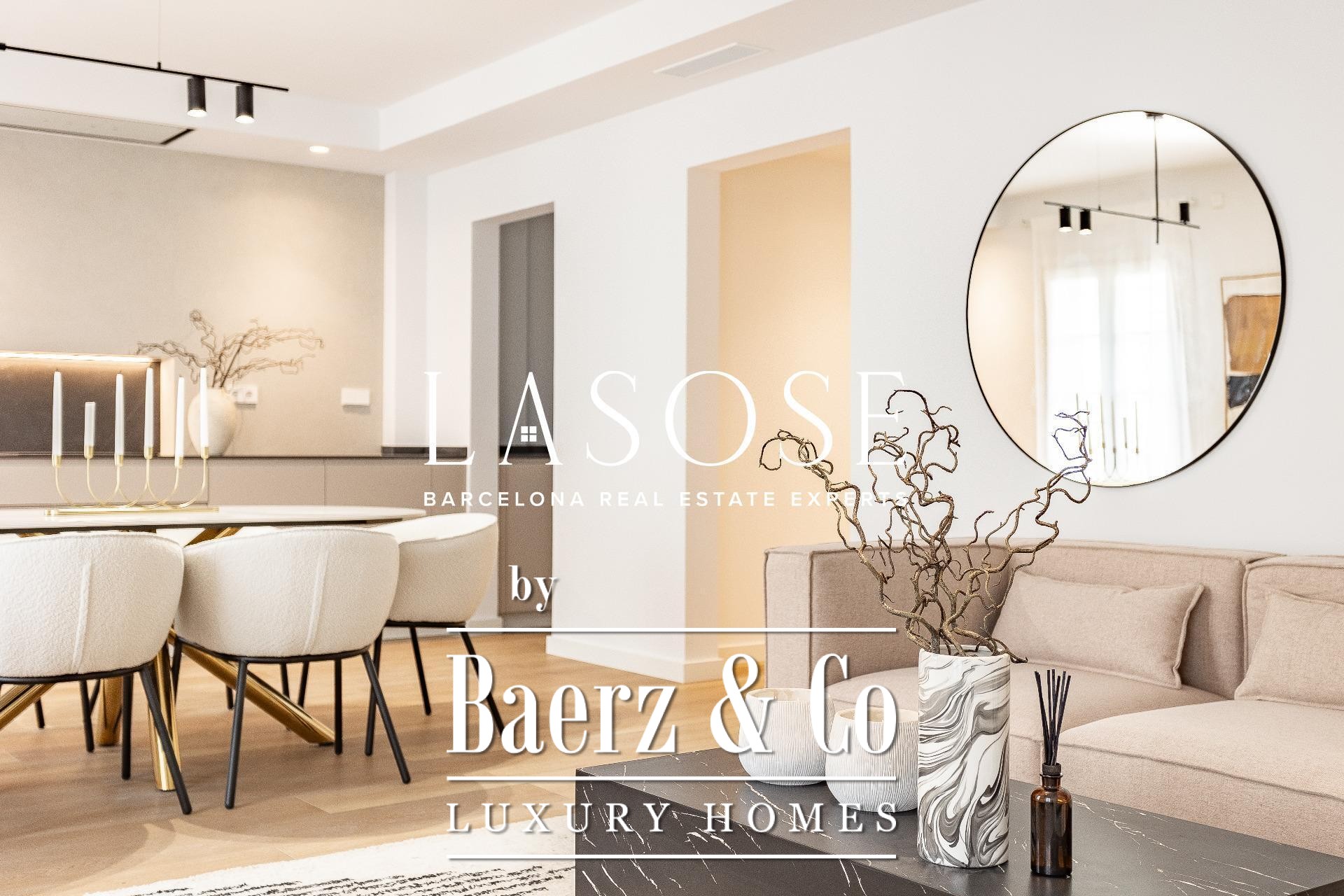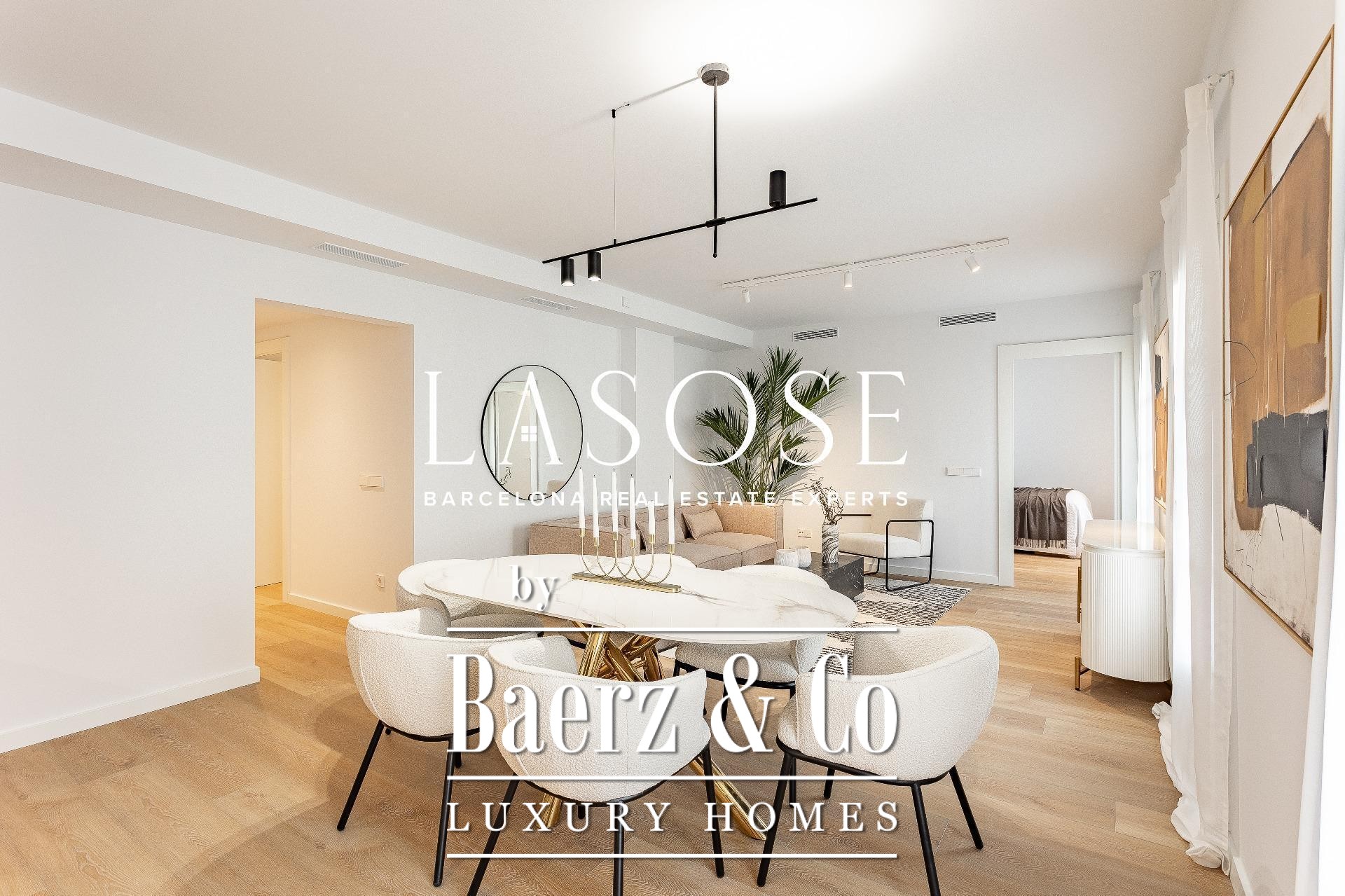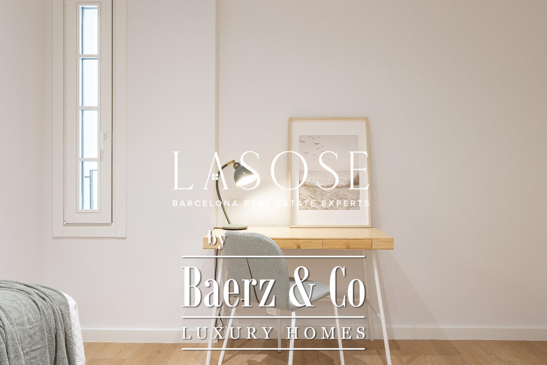 Apartment Barcelona biedt een uitnodiging tot stedelijke verfijning in het hart van de stad, gelegen aan de Tallersstraat, op slechts enkele momenten van Plaza Catalunya. Deze volledig gerenoveerde woning beslaat 108 m² zorgvuldig ingedeelde leefruimte, waar drie ruime slaapkamers en twee badkamers naadloos samenkomen met open, lichte interieurs. Het ontwerp kenmerkt zich door ingetogen, hedendaagse lijnen en een functionele indeling, waarbij originele architectonische details behouden zijn gebleven die het erfgoed van het gebouw benadrukken.