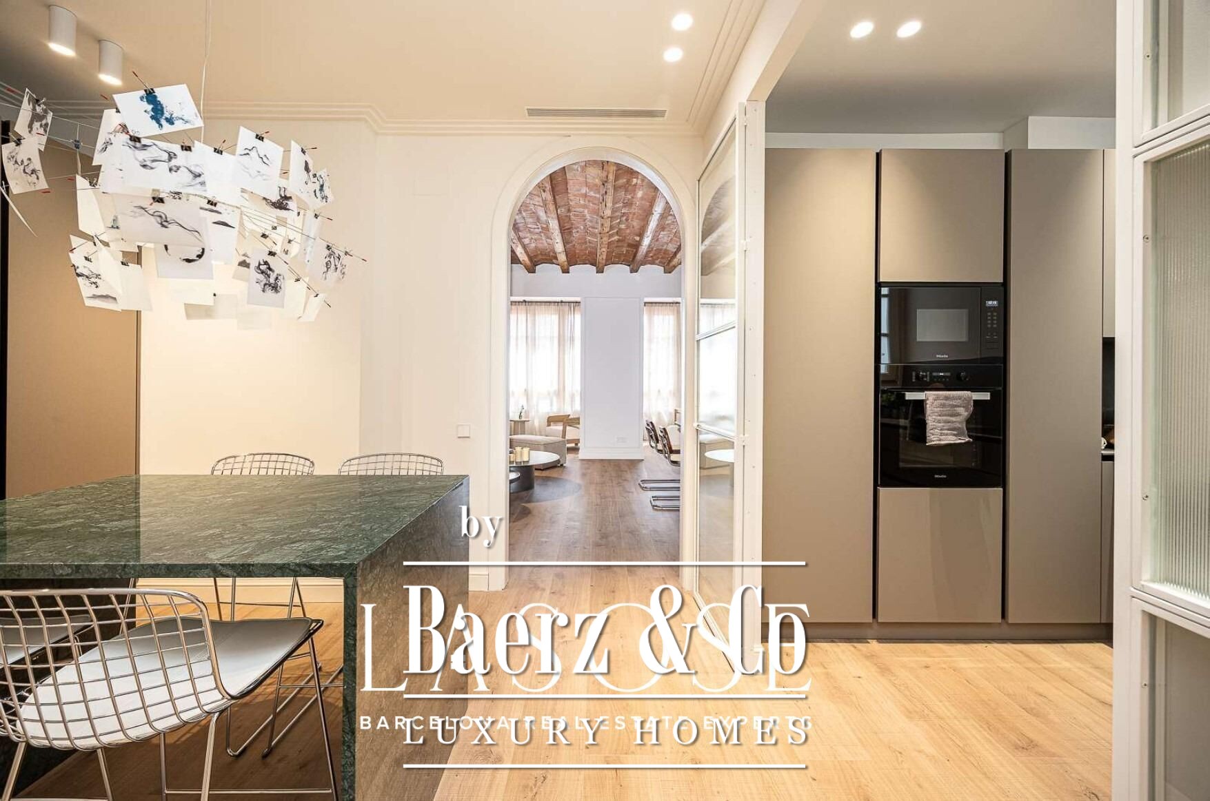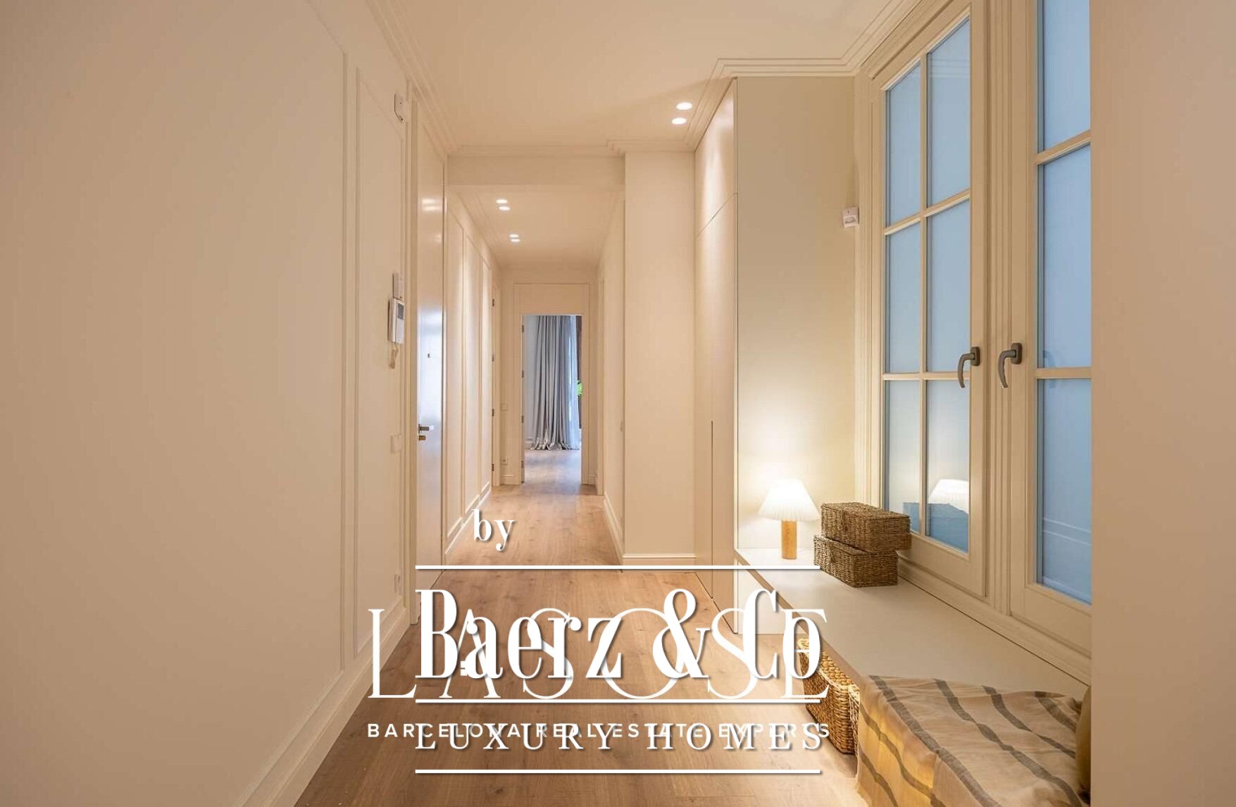 Gelegen op de derde verdieping en bereikbaar per lift, baadt dit modernistische appartement in Barcelona Quadrat d'Or in natuurlijk licht in alle ruime vertrekken. De op het zuidwesten georiënteerde galerij en de originele Catalaanse gewelfde plafonds zorgen voor een sfeer van privacy en verfijning. Elk detail van de recente hoogwaardige renovatie eert de historische architectuur, terwijl hoogwaardige hedendaagse comfortelementen zijn geïntegreerd. Parador AC 5 parket in eikentint, maatwerk kasten van ARMONY, MIELE-apparatuur, intelligente klimaatregulatie en een master suite met inloopgarderobe tillen het woongenot naar een hoger niveau.