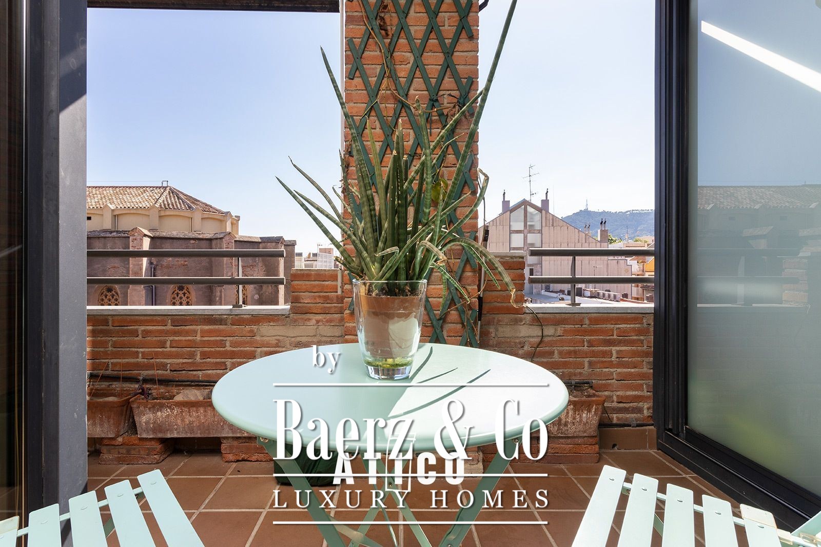 En e barrio de Sarria disponemos de este bonito ático dúplex todo exterior de 227 m. Distribuido en dos plantas. P 1ª - Encontramos amplio salón comedor con cocina que puede ser abierta o cerrada con puerta corredera. Con la sensación de paz que te da su vistas al barrio y su orientación. Dos habitaciones dobles que comparten un baño. Por una amplia escalera se accede a un segundo salón con chimenea, la suitte y una habitación estudio. Tanto la suitte como el salón tienen acceso a una amplia terraza de 34 m. orientada a Tarragona.