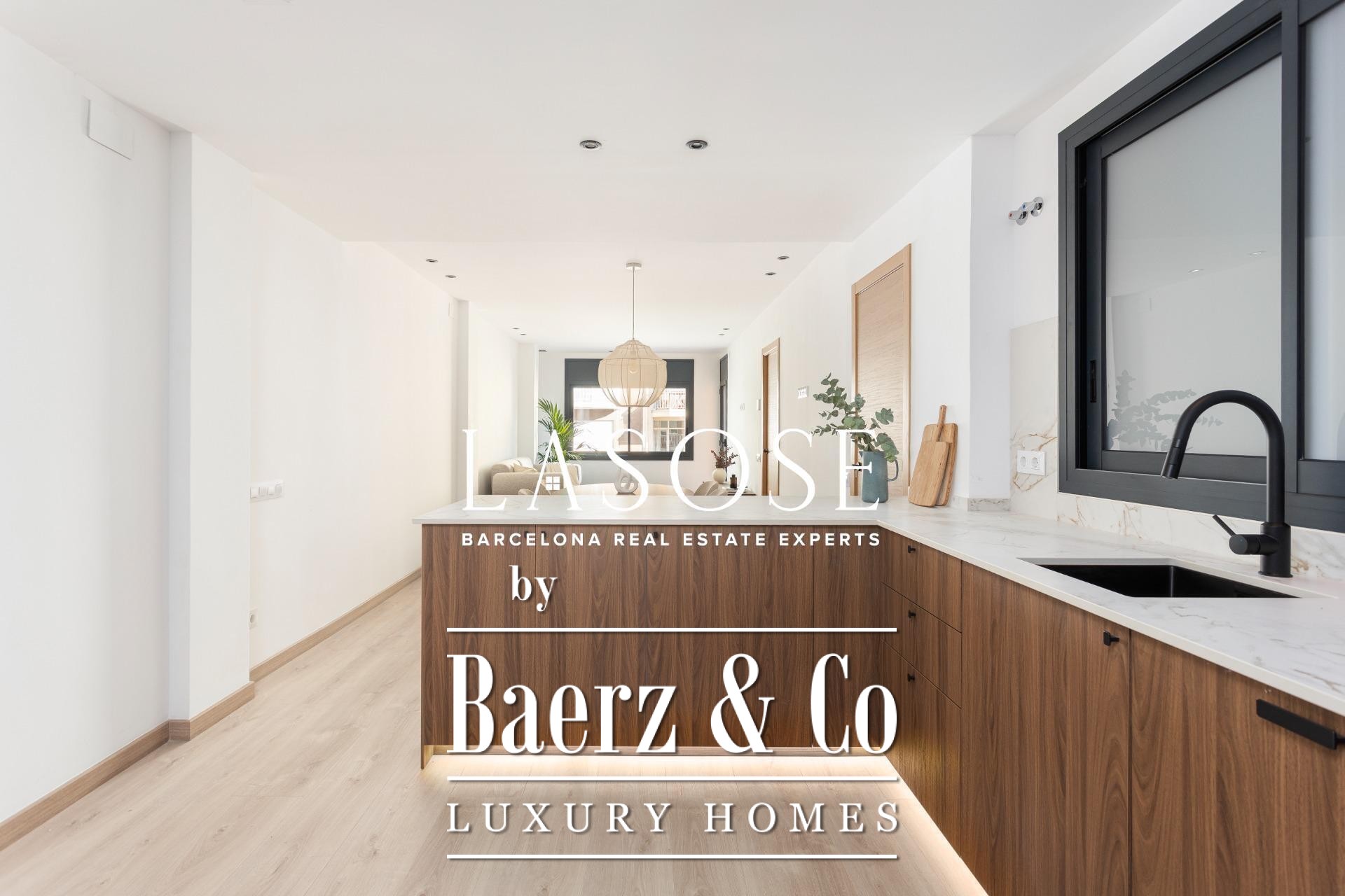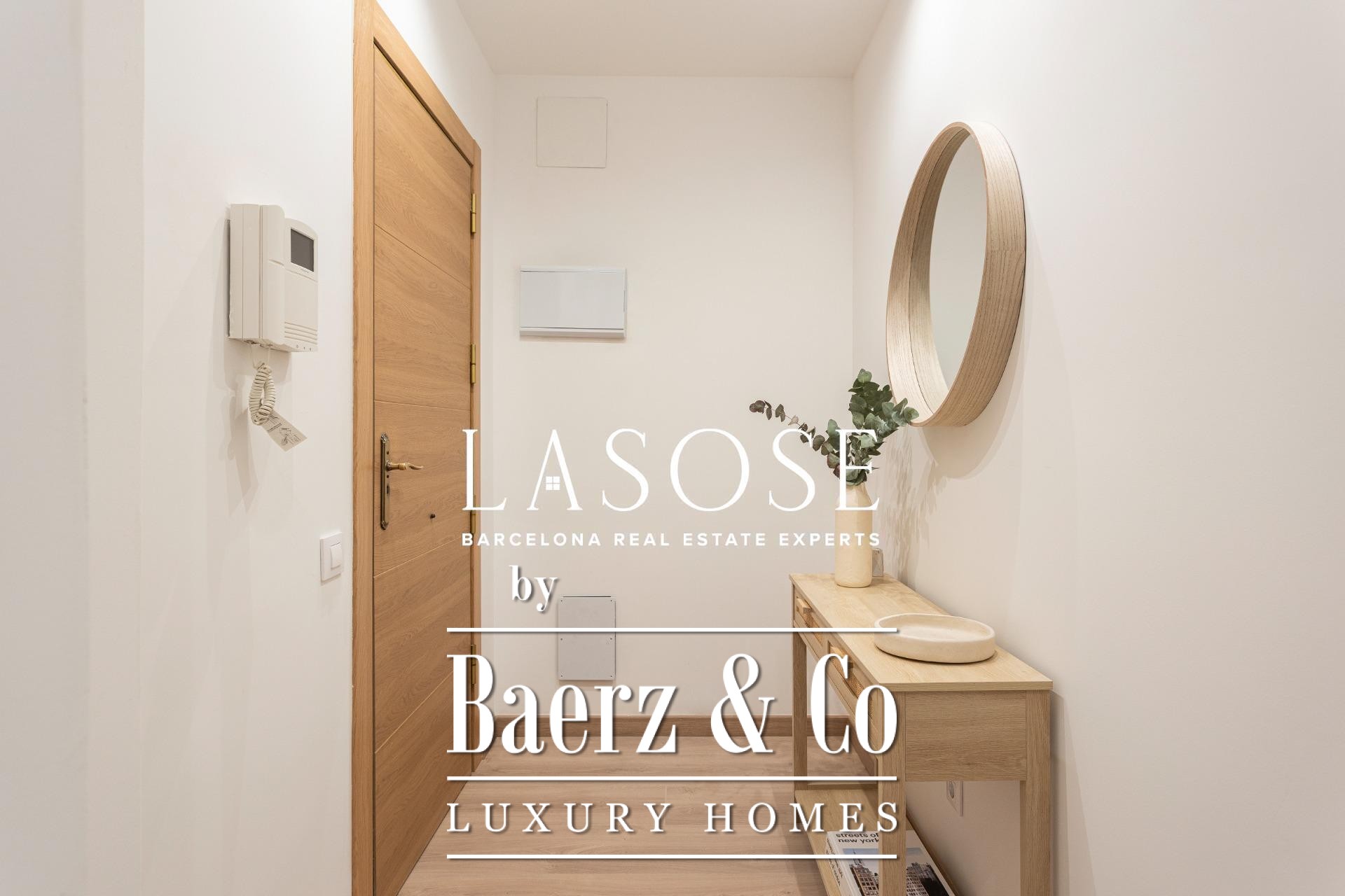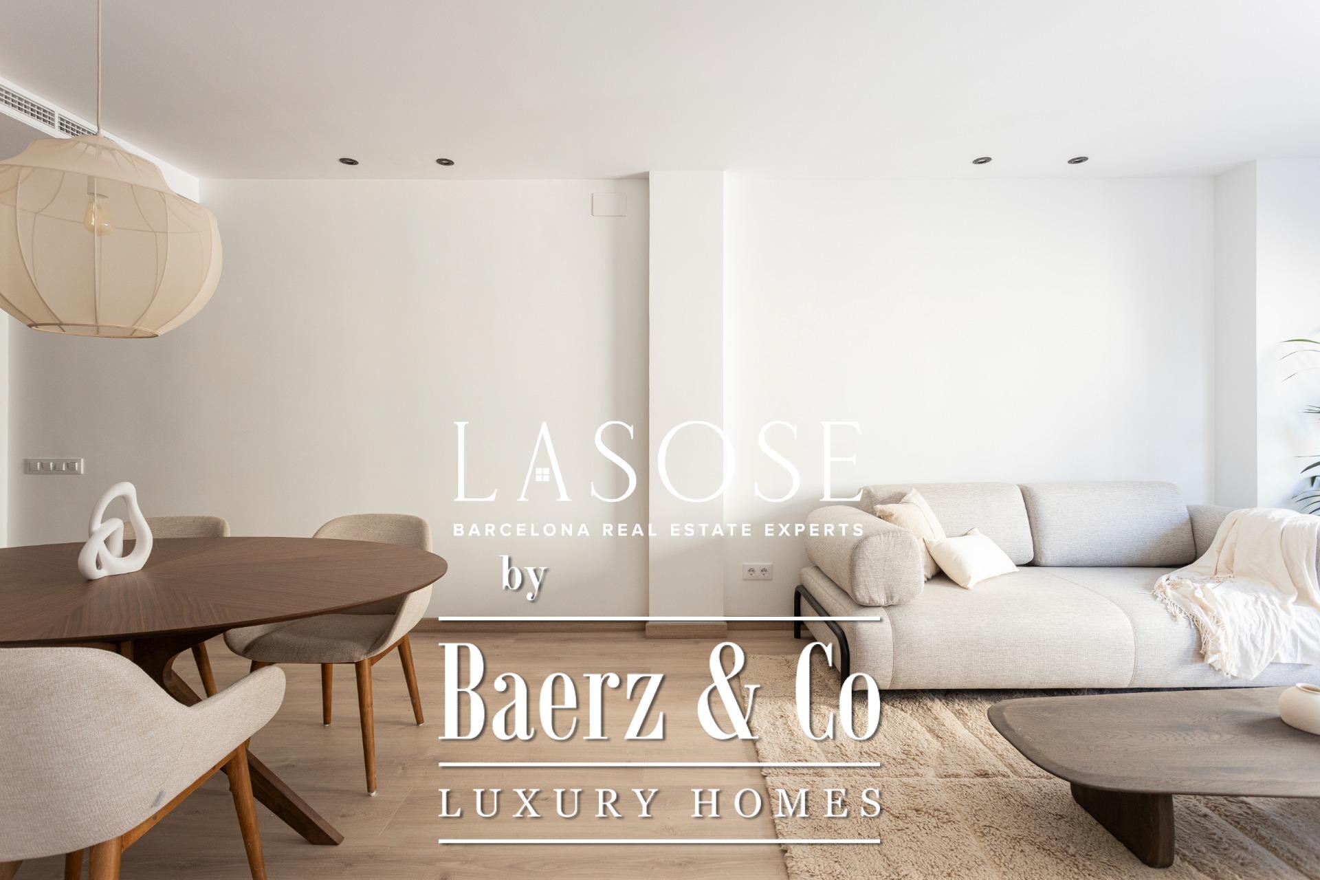 Er zijn drie slaapkamers: een mastersuite met toegang tot het terras, ingebouwde kasten en een eigen badkamer, aangevuld met een dubbele en een eenpersoonskamer. Beide badkamers zijn voorzien van geïntegreerde kranen, LED-verlichting en porseleinen details. Voorzieningen zijn onder andere een ingebouwd Mitsubishi airconditioningsysteem, geavanceerde isolatie, een aparte wasruimte en een parkeerplaats in het gebouw geschikt voor een kleine auto of motor, wat onopvallend comfort biedt in het hart van Barcelona. Dit luxe appartement te koop in Barcelona belichaamt de balans tussen modern design en stedelijk wooncomfort.