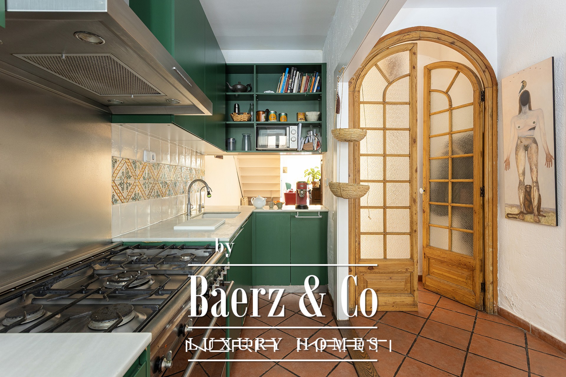 Binnen zorgen originele details en authentieke materialen voor een sfeervolle en comfortabele ambiance. De open keuken met marmeren afwerking sluit naadloos aan op de eetruimte, die uitnodigt tot ingetogen samenzijn. De woonkamer, voorzien van een elegante open haard en omringd door natuurlijk licht, opent naar een besloten privétuin en creëert een zeldzame connectie met de natuur binnen de stad.