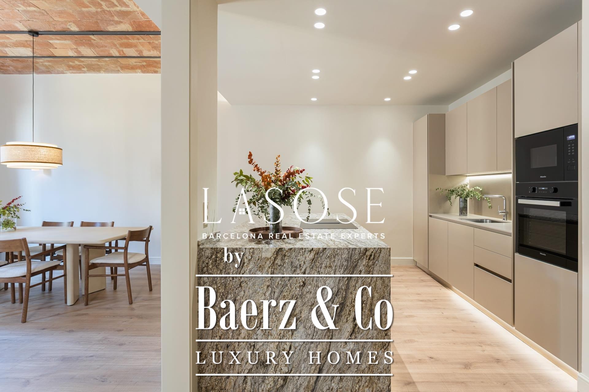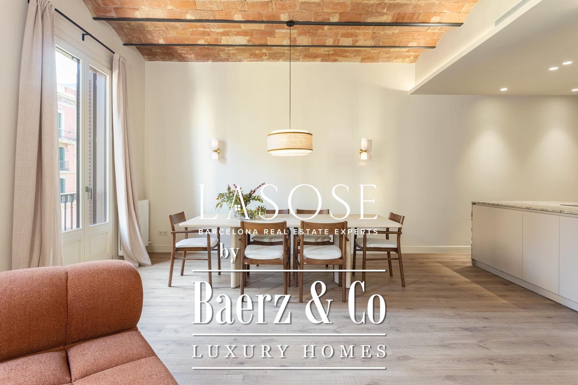 Een zorgvuldig uitgevoerde renovatie behoudt de imposante Catalaanse gewelfde plafonds en het authentieke metselwerk, wat zorgt voor warmte, historie en een zeldzame authenticiteit op de markt. De woon- en eetkamer lopen naadloos over in de exclusieve designkeuken, die is gecentreerd rond een royaal kookeiland; ideaal voor sociale bijeenkomsten en dagelijkse rituelen. Twee klassieke balkons laten het ochtendllicht vanuit het oosten binnenstromen en bieden uitzicht op de statige Roger de Llúria.