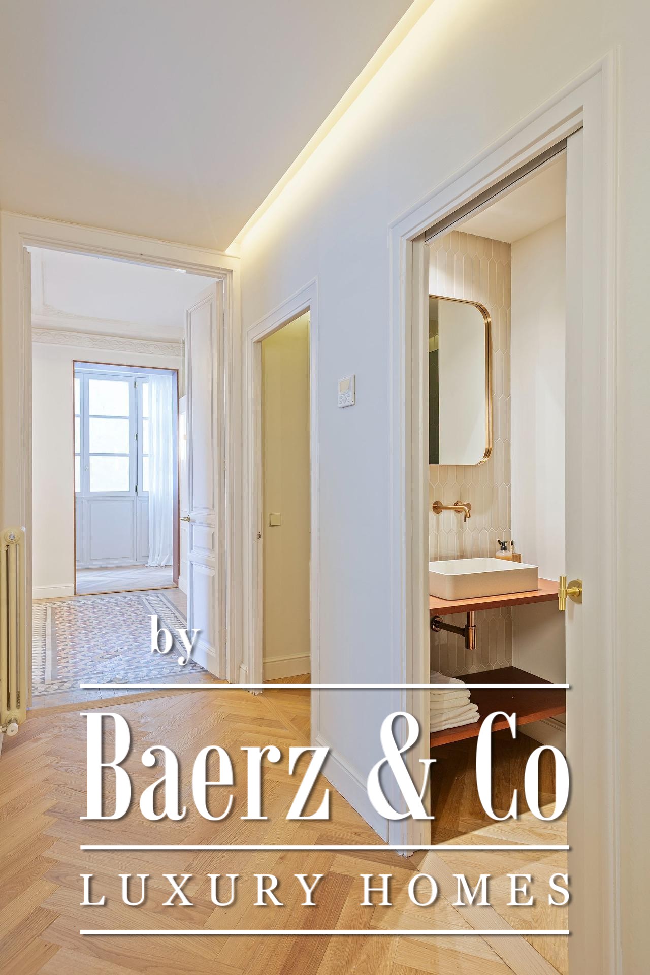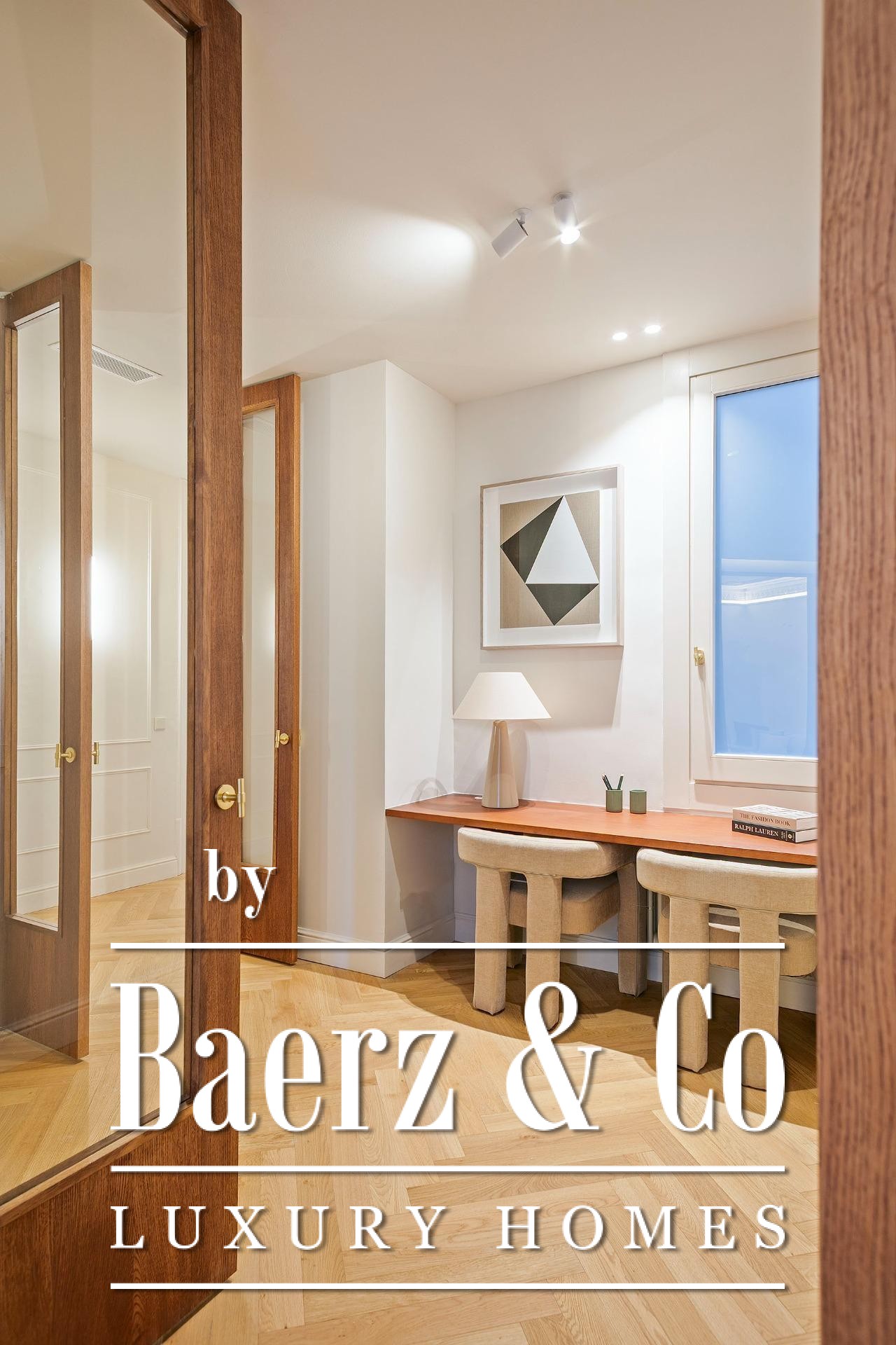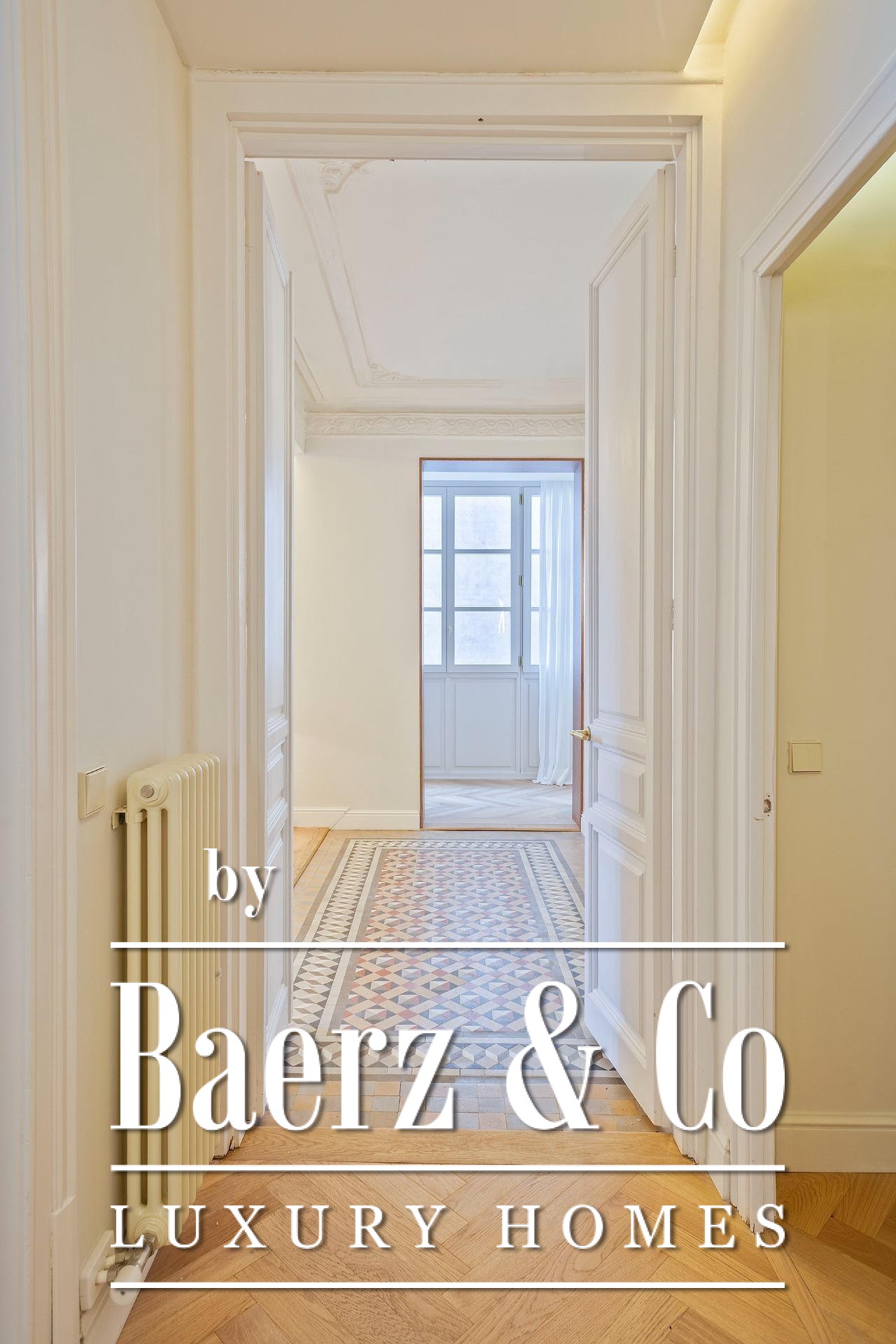 Een veelzijdige, zelfstandige werkkamer biedt mogelijkheden voor werken of terugtrekken, aangevuld met twee extra badkamers en een gastentoilet. De gerestaureerde originele hydraulische tegelvloeren en plafonds worden gecombineerd met visgraatparket in natuur-eiken en maatwerk wandpanelen, waardoor authenticiteit en elegante moderniteit samenkomen. Balkon, lift, ingebouwde kasten, geïntegreerde wasruimte en hoogwaardige verwarming maken dit tot een eigendom met blijvende allure.
