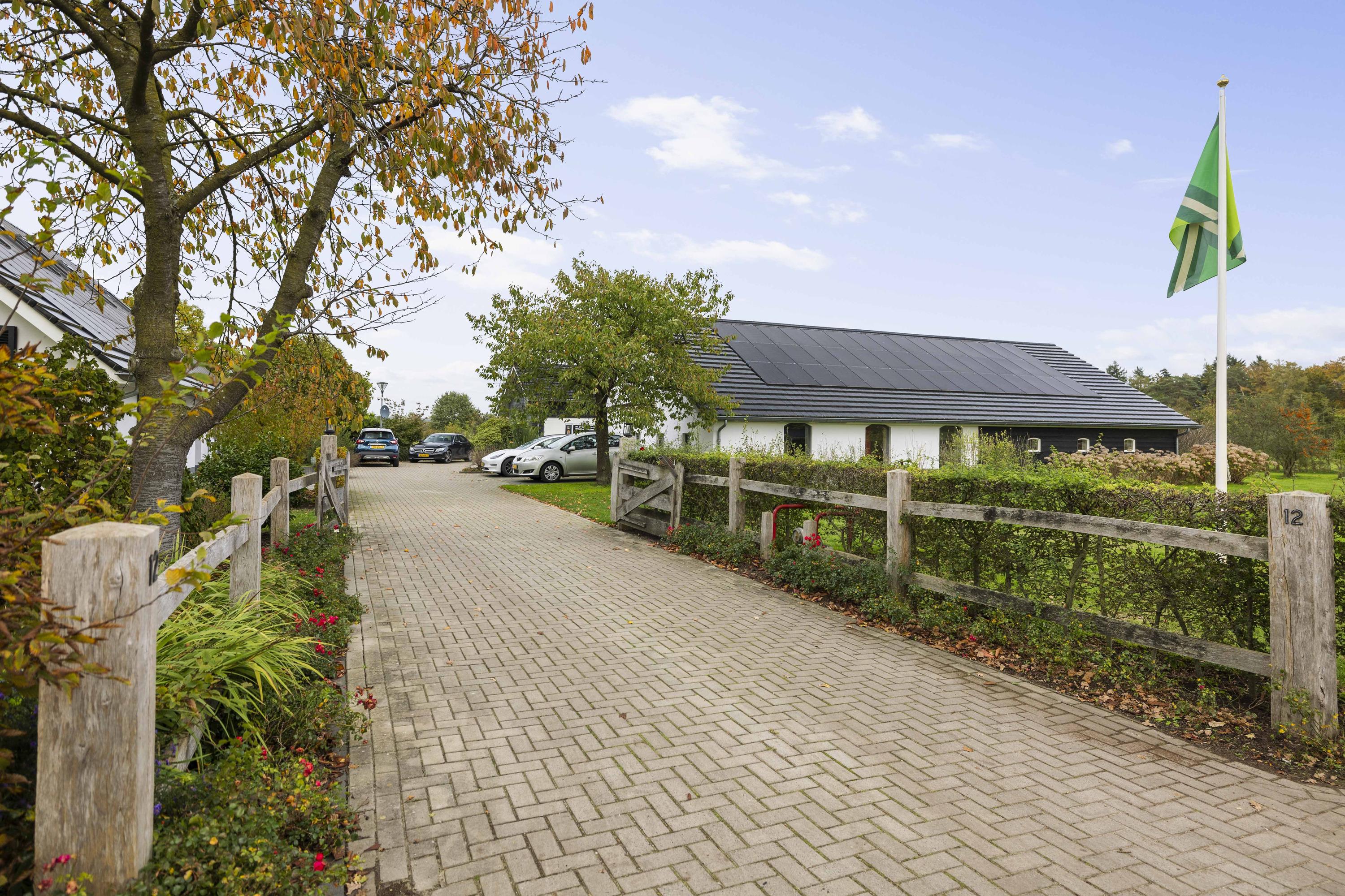 Bijgebouw: Multifunctioneel bijgebouw bestaande uit een kantoor/ontvangstruimte, werkruimte alsmede een stallingsruimte en sport-/ opslagruimte en 12 meter brede wagenloods/carport.