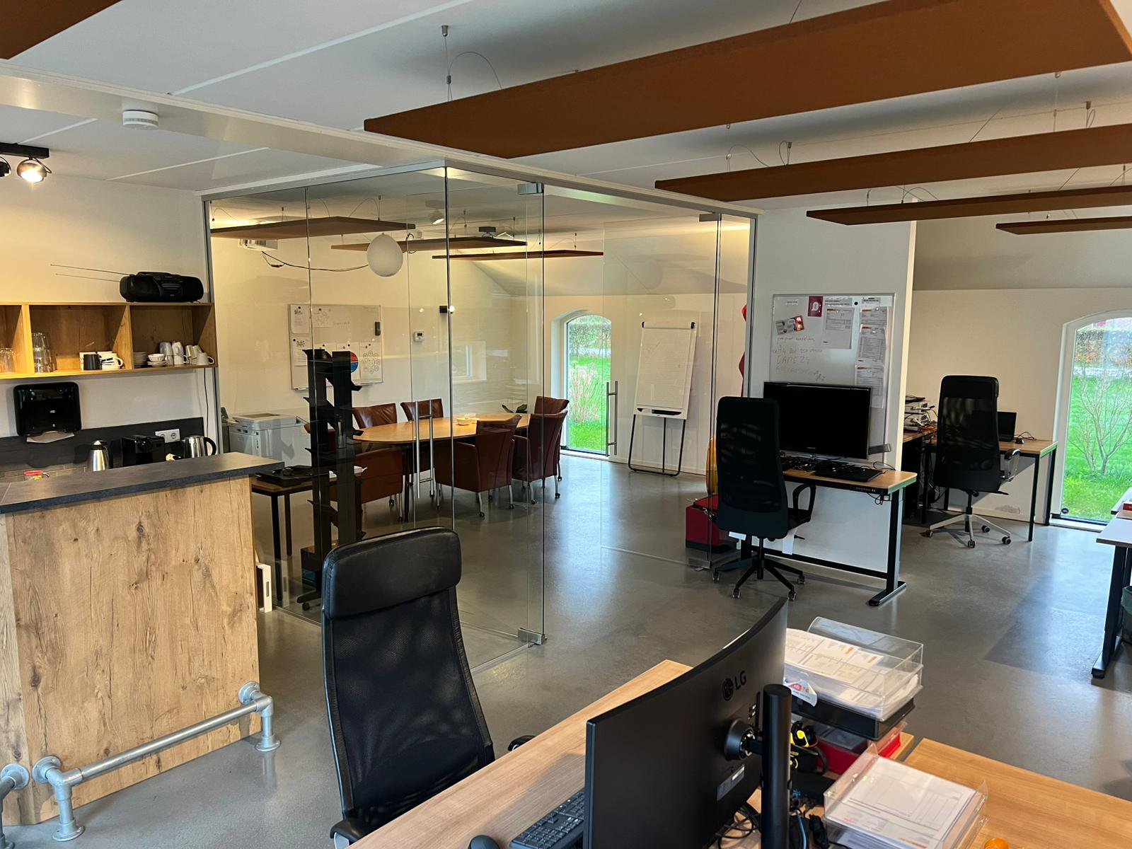 Misschien heeft u wel een eigen bedrijf, misschien met personeel, en is het uw wens om vanuit huis te werken. Dat kan! Er is een meer dan riant bijgebouw in een U-vorm gerealiseerd bestaande uit een kantoor- met presentatieruimte (ca. 84 m²), WC, pantry met close-in boiler, een werkplaats (90 m²) waar u zo aan de slag kunt. Het geheel is net als het hoofdhuis voorzien van glasvezel met Cat6-ethernet leidingen.