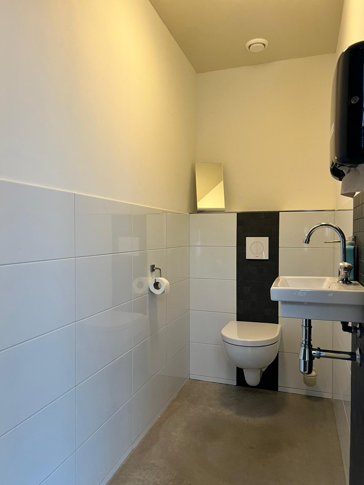 De WC is voorzien van een urinoir en douchetoilet (Mera Geberit).
