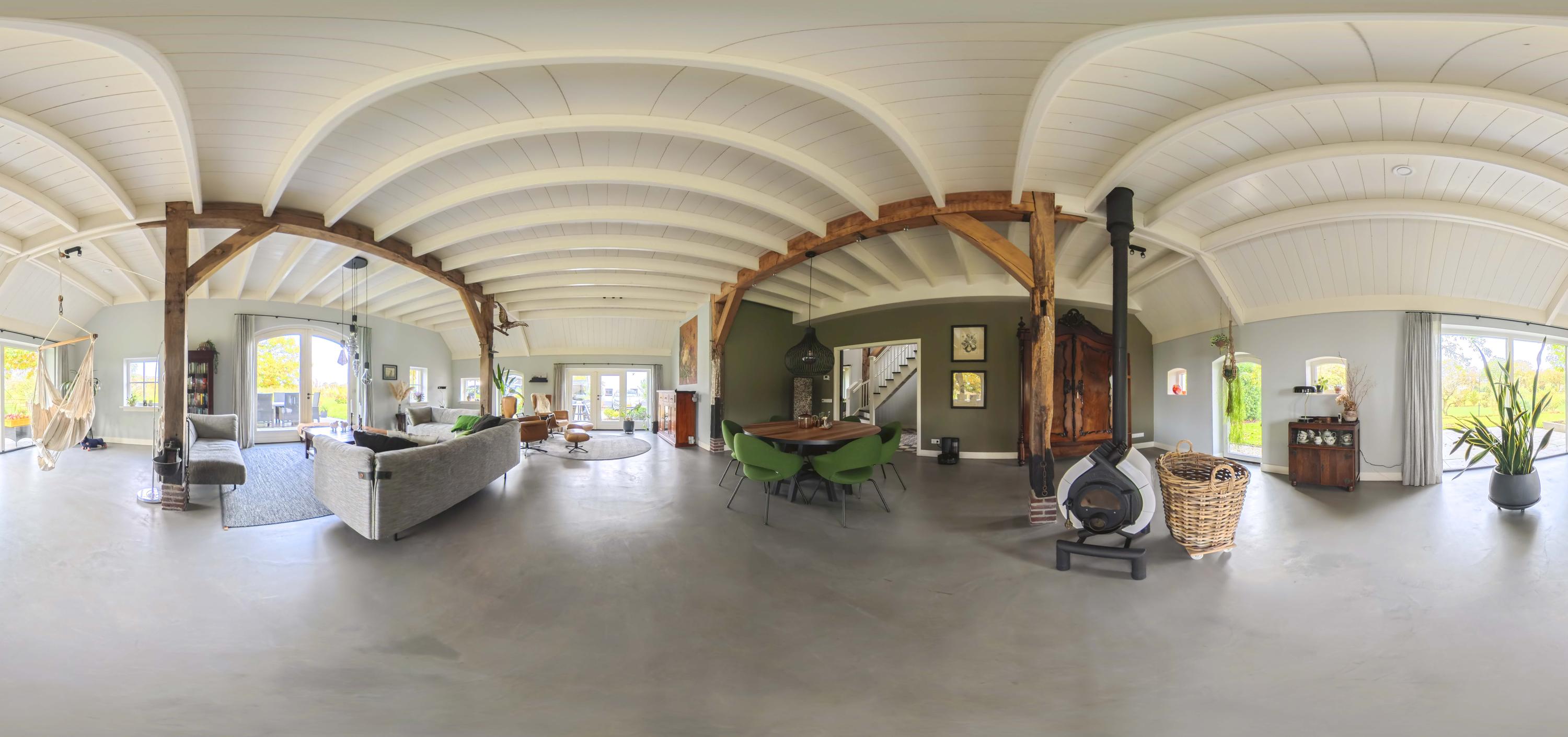 Deze magnifieke woonboerderij kreeg in 2016 haar huidige gestalte; toen werd de boerderij, die in 1924 gebouwd werd, van onder tot boven gerenoveerd. Hierbij lag de nadruk op verduurzaming; de buitenzijde werd volledig geïsoleerd met blokken styrofoam, rondom kreeg het huis nieuw HR+++-glas, er werd een water-water-warmtepomp aangelegd (die op 75 m diepte de warmte uitwisselt en ophaalt), de vloer binnen werd voorzien van een robuuste gietvloer – ideaal in combinatie met de vloerverwarming - en op de daken werden in totaal 110 (nee, dit is géén typfout) zonnepanelen gelegd. Onder de motorkap is dit huis één en al state-of-the-art technisch vernuft. Zelfs het kleurenpalet – de buitenzijde is wit gekeimd met grijs houtwerk en kraalrand – draagt bij aan het energiezuinige karakter van het huis, want waar de witte gevels het zonlicht reflecteren, absorbeert het grijs de warmte. Dit huis heeft niet alleen nul op de meter, het levert ook nog eens fiks terug! Een thuisbatterij is hier dus een prima aanvulling.