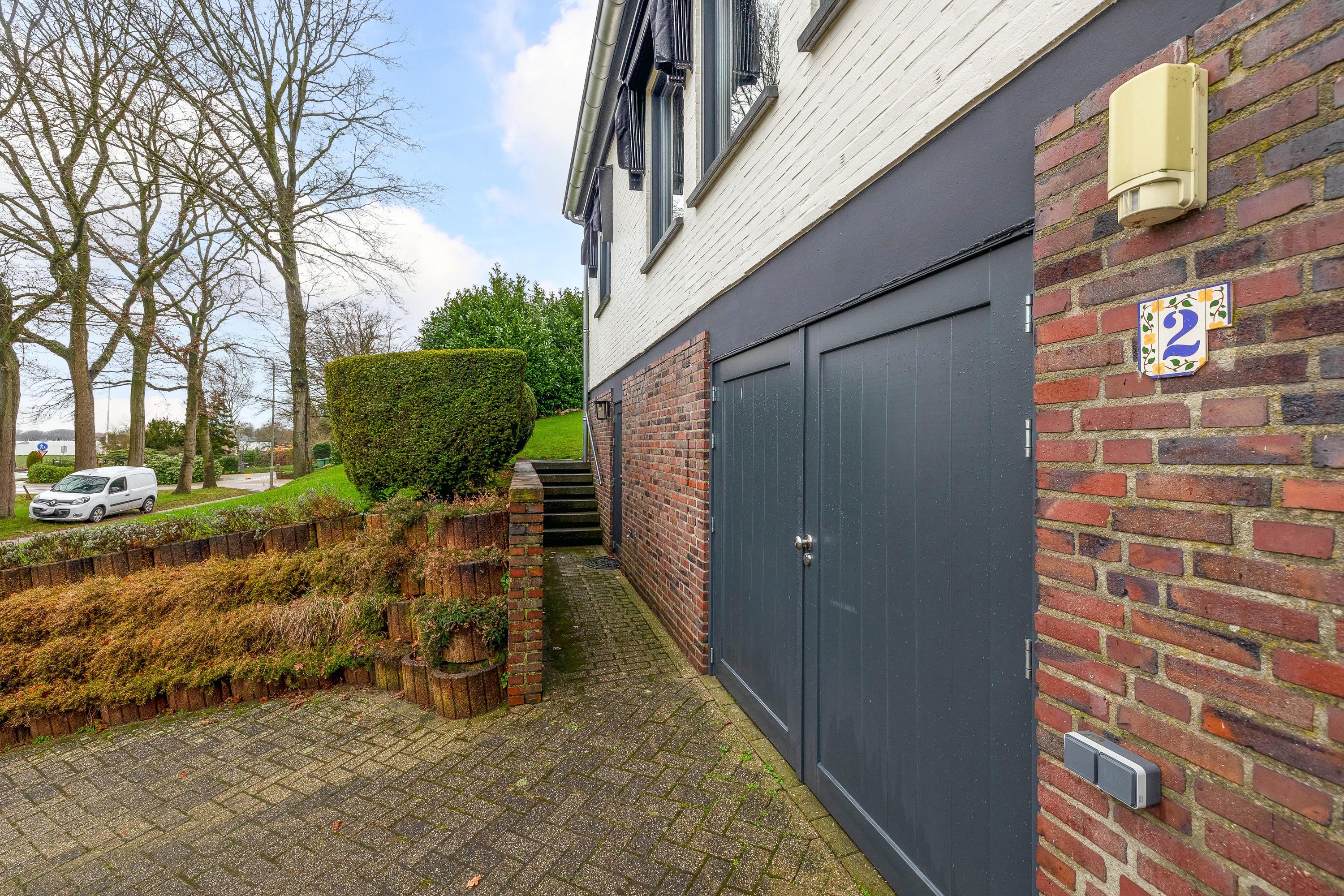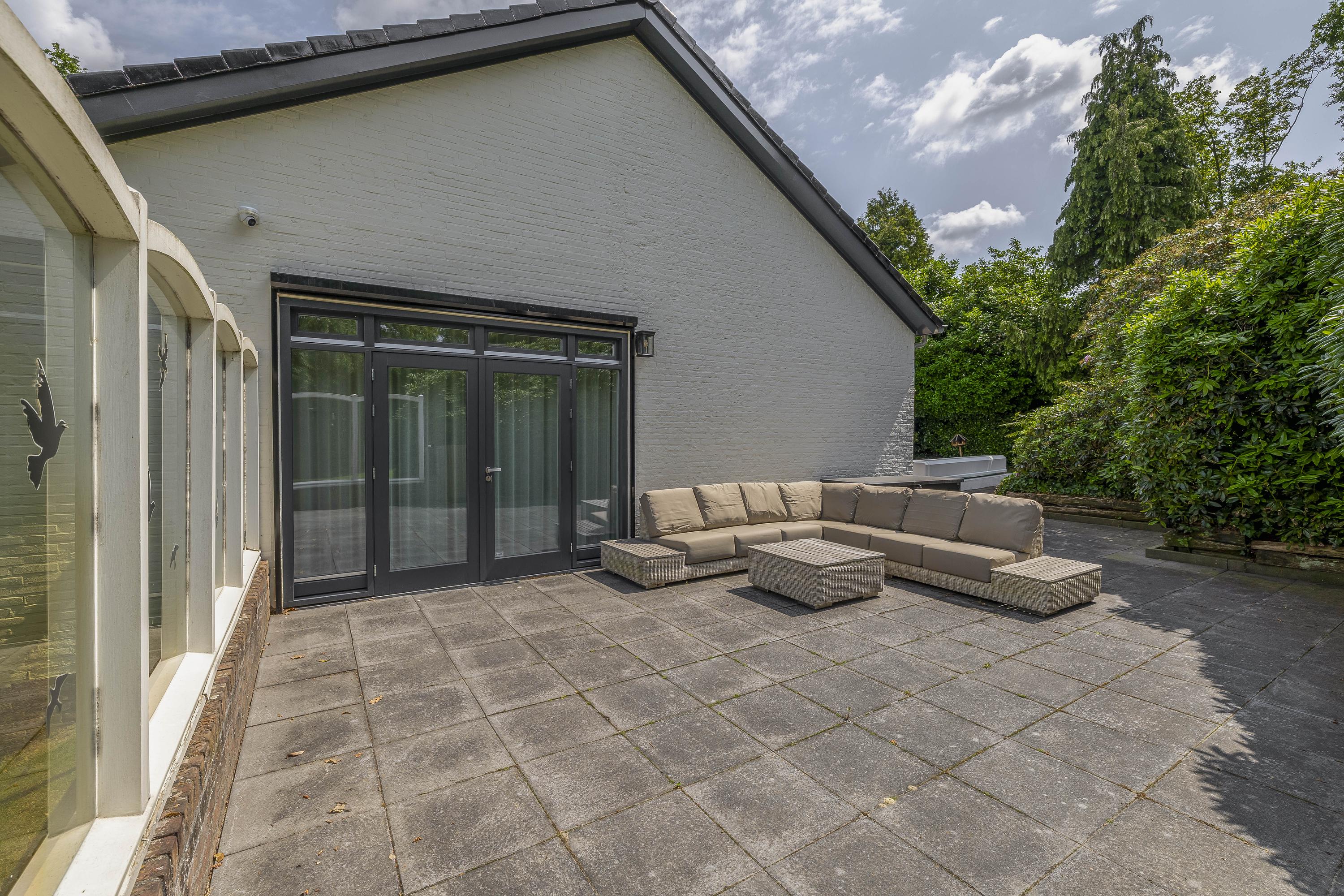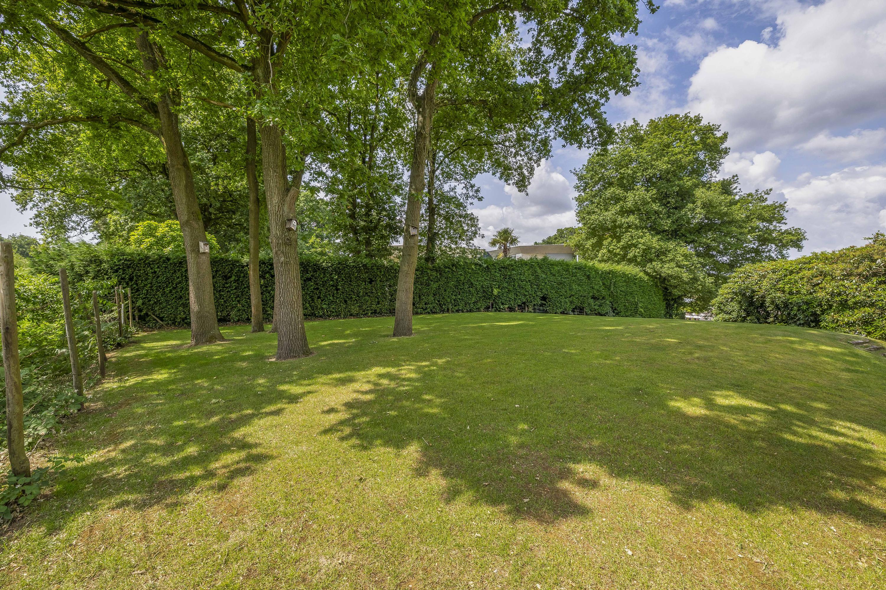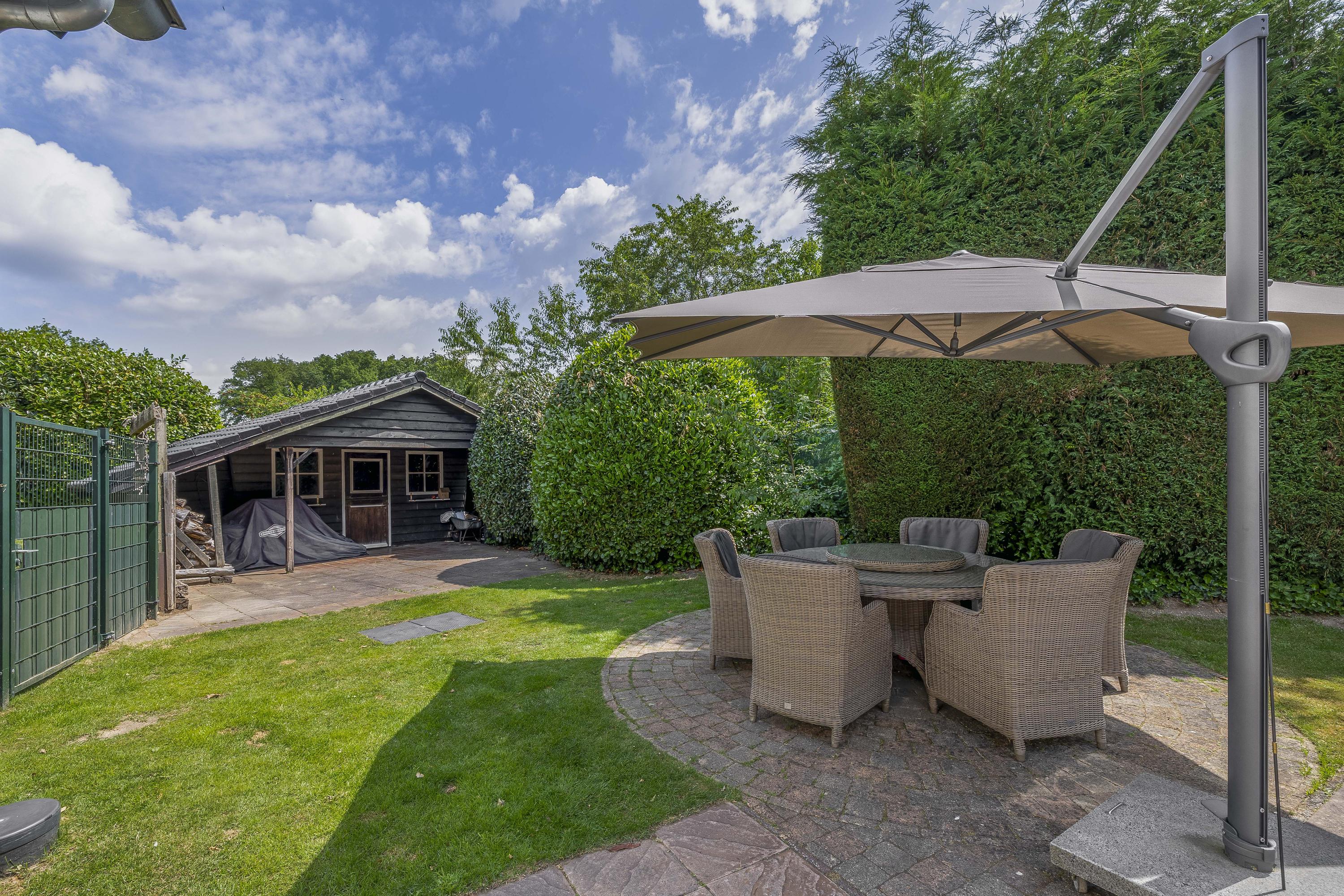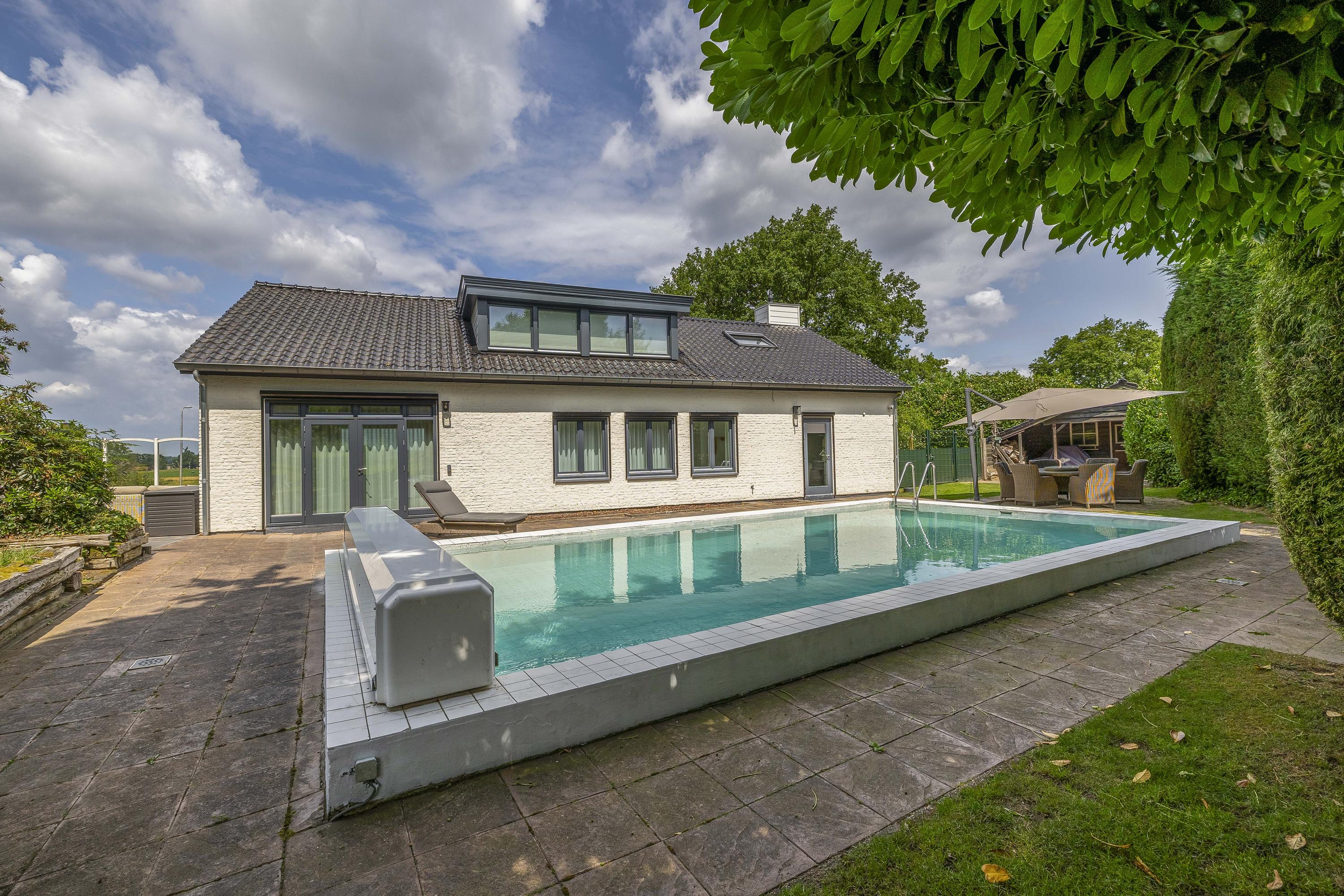 De tuin loopt volledig rondom de woning. Aan de linkerzijde biedt een terras een mooi uitzicht op de Maas. De tuin is zeer groen aangelegd. Het zwembad is circa. 10x5m. Op de eigen oprit is plek voor meerdere auto's.