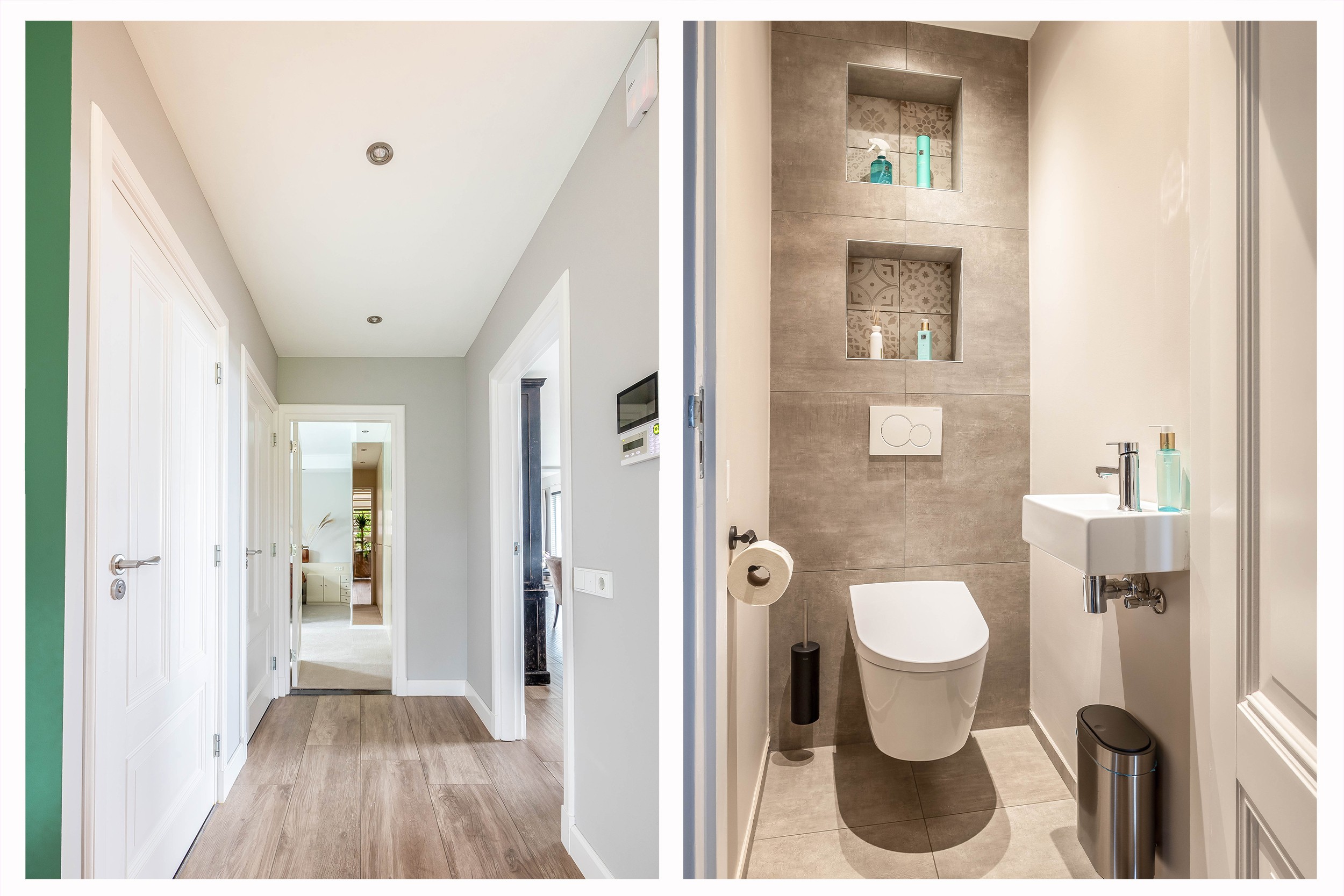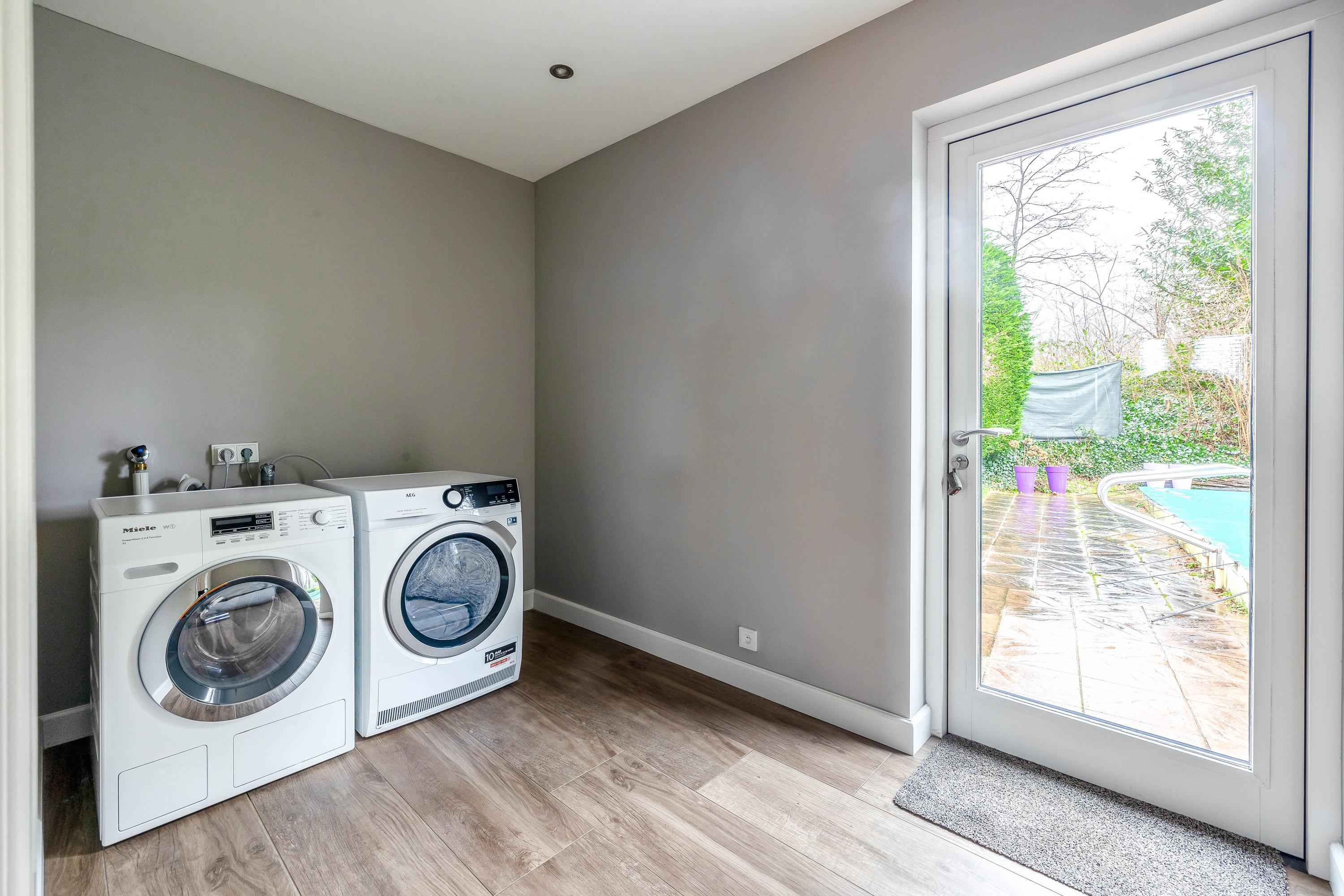 - Vloerverwarming in de woonkamer, keuken, wasruimte, hal en toilet op de begane grond.