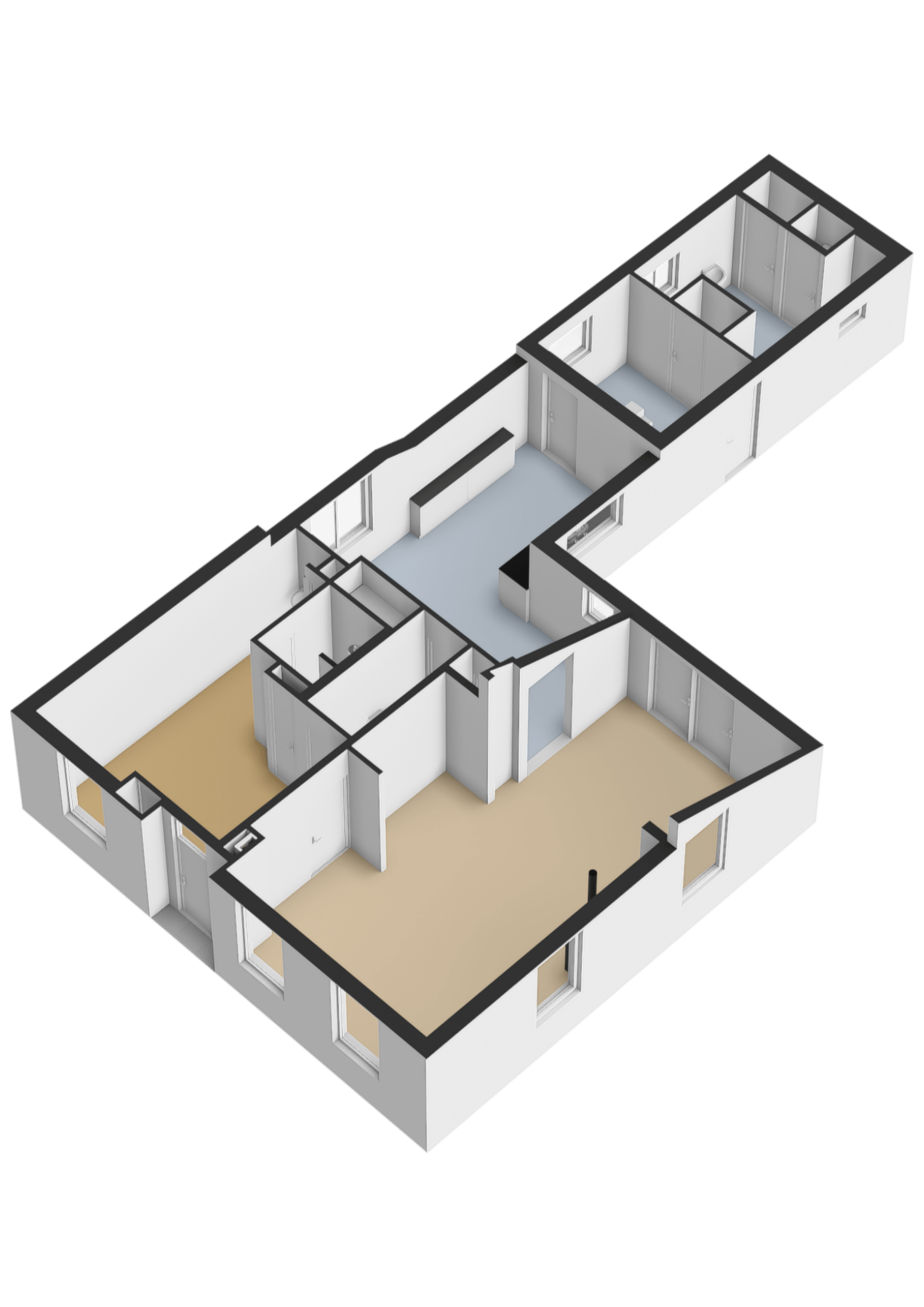Op de begane grond bevindt zich een ruime slaapkamer met veel privacy en eigen badkamer, ideaal voor wie gelijkvloers wil wonen. Daarnaast is er een 2e moderne badkamer met douche, ligbad, wastafel en toilet, wat deze woning geschikt maakt voor diverse woonwensen.