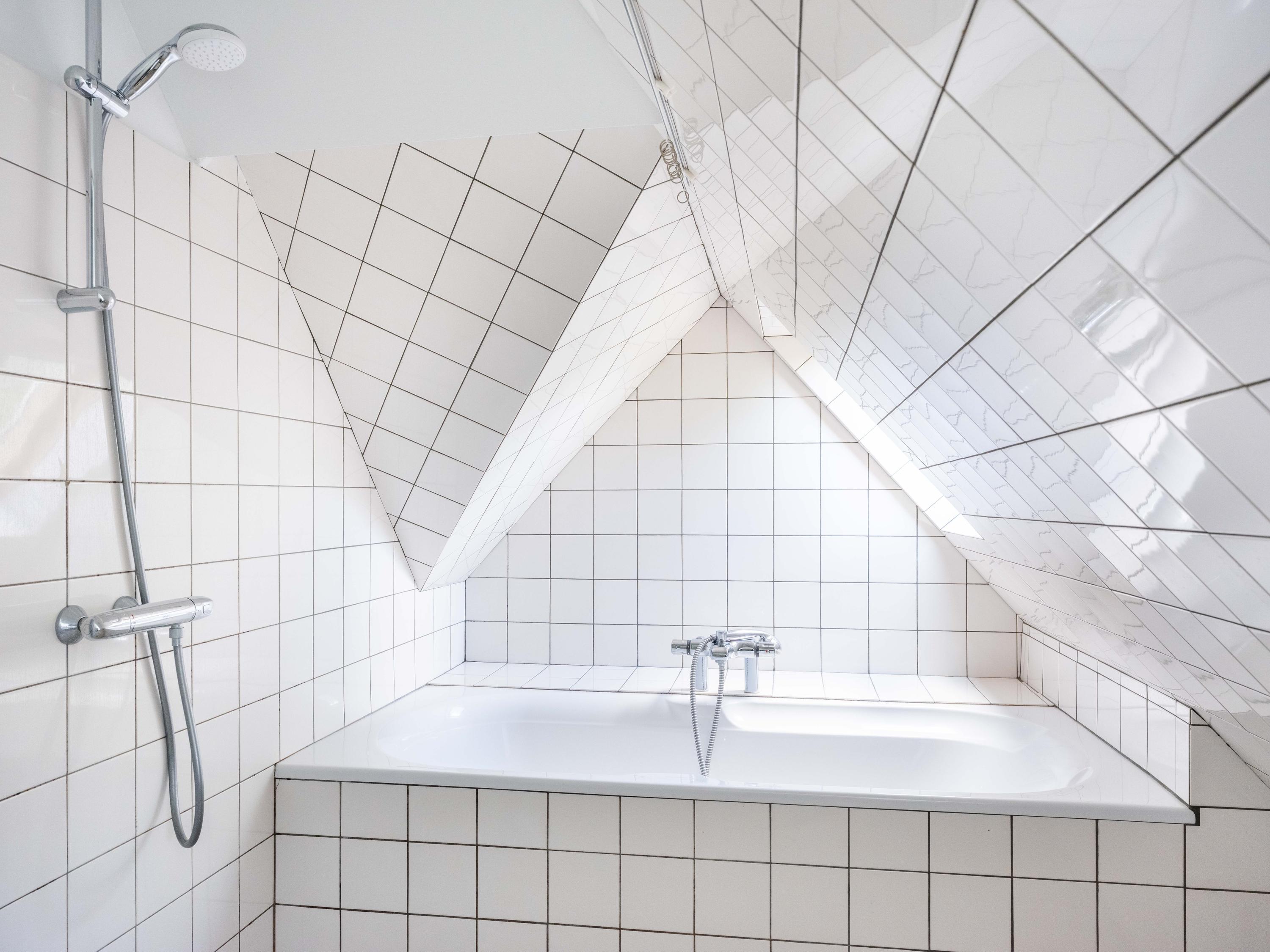 De eerste verdieping beschikt over drie slaapkamers, elk met een wastafel en vaste kast. Dankzij meerdere dakkapellen is er veel licht en ruimte. Er is een aparte cv-kast en een tweede badkamer met ligbad, douche, toilet, dakraam en mechanische ventilatie.